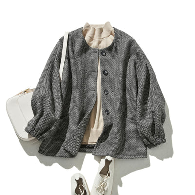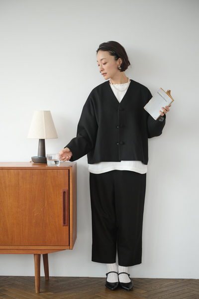 上品な印象のウールジャケット ショートアウター 裏地付き 241103