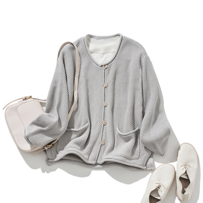 ゆるっとシルエットでラフに着られる鹿の子編みカーデ  250203