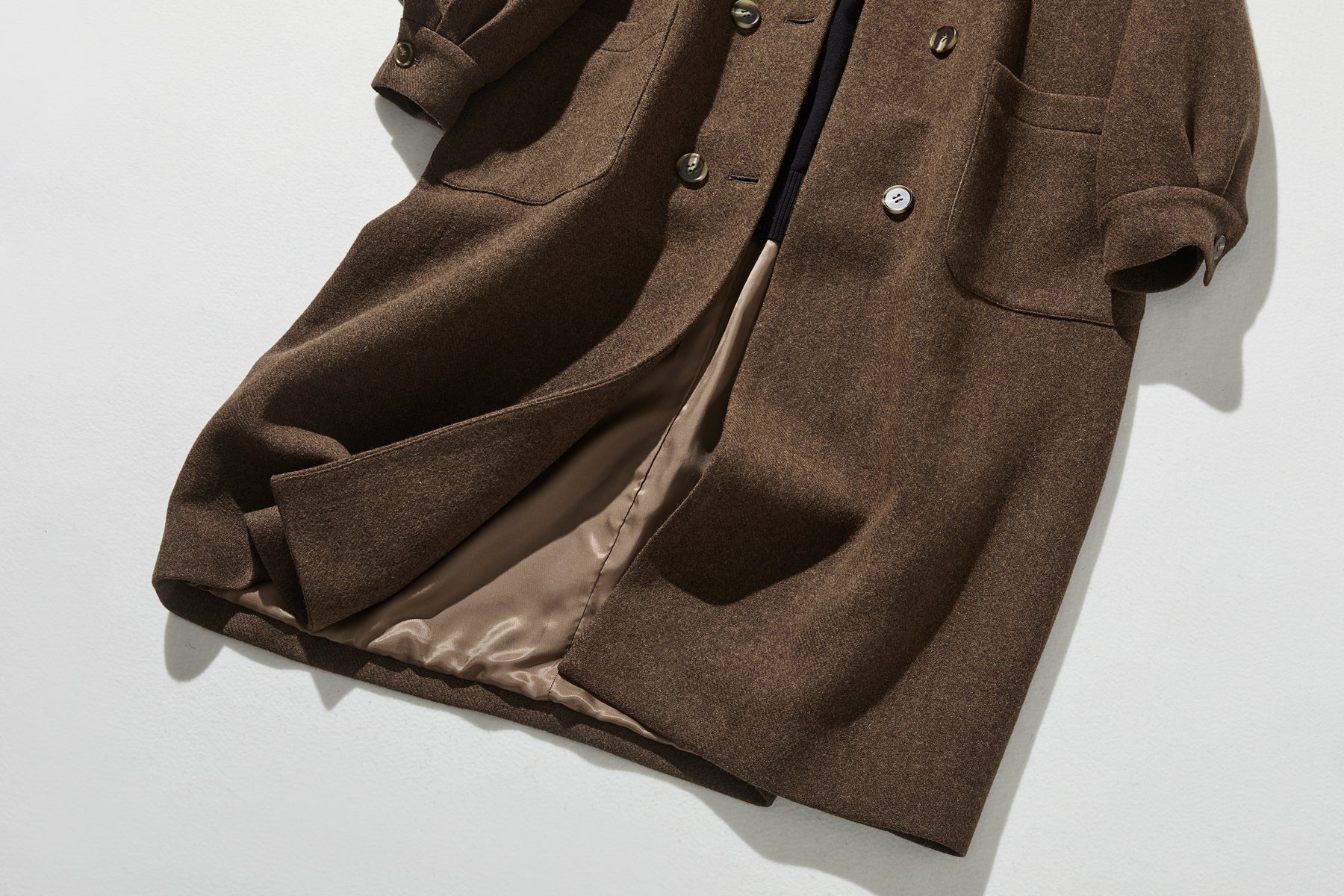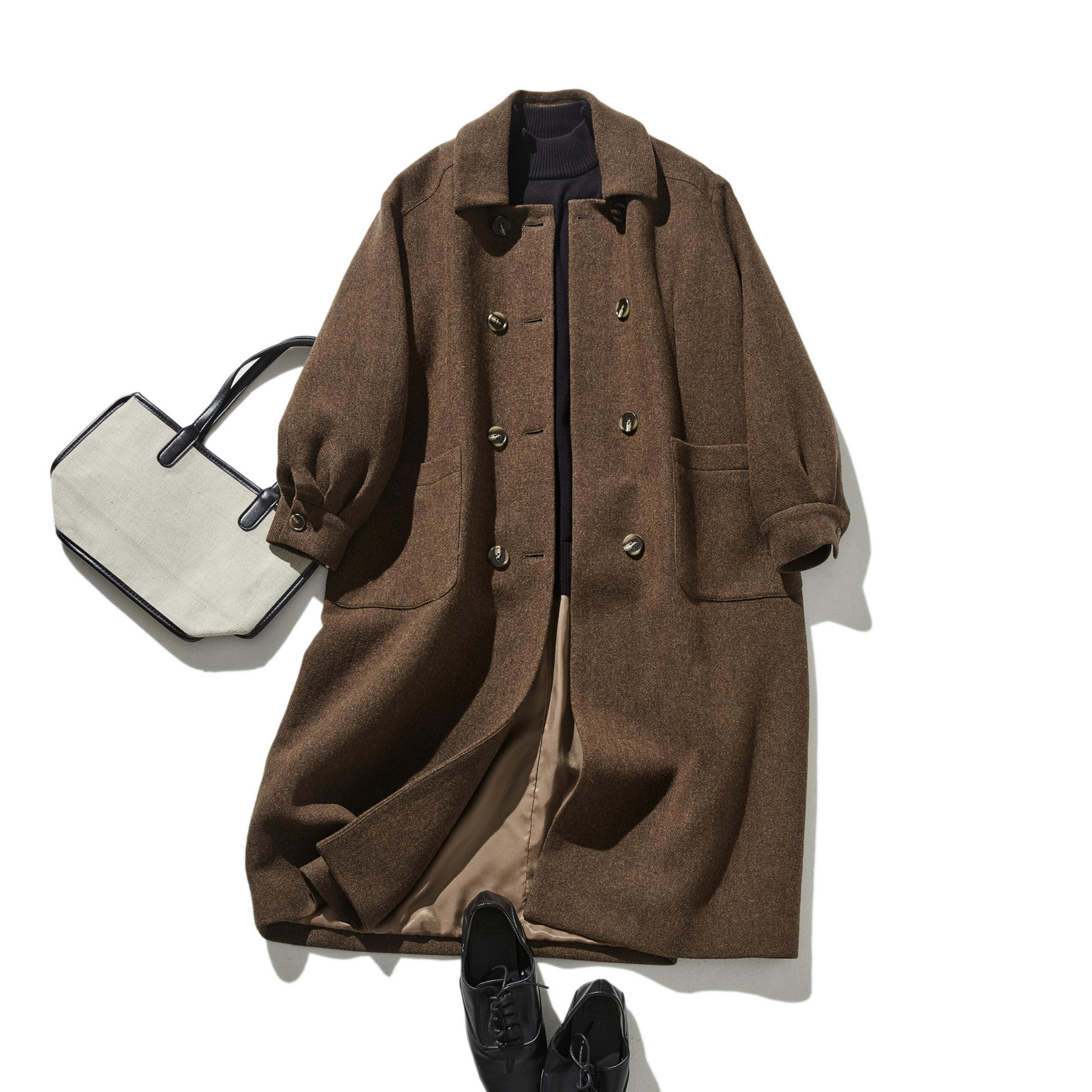 知的で大人雰囲気に ウールコート ロングコート ダブルボタンコート  ブラウン 231208-3