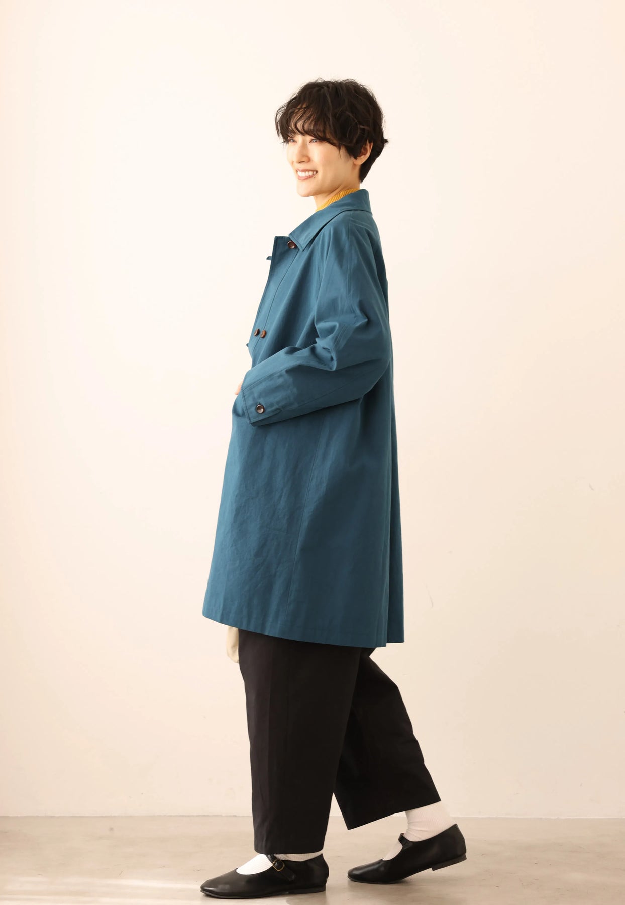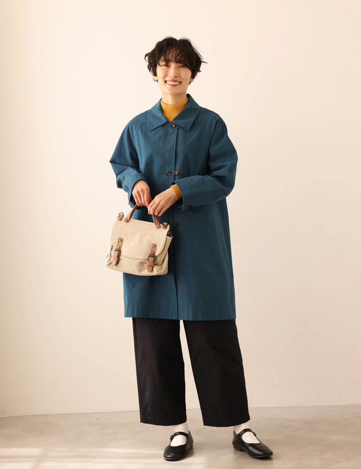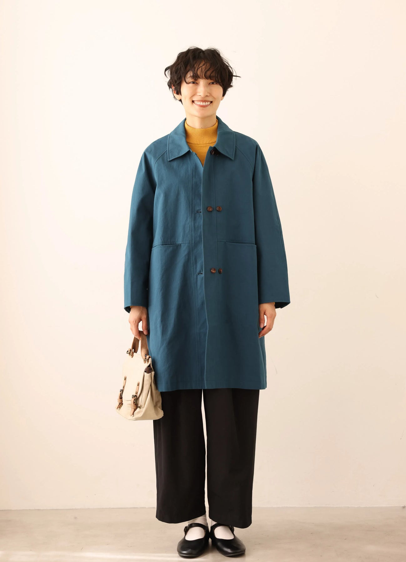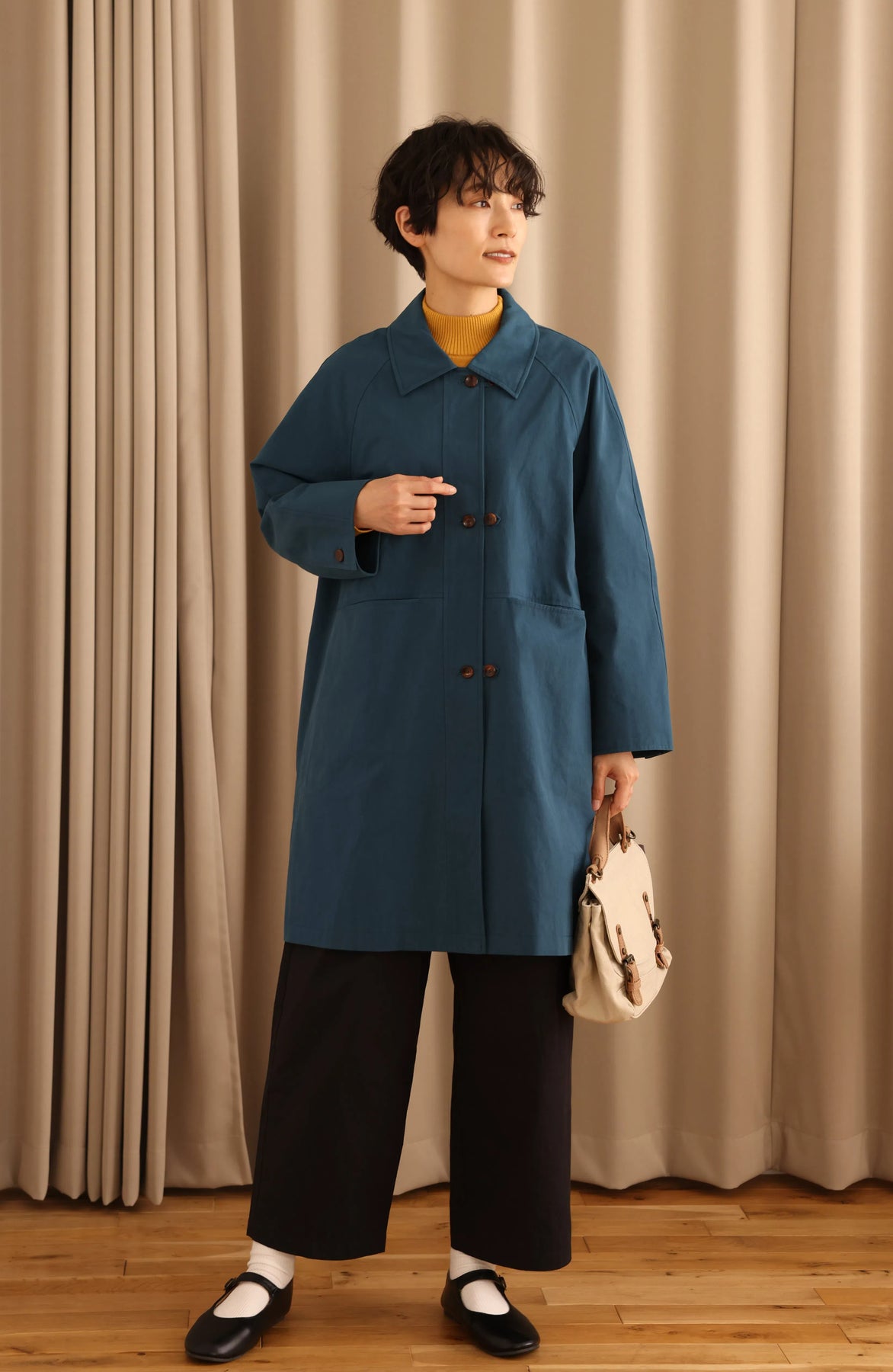 秋の着こなしの主役になるコート ミドル丈コート 240928★高密度のコットン生地で作ったミドル丈コート。★きれいめにもカジュアルにも似合う定番のステンカラー。★中にニットやパーカなどの厚手のインナーを着てもごわつかないのもポイント。★ボリュームのあるワンピースやボトムともバランスよく着こなせます。★袖口はボタンで留められるので、風の侵入を防いでくれます。★さらっと羽織るだけでおしゃれな雰囲気がまとえる一枚です。素材:表地:コットン100%裏地:ポリエステル55% レーヨン45%サイズ:身丈89cmバスト115cm桁丈77cm裾158cmモデルさんの身長:163cm透け感:なし裏地:ありポケット:あり伸縮性:なし光沢感:なしシーズン:春、秋、冬
