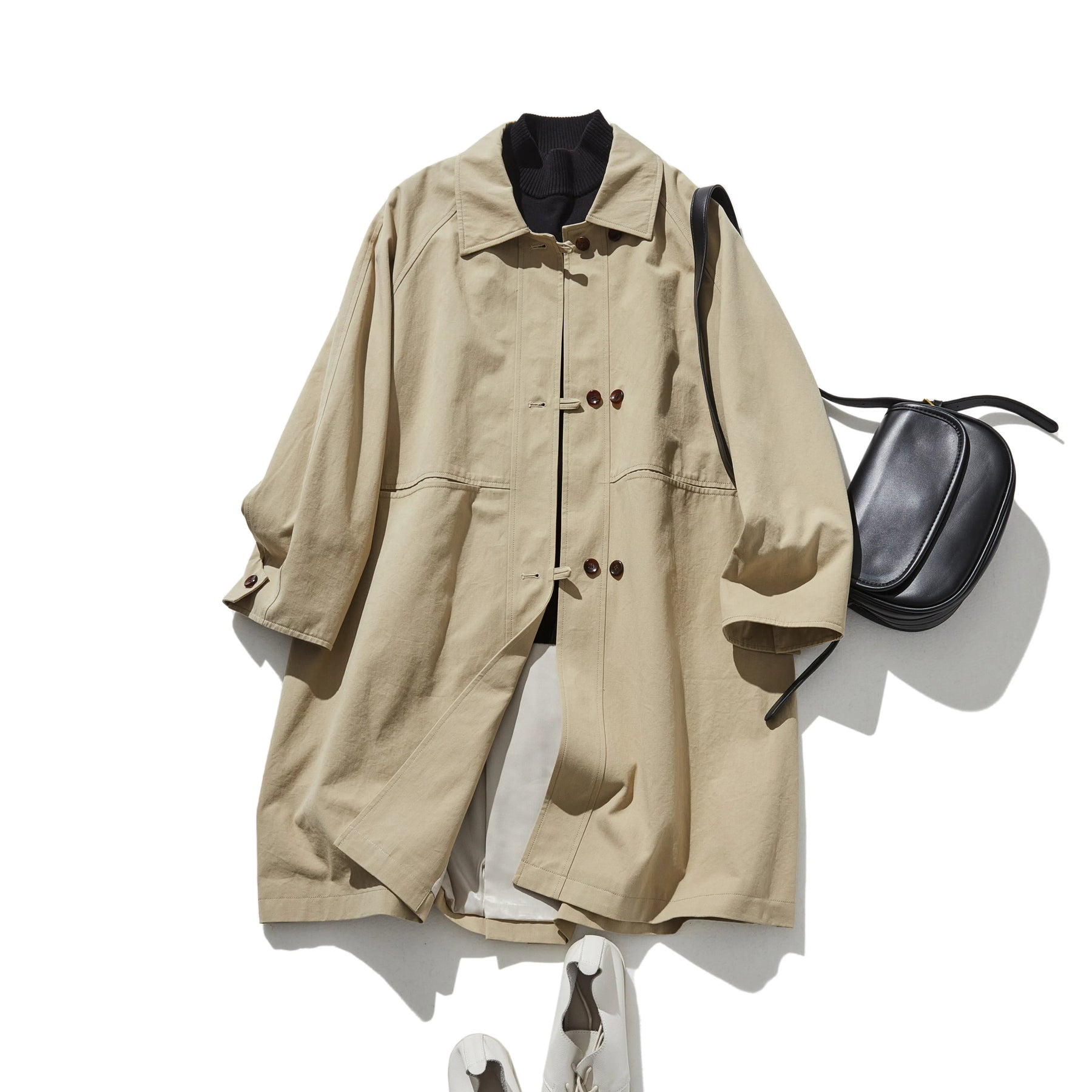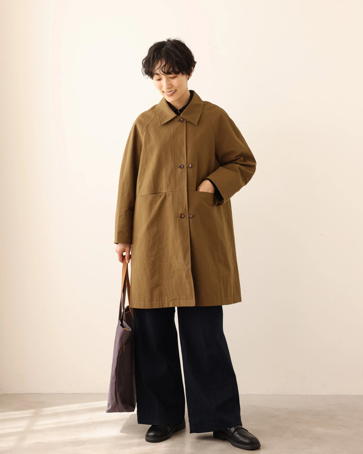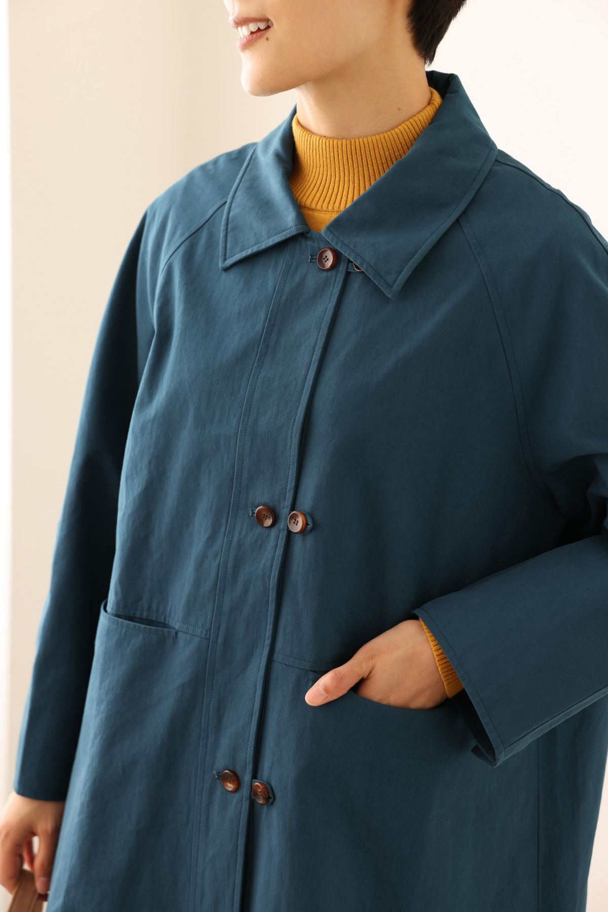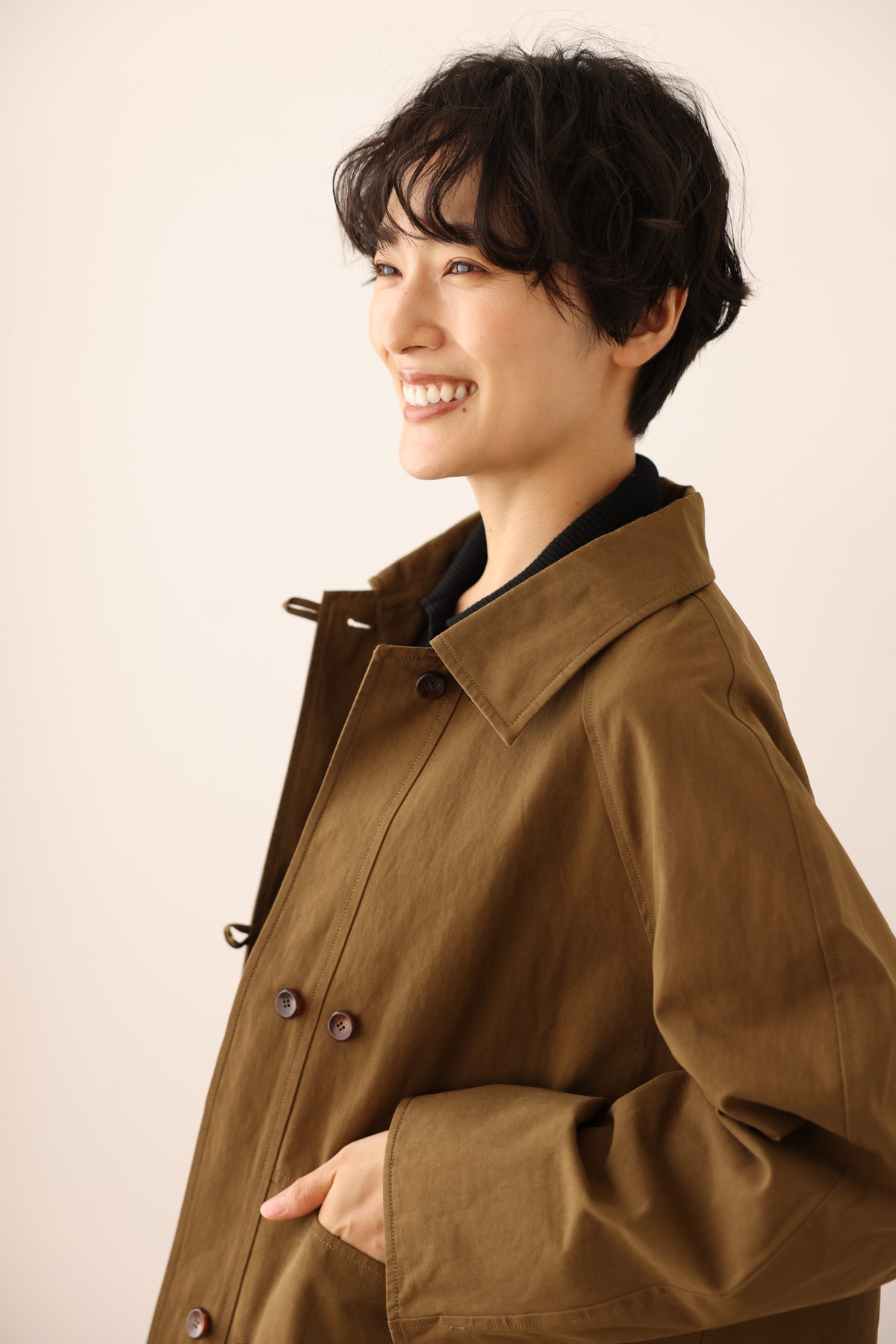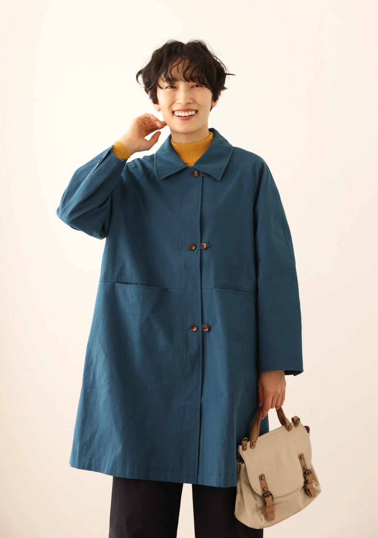 秋の着こなしの主役になるコート ミドル丈コート 240928★高密度のコットン生地で作ったミドル丈コート。★きれいめにもカジュアルにも似合う定番のステンカラー。★中にニットやパーカなどの厚手のインナーを着てもごわつかないのもポイント。★ボリュームのあるワンピースやボトムともバランスよく着こなせます。★袖口はボタンで留められるので、風の侵入を防いでくれます。★さらっと羽織るだけでおしゃれな雰囲気がまとえる一枚です。素材:表地:コットン100%裏地:ポリエステル55% レーヨン45%サイズ:身丈89cmバスト115cm桁丈77cm裾158cmモデルさんの身長:163cm透け感:なし裏地:ありポケット:あり伸縮性:なし光沢感:なしシーズン:春、秋、冬