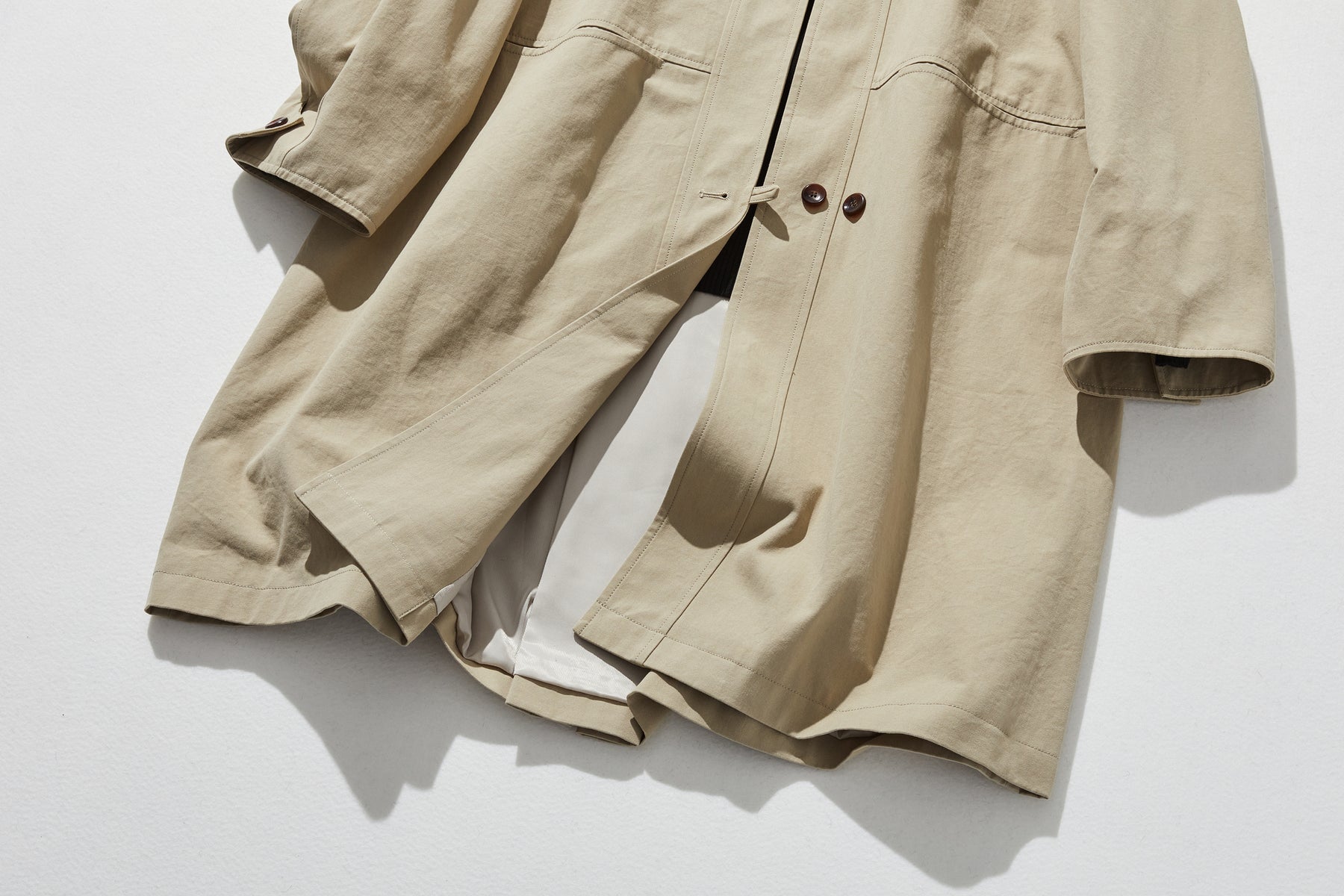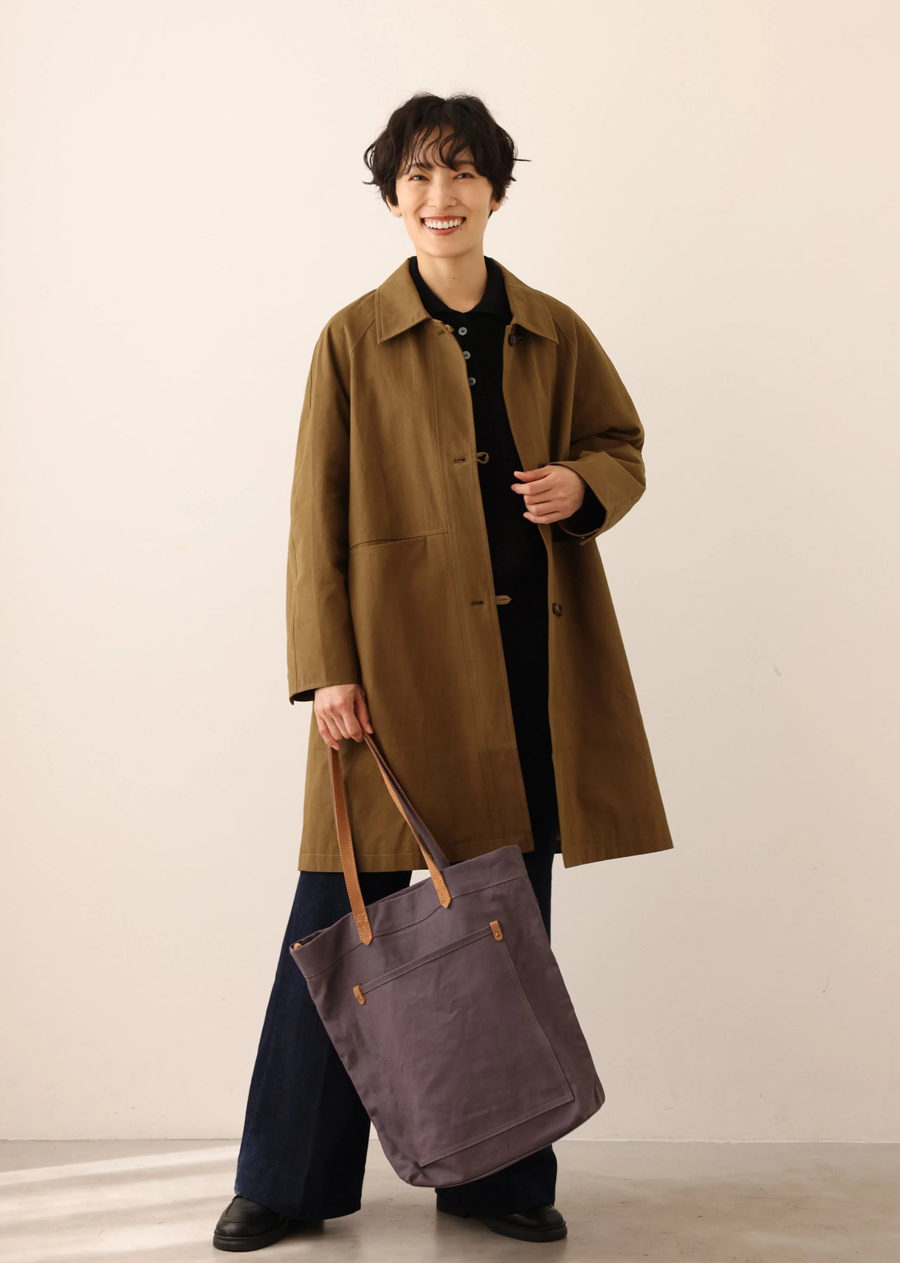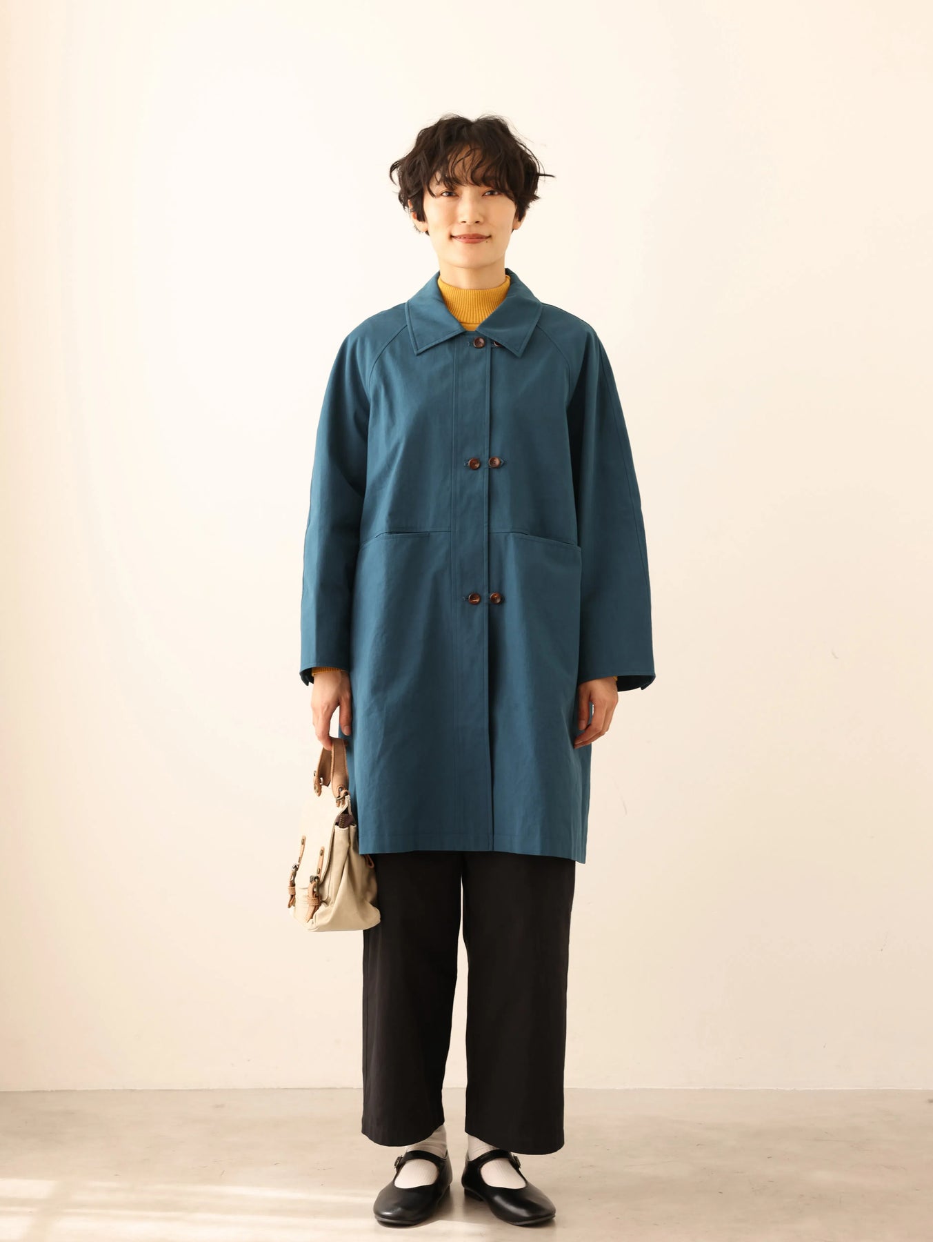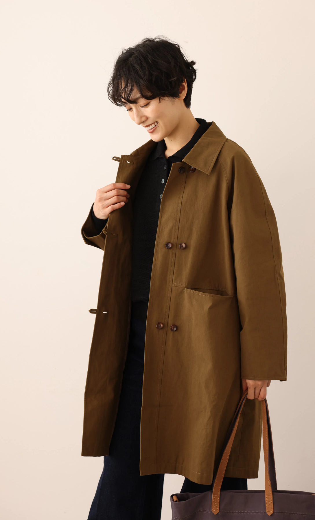 秋の着こなしの主役になるコート ミドル丈コート 240928★高密度のコットン生地で作ったミドル丈コート。★きれいめにもカジュアルにも似合う定番のステンカラー。★中にニットやパーカなどの厚手のインナーを着てもごわつかないのもポイント。★ボリュームのあるワンピースやボトムともバランスよく着こなせます。★袖口はボタンで留められるので、風の侵入を防いでくれます。★さらっと羽織るだけでおしゃれな雰囲気がまとえる一枚です。素材:表地:コットン100%裏地:ポリエステル55% レーヨン45%サイズ:身丈89cmバスト115cm桁丈77cm裾158cmモデルさんの身長:163cm透け感:なし裏地:ありポケット:あり伸縮性:なし光沢感:なしシーズン:春、秋、冬