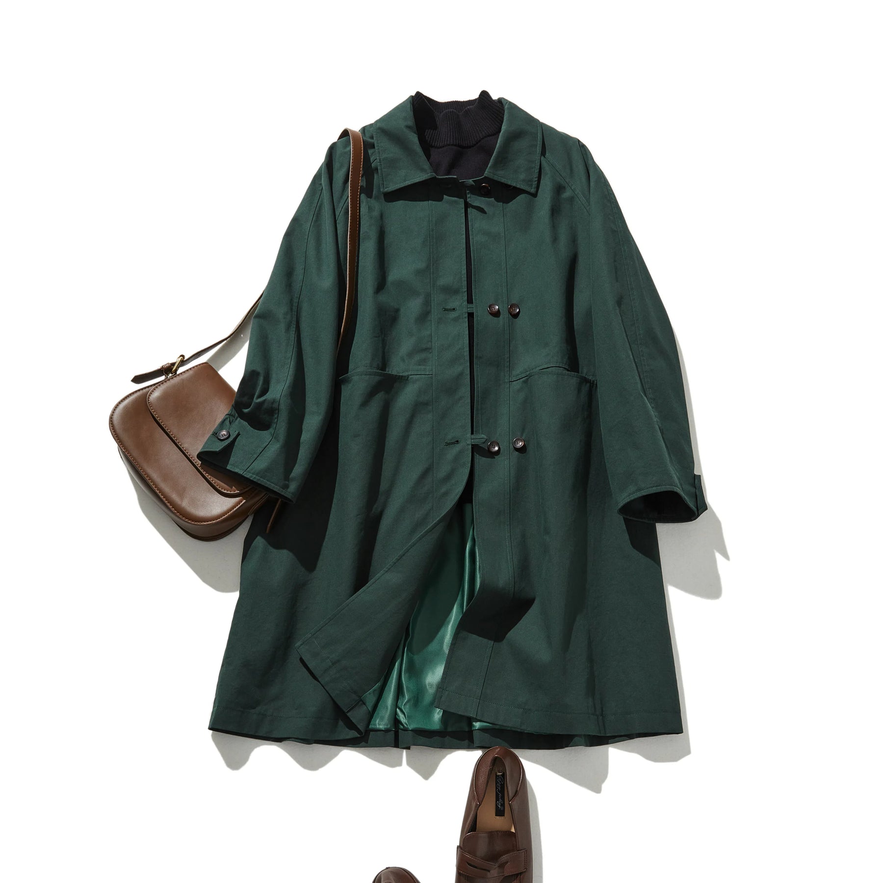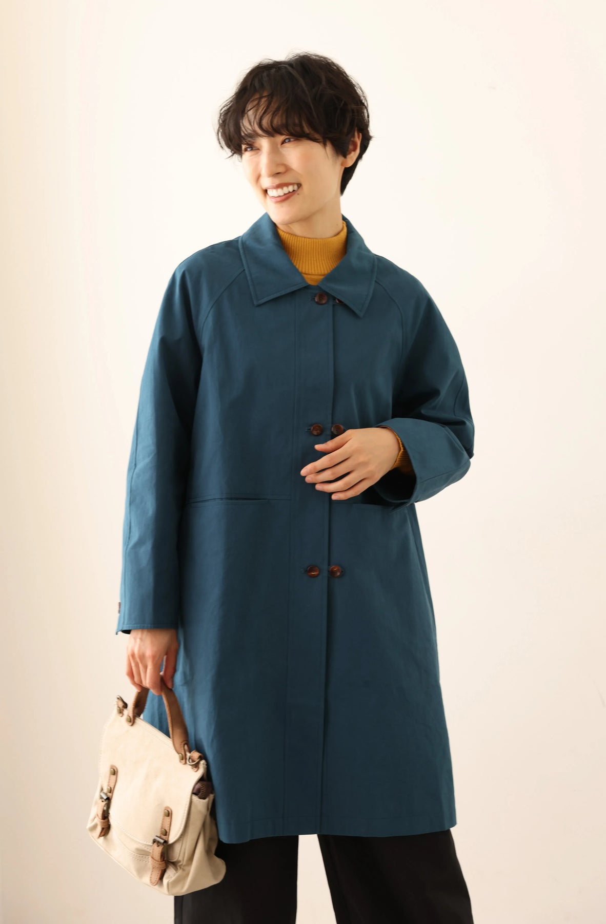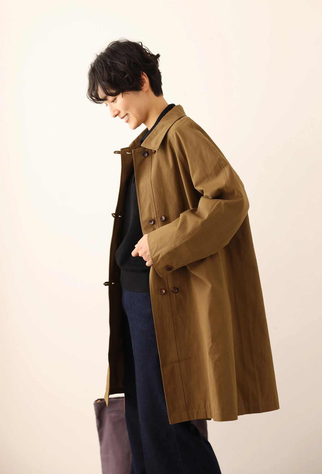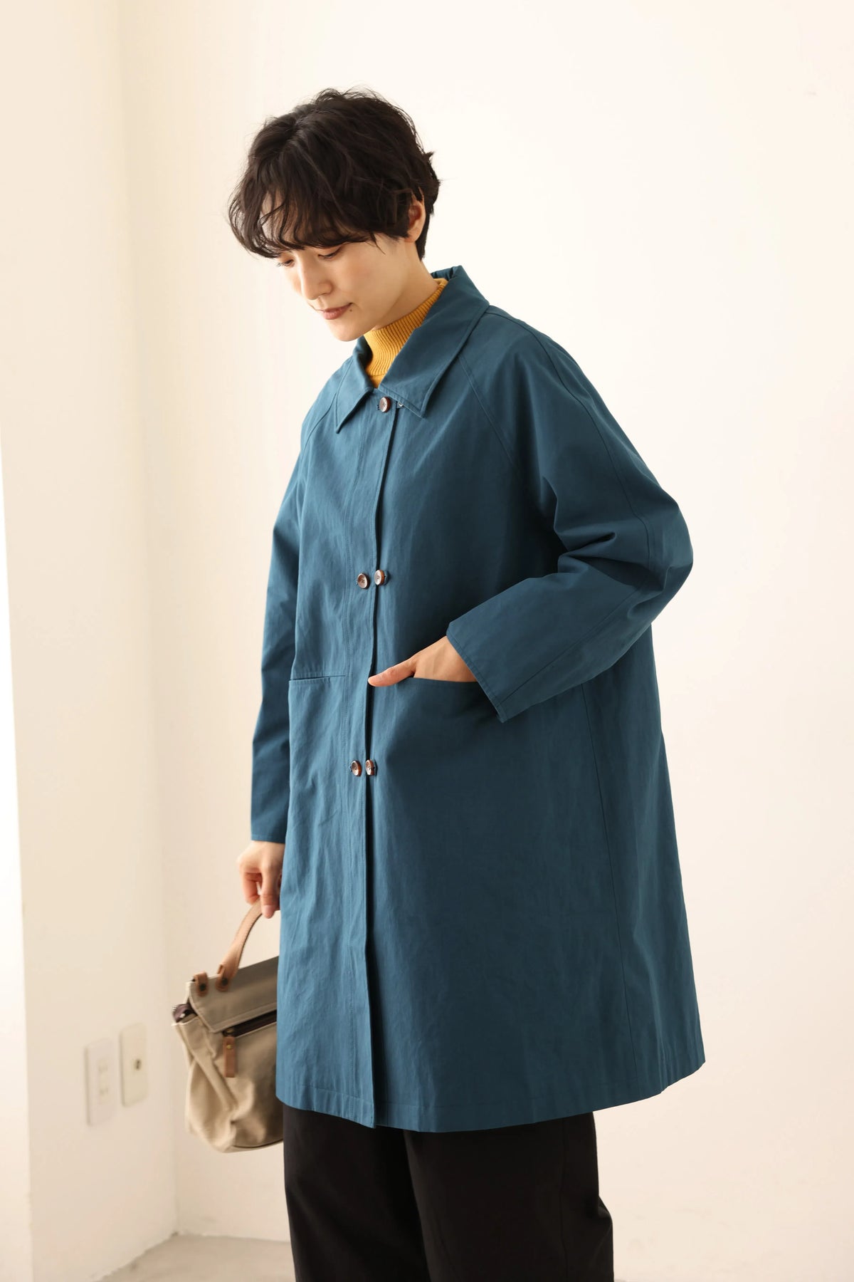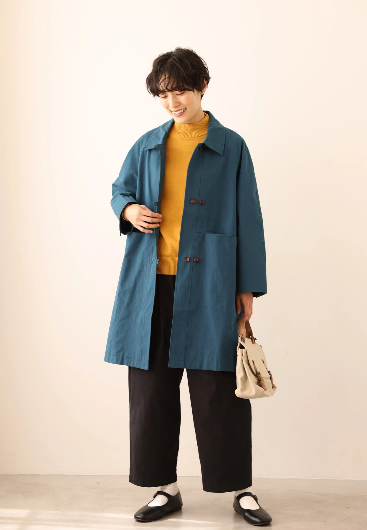 秋の着こなしの主役になるコート ミドル丈コート 240928★高密度のコットン生地で作ったミドル丈コート。★きれいめにもカジュアルにも似合う定番のステンカラー。★中にニットやパーカなどの厚手のインナーを着てもごわつかないのもポイント。★ボリュームのあるワンピースやボトムともバランスよく着こなせます。★袖口はボタンで留められるので、風の侵入を防いでくれます。★さらっと羽織るだけでおしゃれな雰囲気がまとえる一枚です。素材:表地:コットン100%裏地:ポリエステル55% レーヨン45%サイズ:身丈89cmバスト115cm桁丈77cm裾158cmモデルさんの身長:163cm透け感:なし裏地:ありポケット:あり伸縮性:なし光沢感:なしシーズン:春、秋、冬