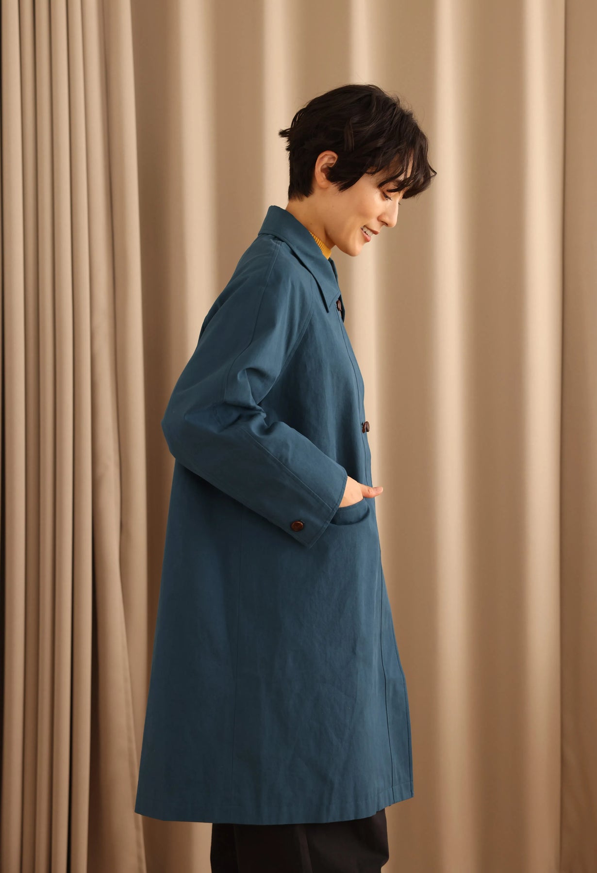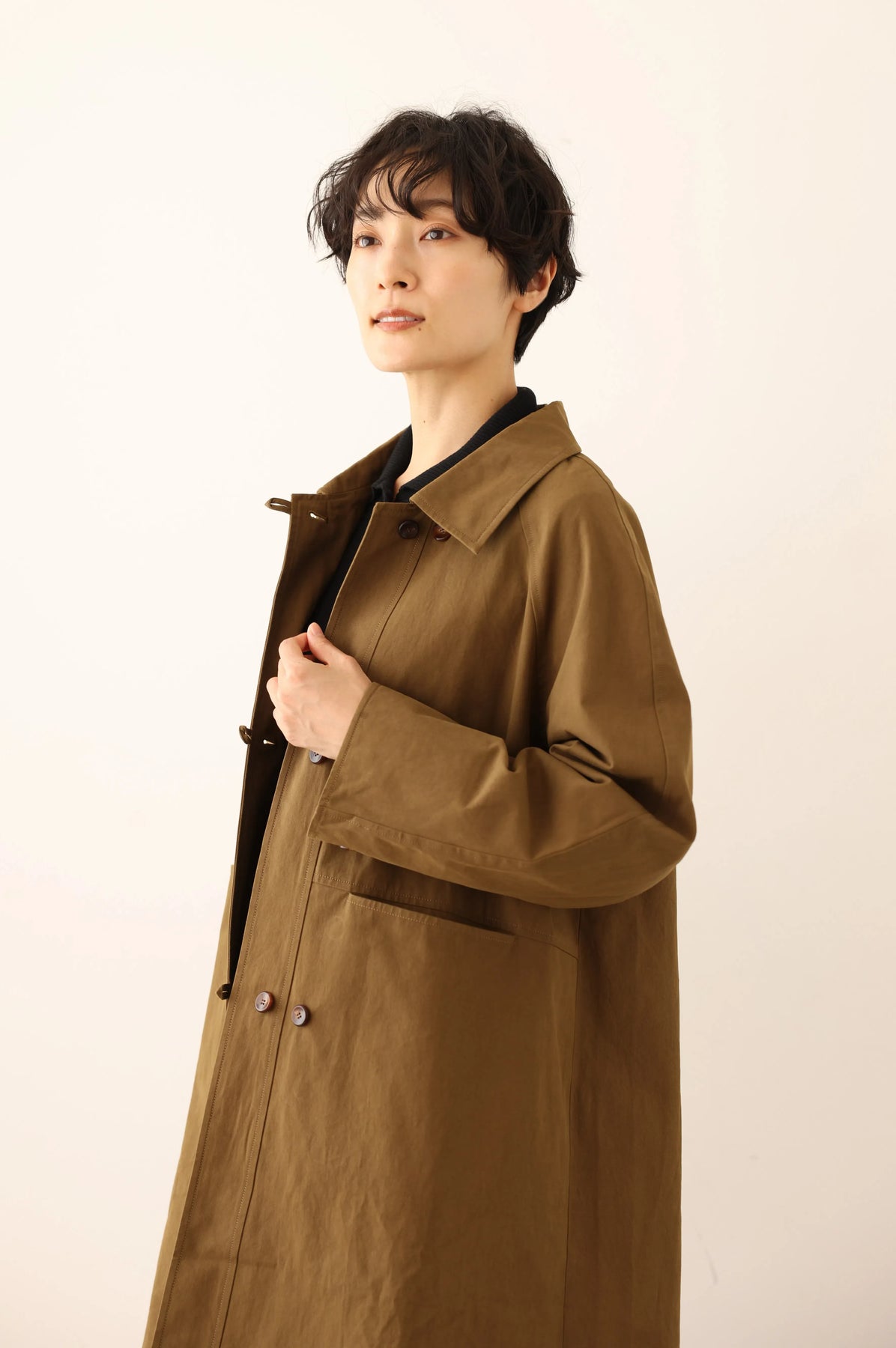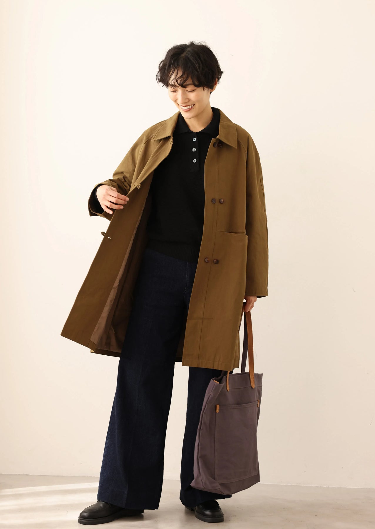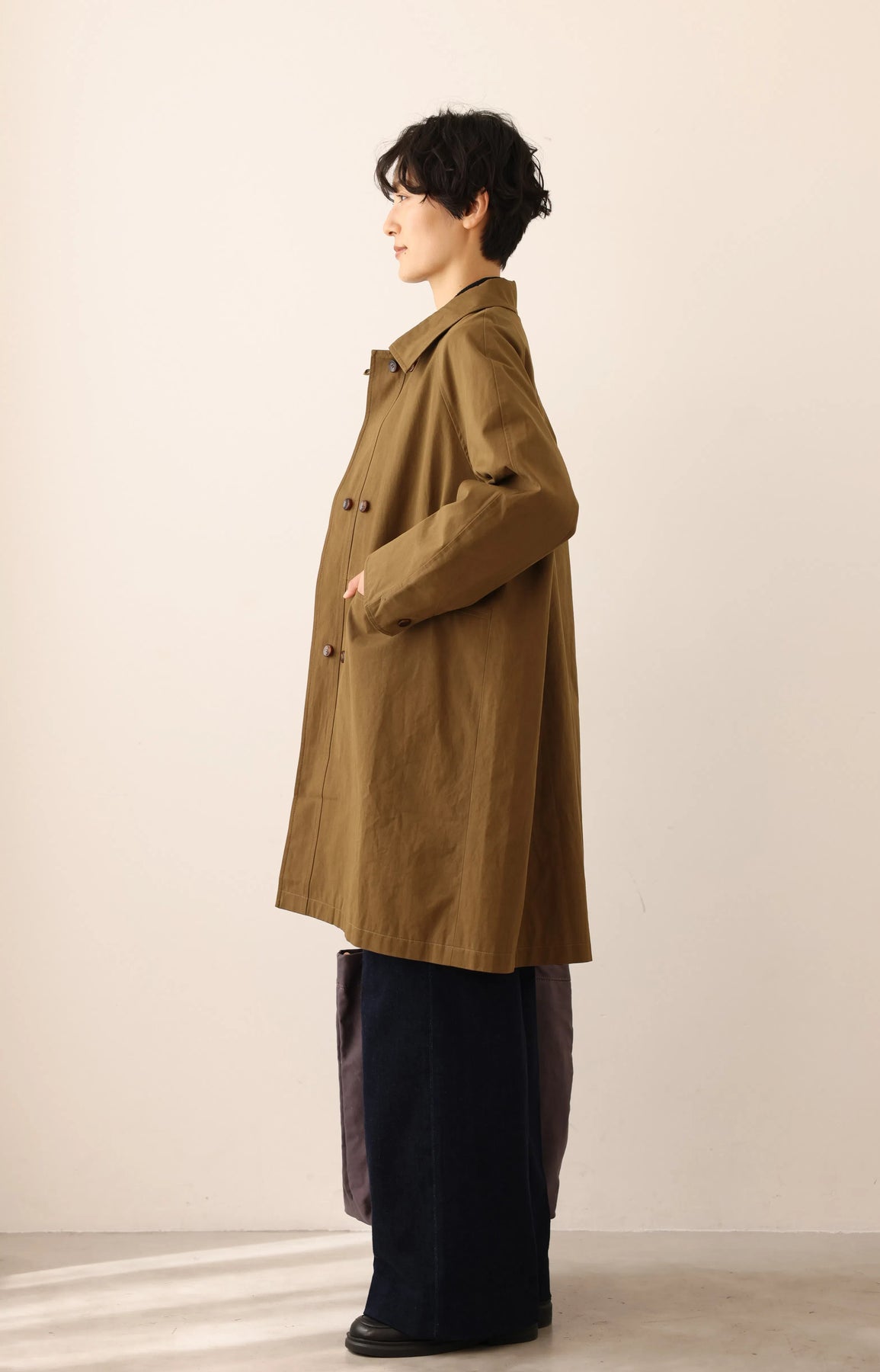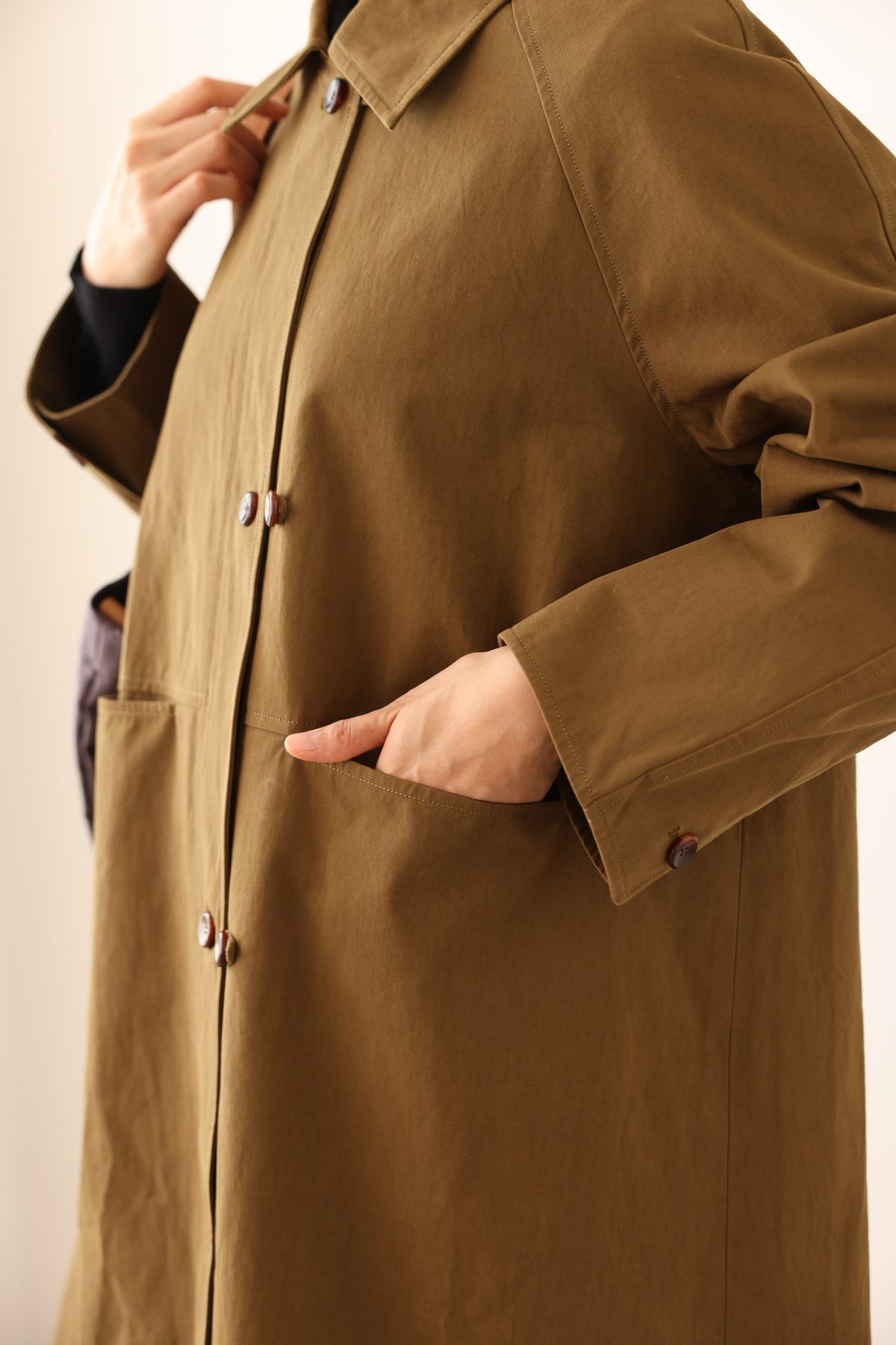 秋の着こなしの主役になるコート ミドル丈コート 240928★高密度のコットン生地で作ったミドル丈コート。★きれいめにもカジュアルにも似合う定番のステンカラー。★中にニットやパーカなどの厚手のインナーを着てもごわつかないのもポイント。★ボリュームのあるワンピースやボトムともバランスよく着こなせます。★袖口はボタンで留められるので、風の侵入を防いでくれます。★さらっと羽織るだけでおしゃれな雰囲気がまとえる一枚です。素材:表地:コットン100%裏地:ポリエステル55% レーヨン45%サイズ:身丈89cmバスト115cm桁丈77cm裾158cmモデルさんの身長:163cm透け感:なし裏地:ありポケット:あり伸縮性:なし光沢感:なしシーズン:春、秋、冬