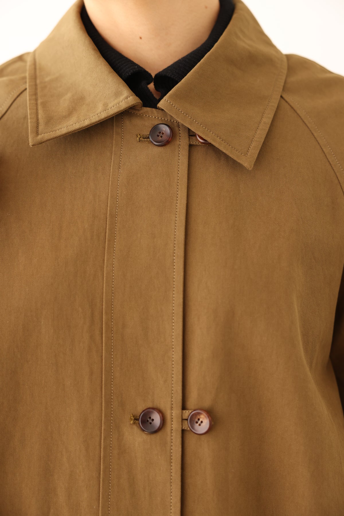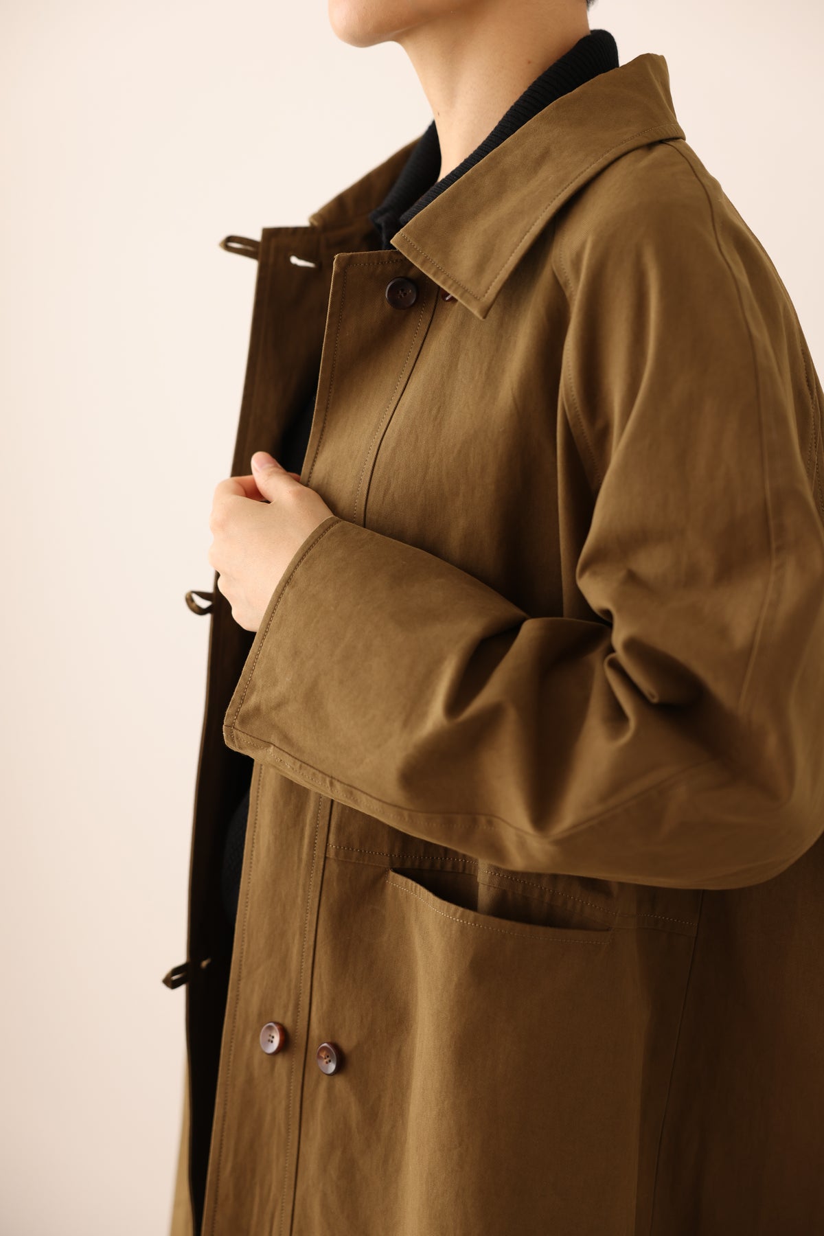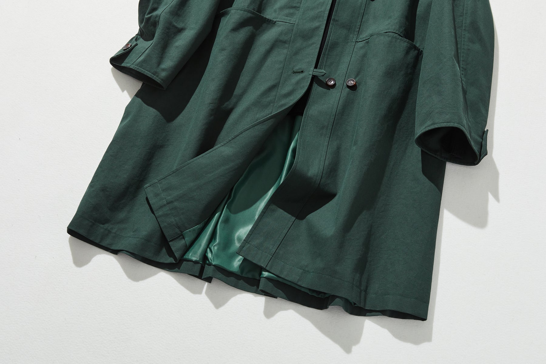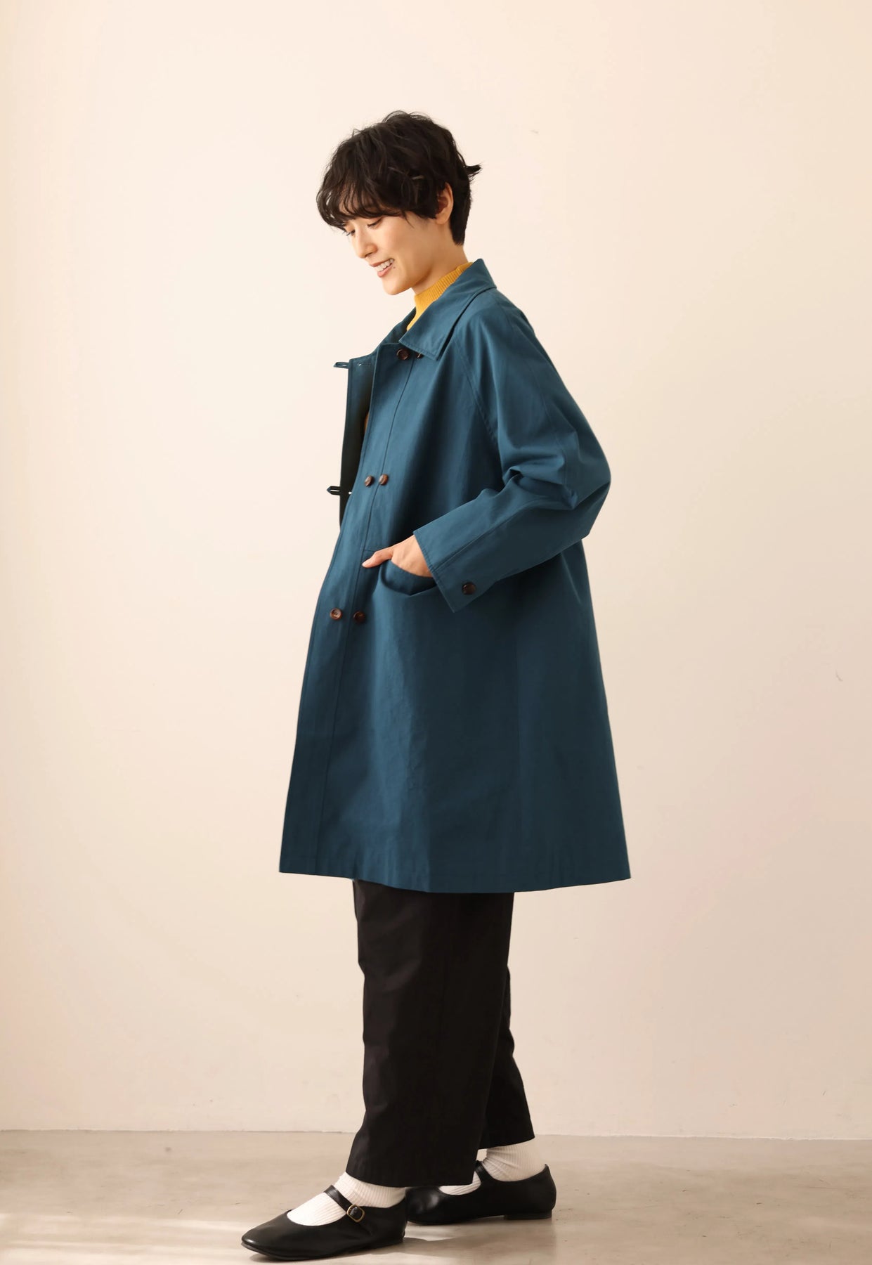 秋の着こなしの主役になるコート ミドル丈コート 240928★高密度のコットン生地で作ったミドル丈コート。★きれいめにもカジュアルにも似合う定番のステンカラー。★中にニットやパーカなどの厚手のインナーを着てもごわつかないのもポイント。★ボリュームのあるワンピースやボトムともバランスよく着こなせます。★袖口はボタンで留められるので、風の侵入を防いでくれます。★さらっと羽織るだけでおしゃれな雰囲気がまとえる一枚です。素材:表地:コットン100%裏地:ポリエステル55% レーヨン45%サイズ:身丈89cmバスト115cm桁丈77cm裾158cmモデルさんの身長:163cm透け感:なし裏地:ありポケット:あり伸縮性:なし光沢感:なしシーズン:春、秋、冬