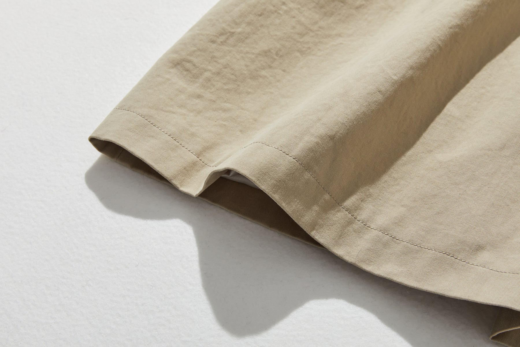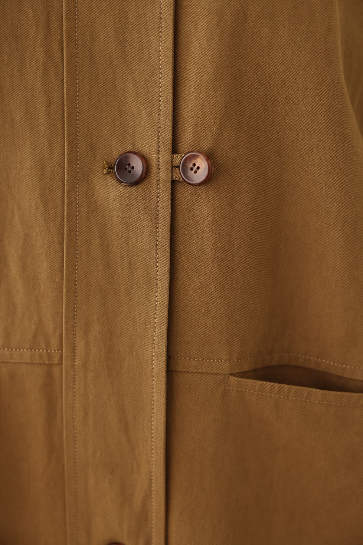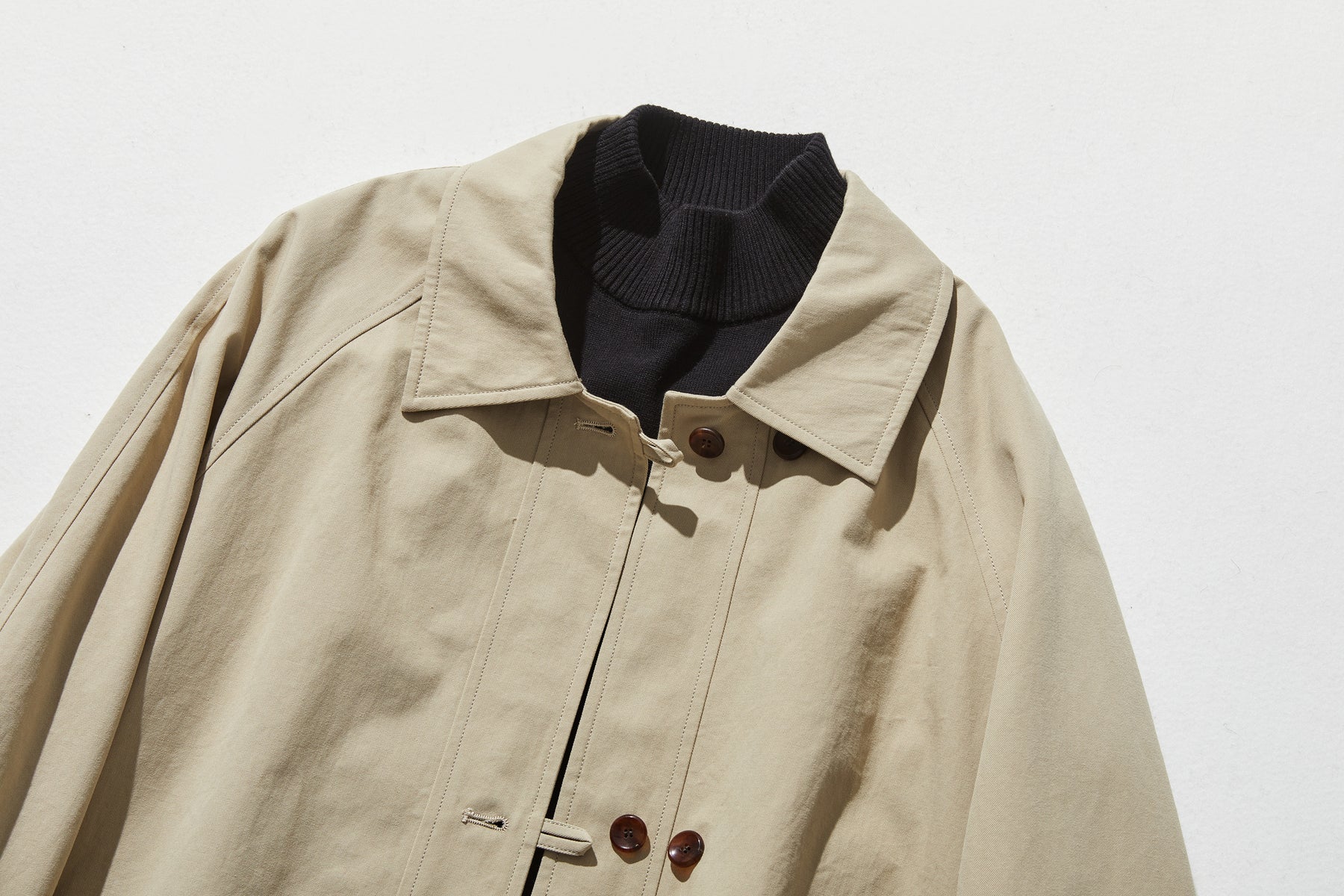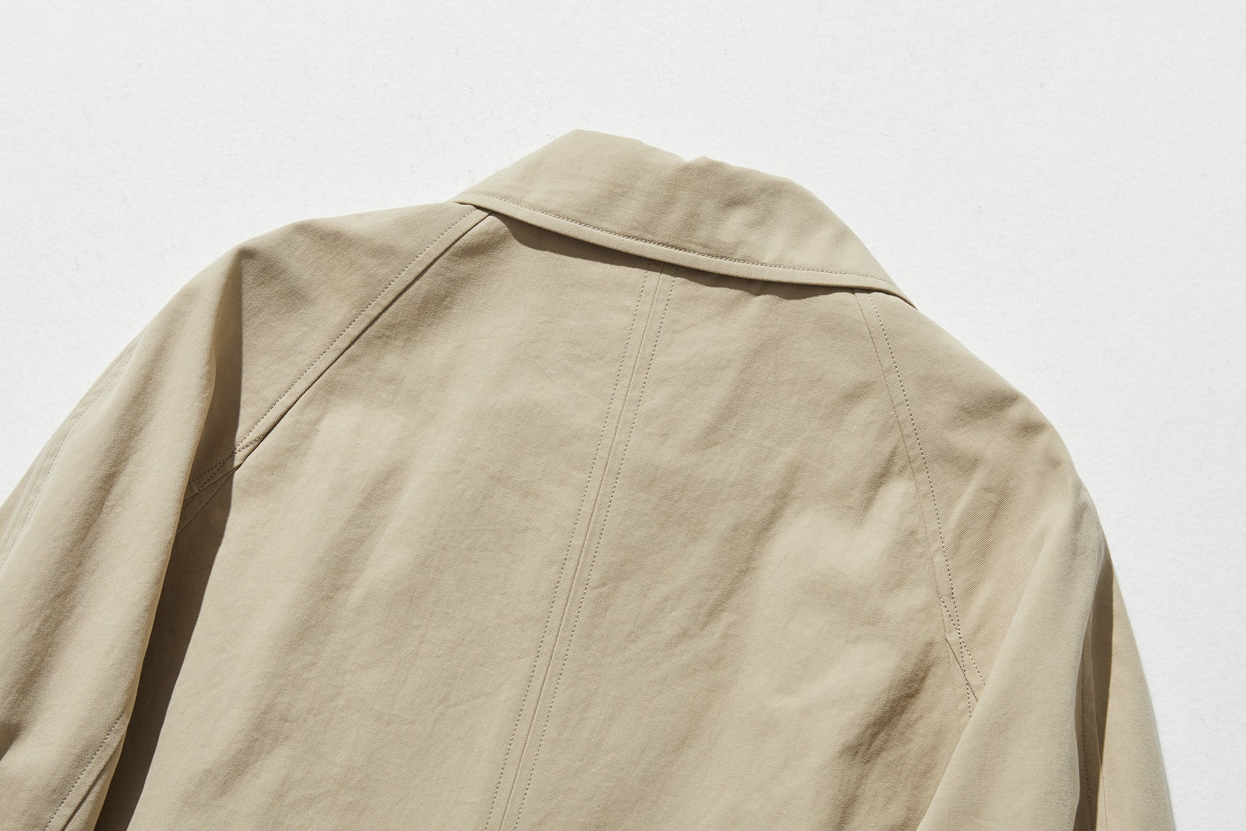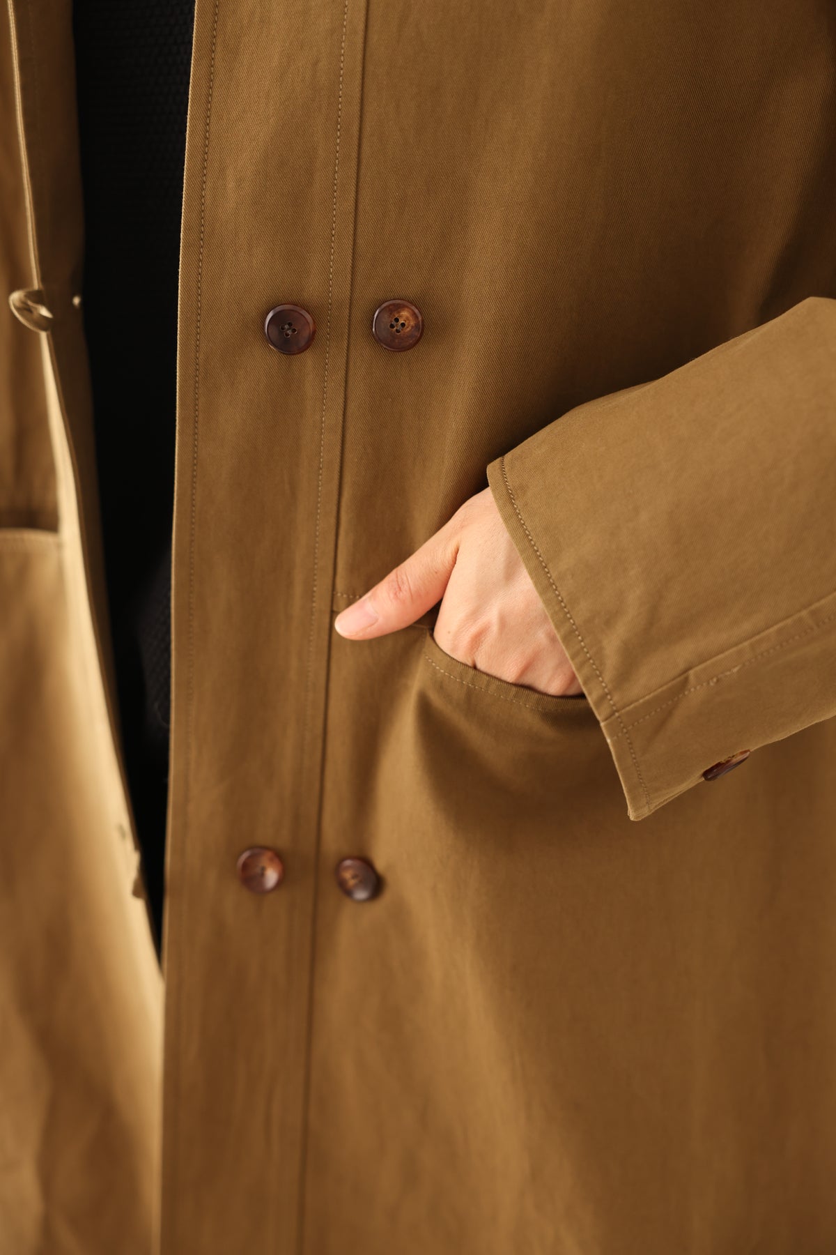 秋の着こなしの主役になるコート ミドル丈コート 240928★高密度のコットン生地で作ったミドル丈コート。★きれいめにもカジュアルにも似合う定番のステンカラー。★中にニットやパーカなどの厚手のインナーを着てもごわつかないのもポイント。★ボリュームのあるワンピースやボトムともバランスよく着こなせます。★袖口はボタンで留められるので、風の侵入を防いでくれます。★さらっと羽織るだけでおしゃれな雰囲気がまとえる一枚です。素材:表地:コットン100%裏地:ポリエステル55% レーヨン45%サイズ:身丈89cmバスト115cm桁丈77cm裾158cmモデルさんの身長:163cm透け感:なし裏地:ありポケット:あり伸縮性:なし光沢感:なしシーズン:春、秋、冬