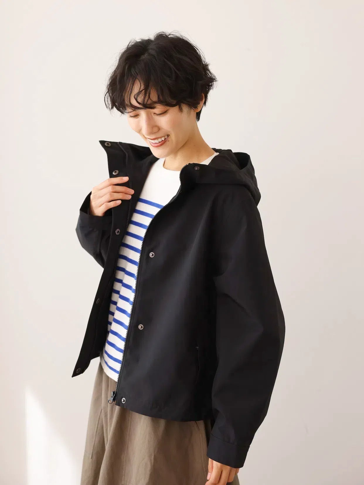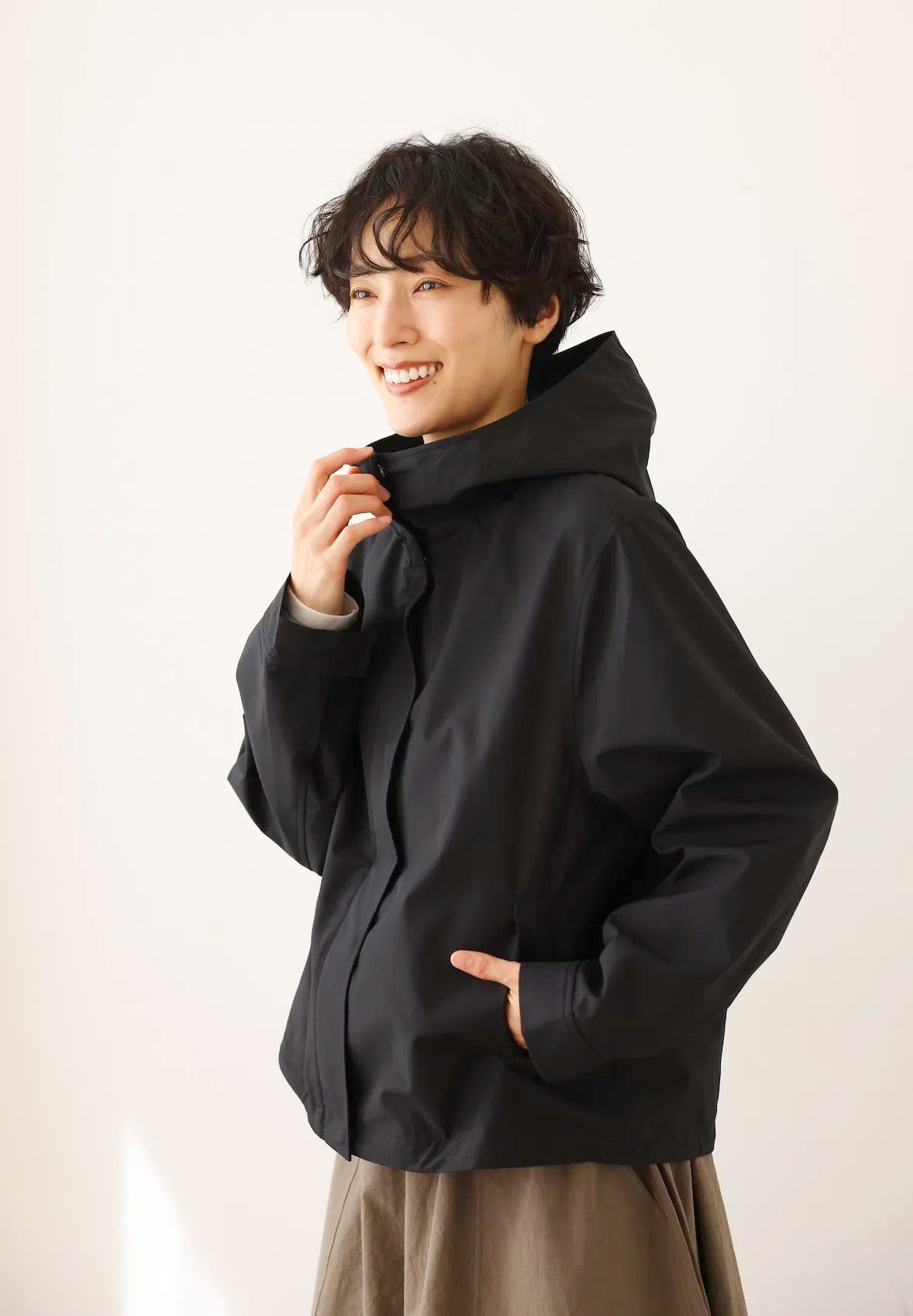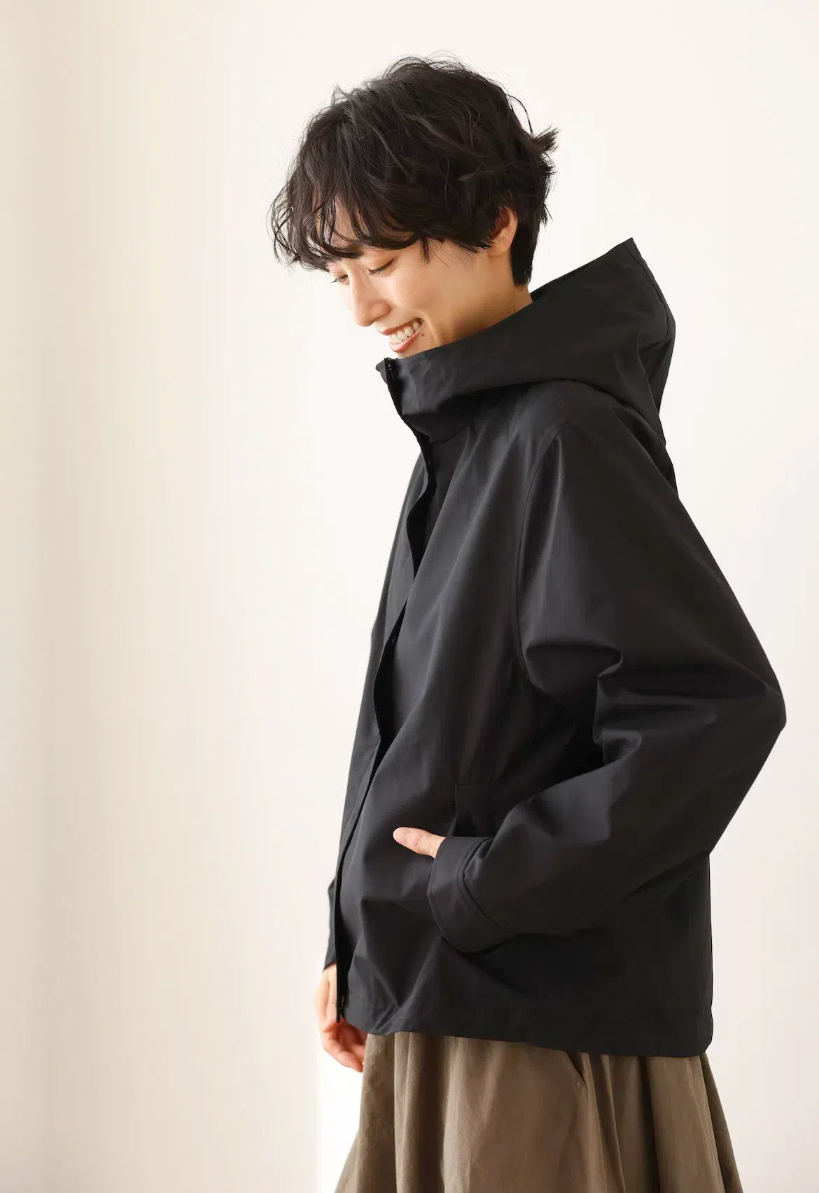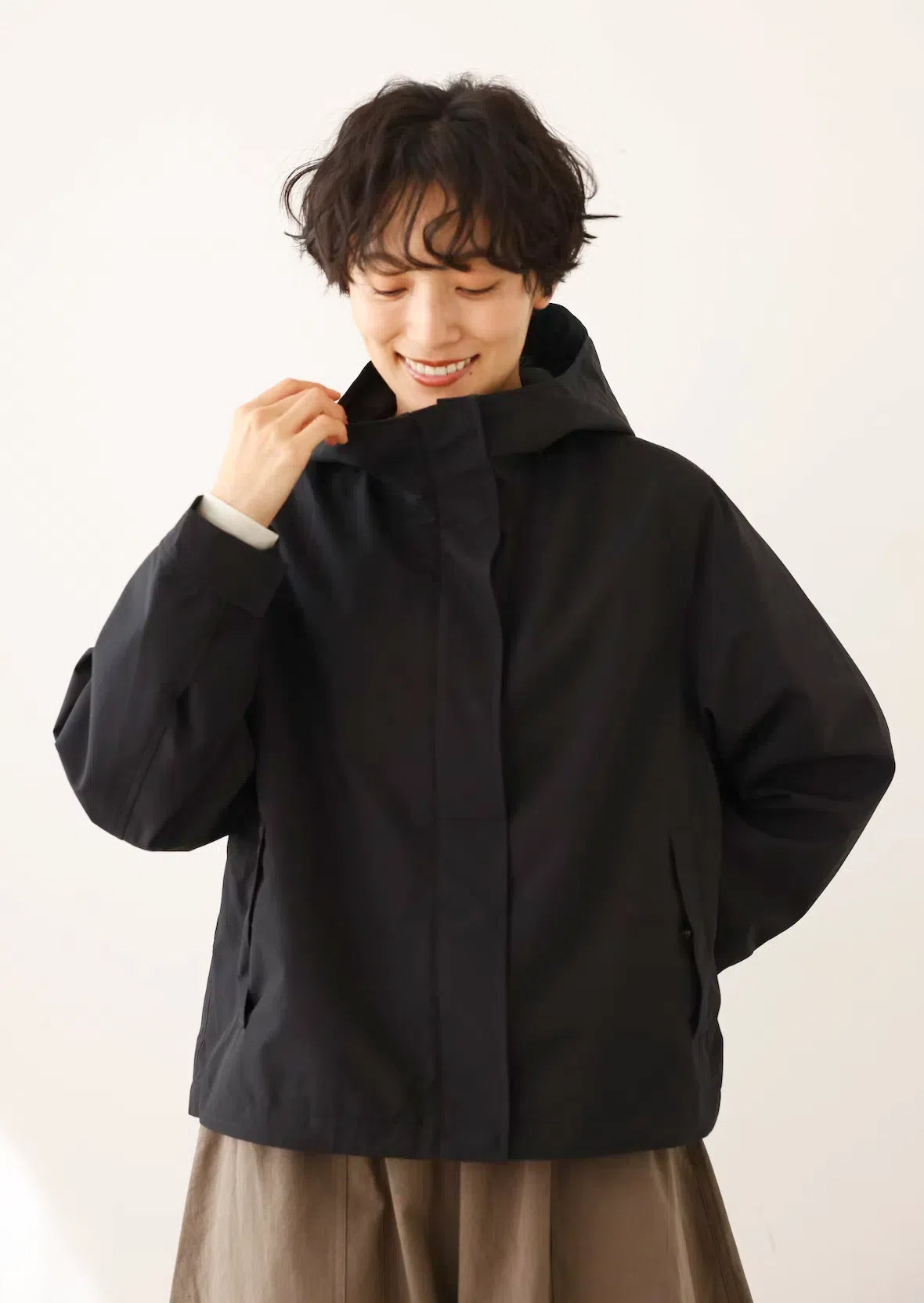 ★調節可能なフードやと裾、スナップボタンで留められる袖口などのディティールがアクティブな動きに対応し、雨風から身体を守ります。
