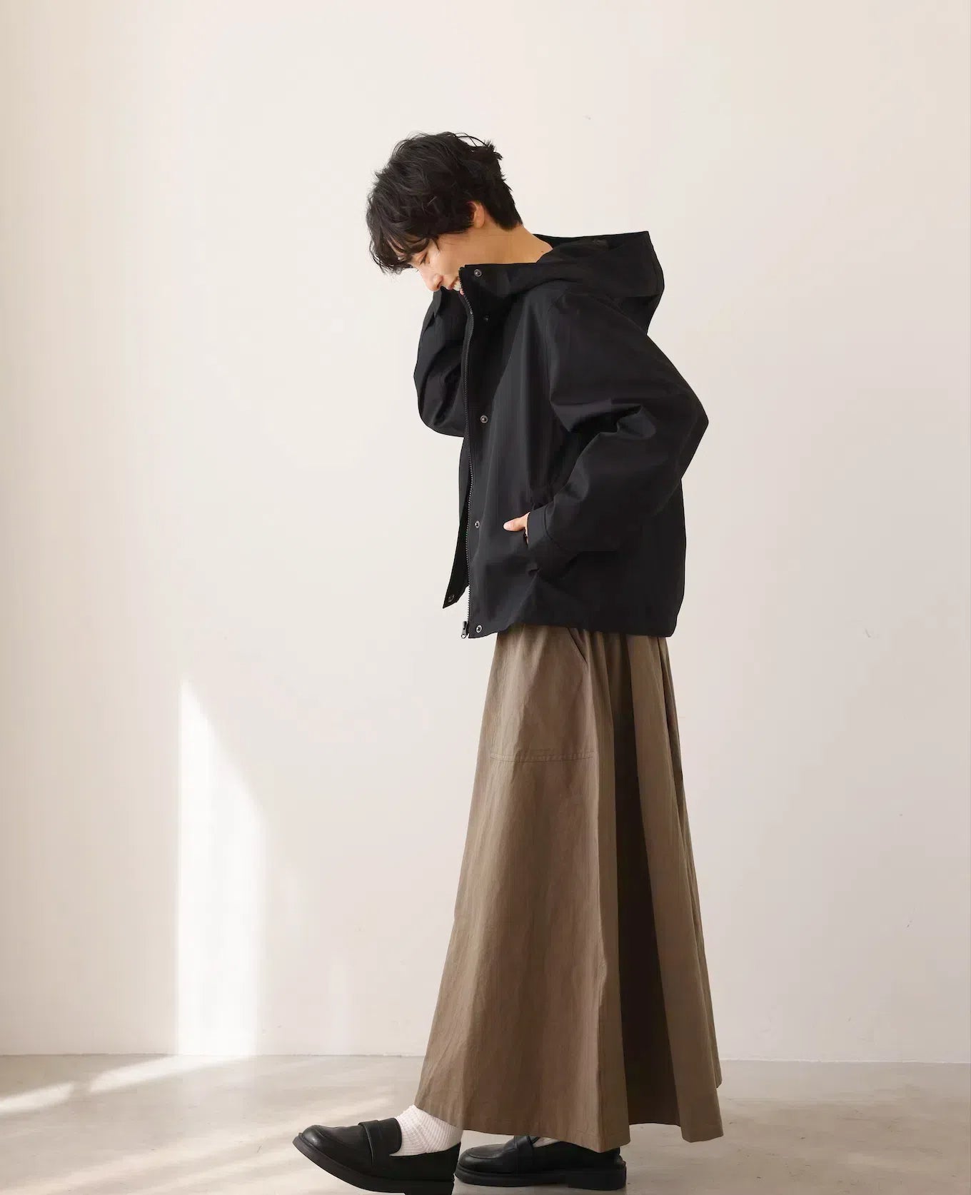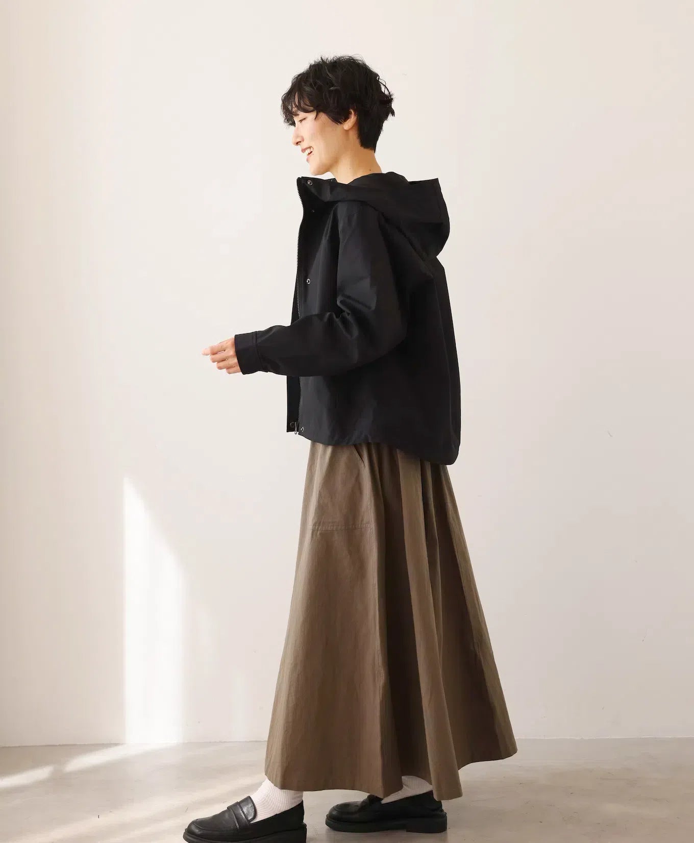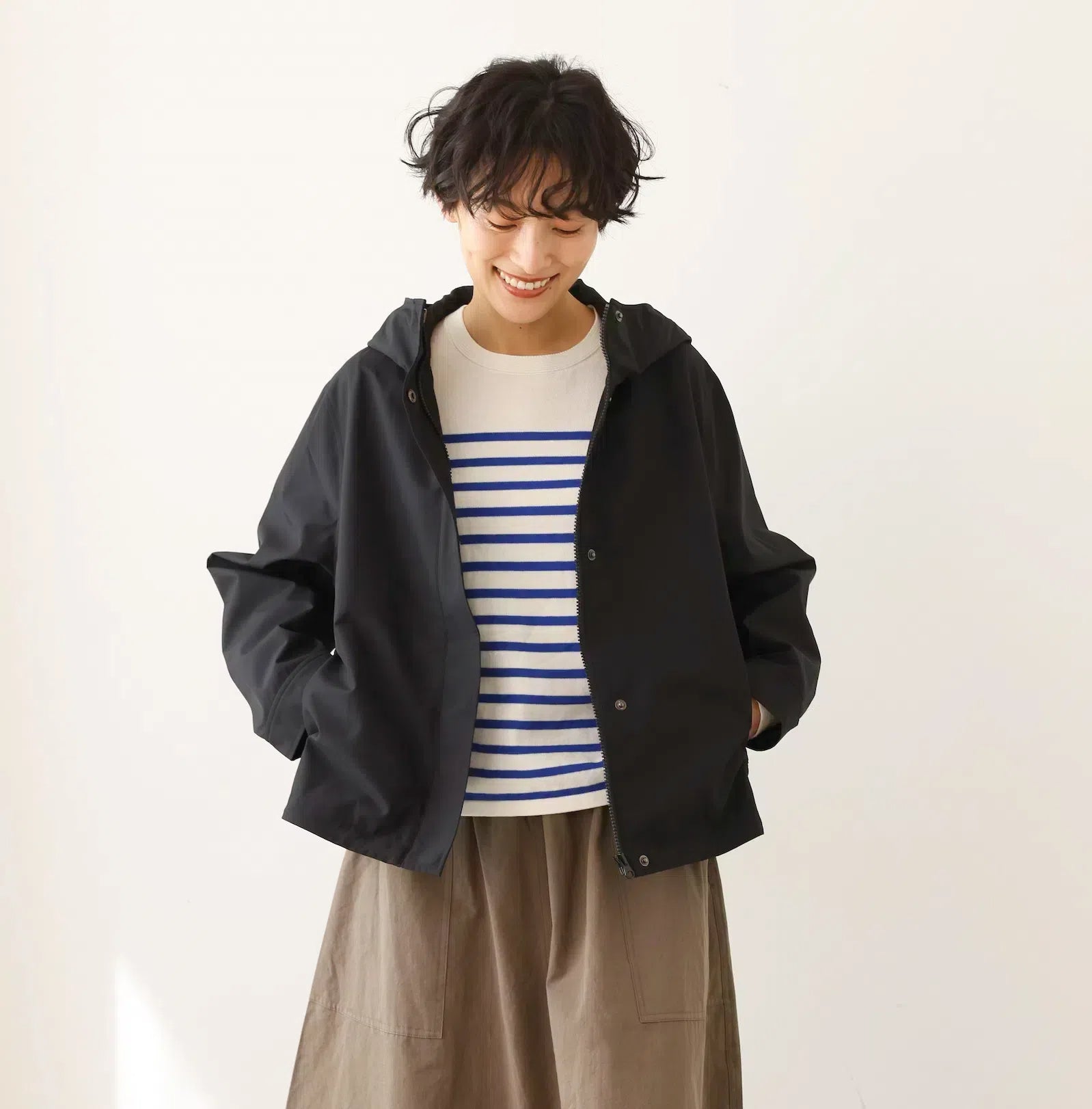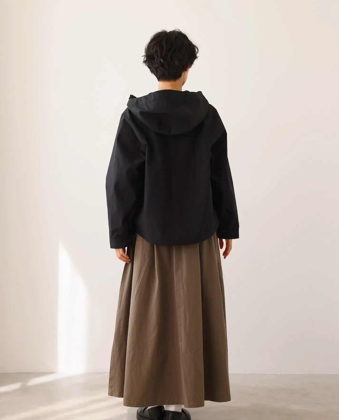 ★調節可能なフードやと裾、スナップボタンで留められる袖口などのディティールがアクティブな動きに対応し、雨風から身体を守ります。