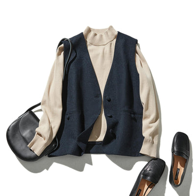 ヴィンテージ感溢れ 大人Vネックベスト くるみボタン ウール混 231106-2