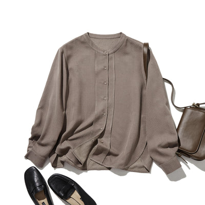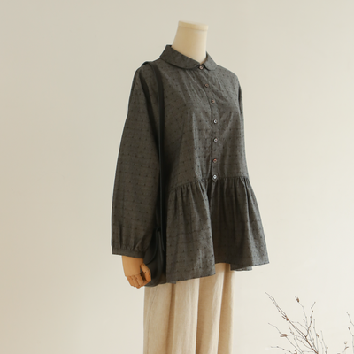 立体シルエットが美しい、ドット織りシャツブラウス 長袖ブラウス 250919-1