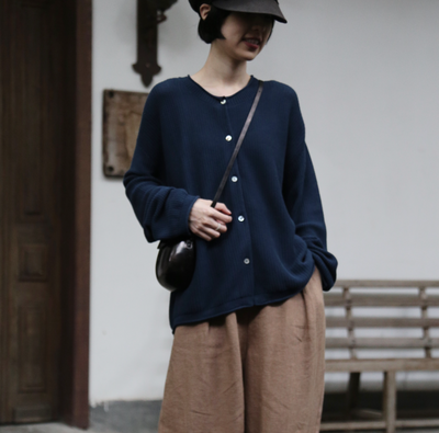 季節の移り変わりに寄り添う コットン100%カーディガン ニット 紺色 250917-2