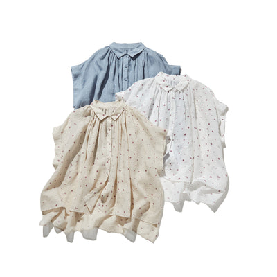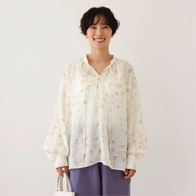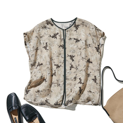 夏の定番!エアリー麻のブラウス 小花プリント 超ゆったりシルエット 250801