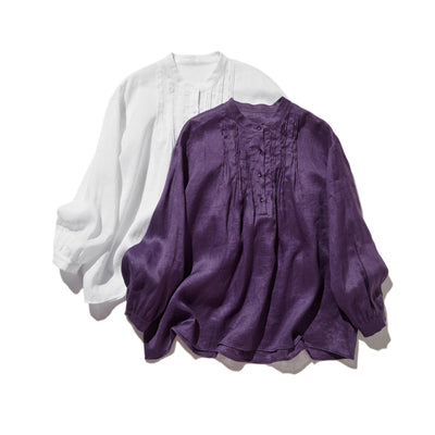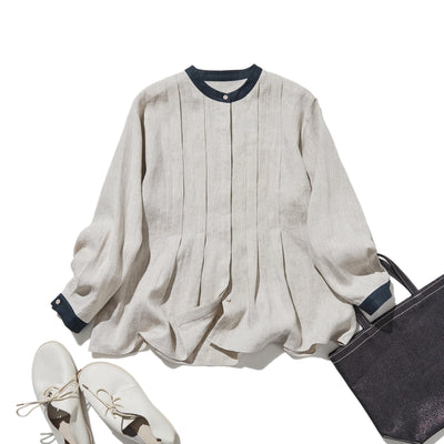 シンプルだけど、どこか特別 プリーツ加工シャツブラウス リネン100%シャツ 250915-1