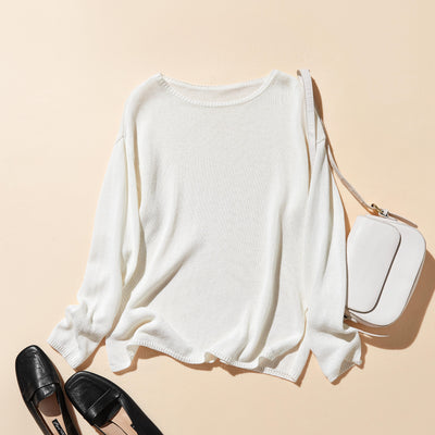 吸湿速乾! 大人カジュアルニットプルオーバー 和紙糸ニット オフィス対応 夏物ニット ホワイト250805-1