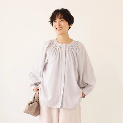 大人の可愛らしさを纏う ピンタック入りブラウス シャツブラウス ライトグレー 250907