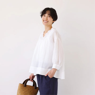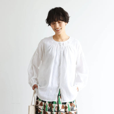 シンプルコーデに立体感と華やぎを添える一枚 フランチリネン 100% 長袖ブラウス 250815