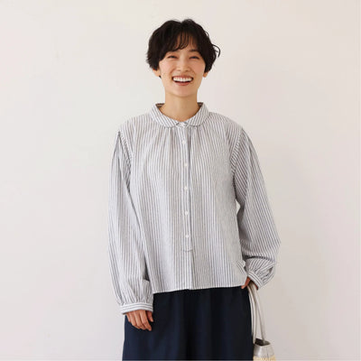大人可愛い!ヴィンテージモードなストライプコットンリネンシャツ 250906
