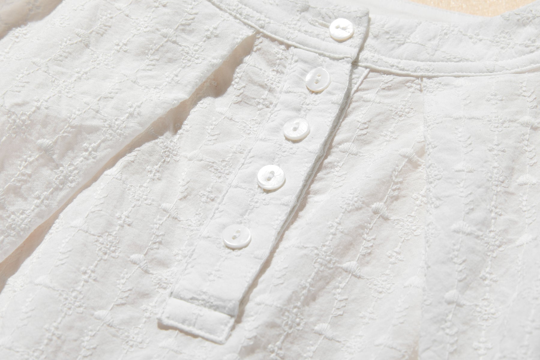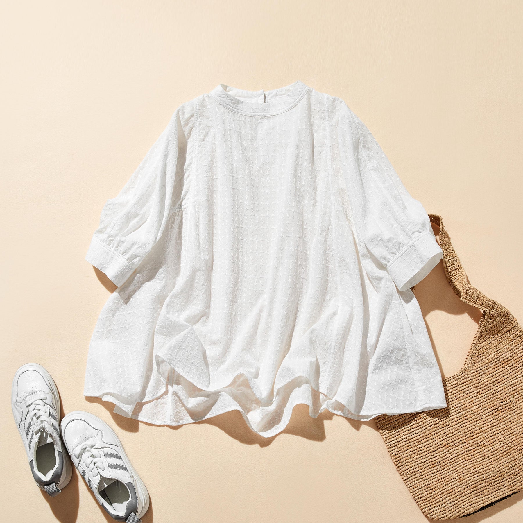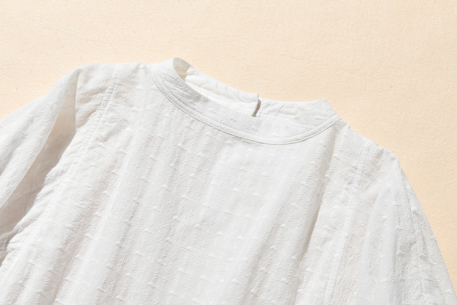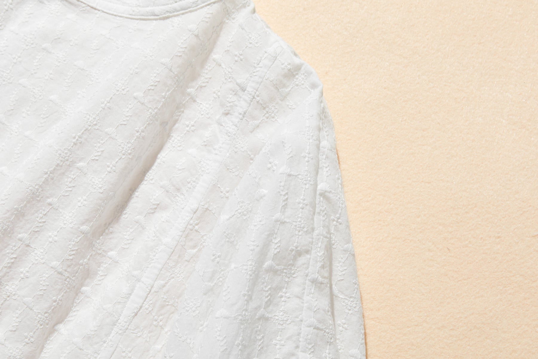 ふんわり優美な刺繍が魅力のコットンプルオーバー 7分袖 コットン100% ホワイト 250806-1