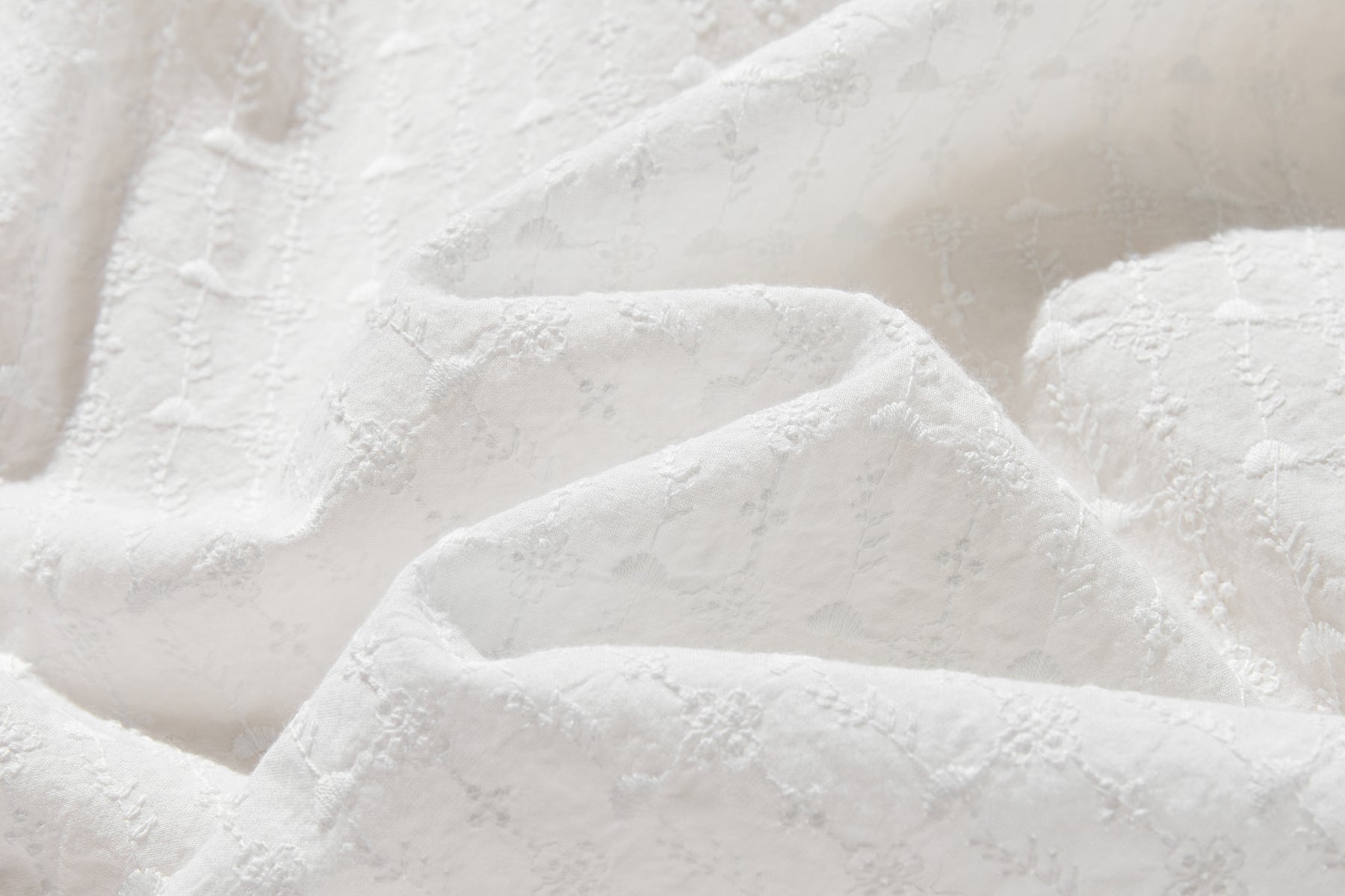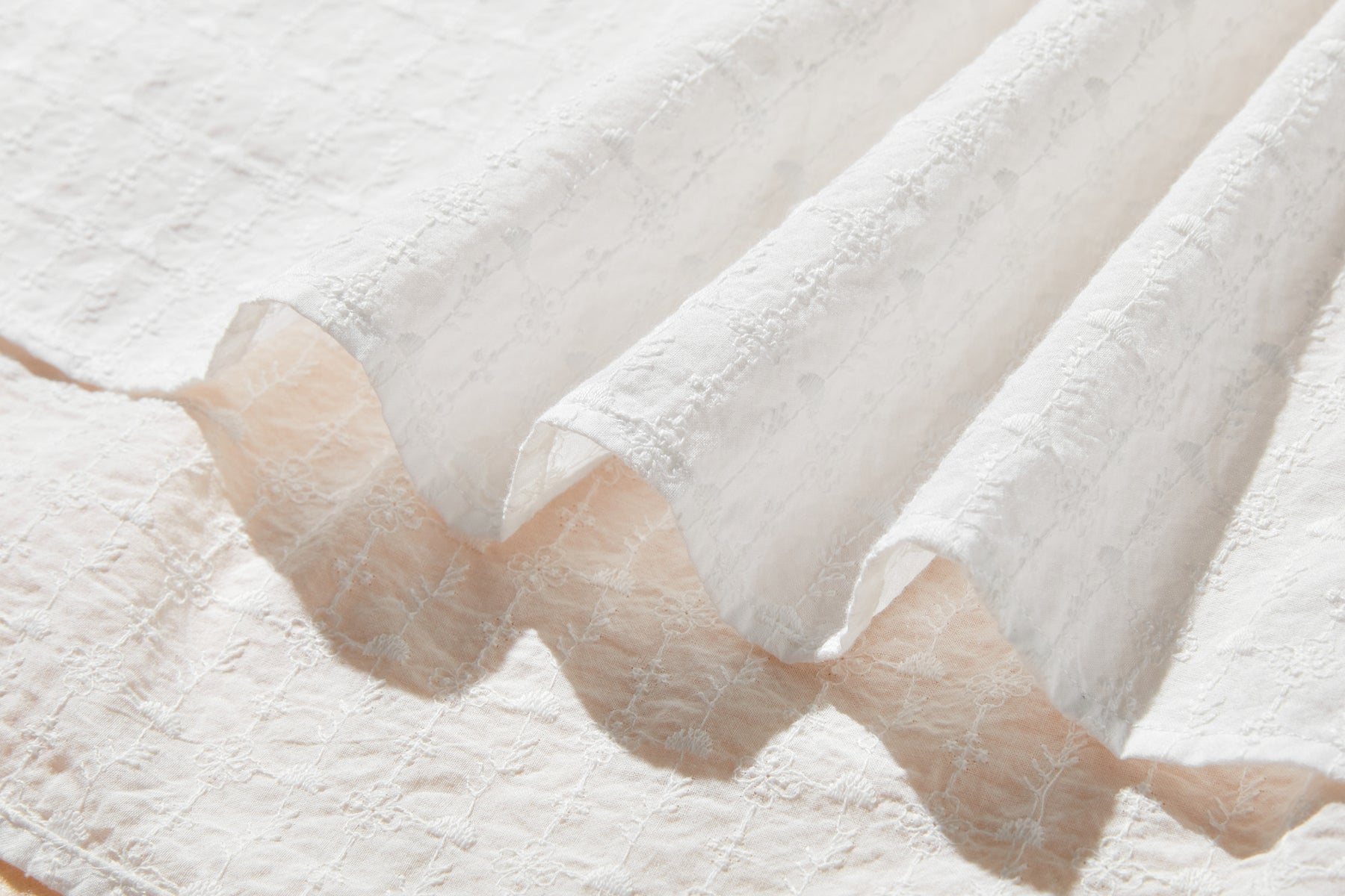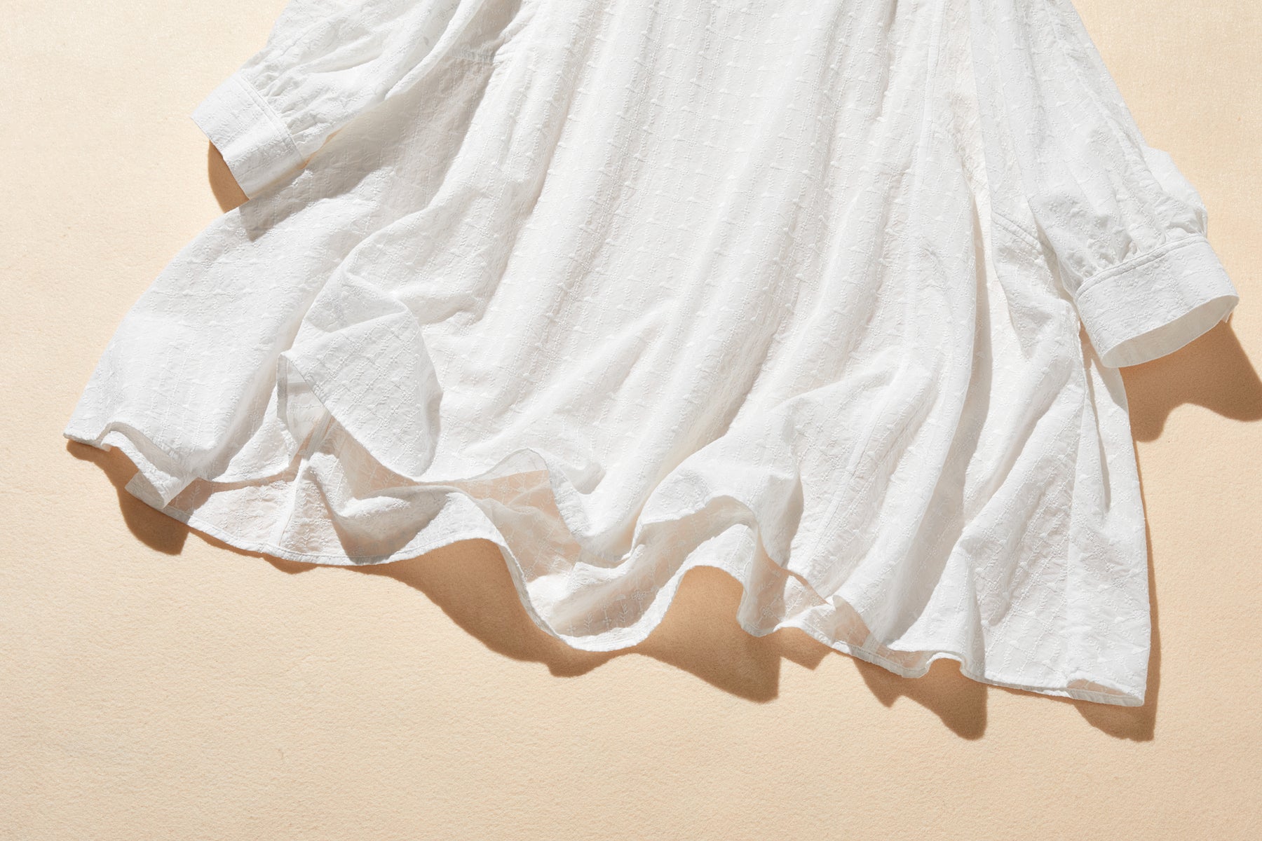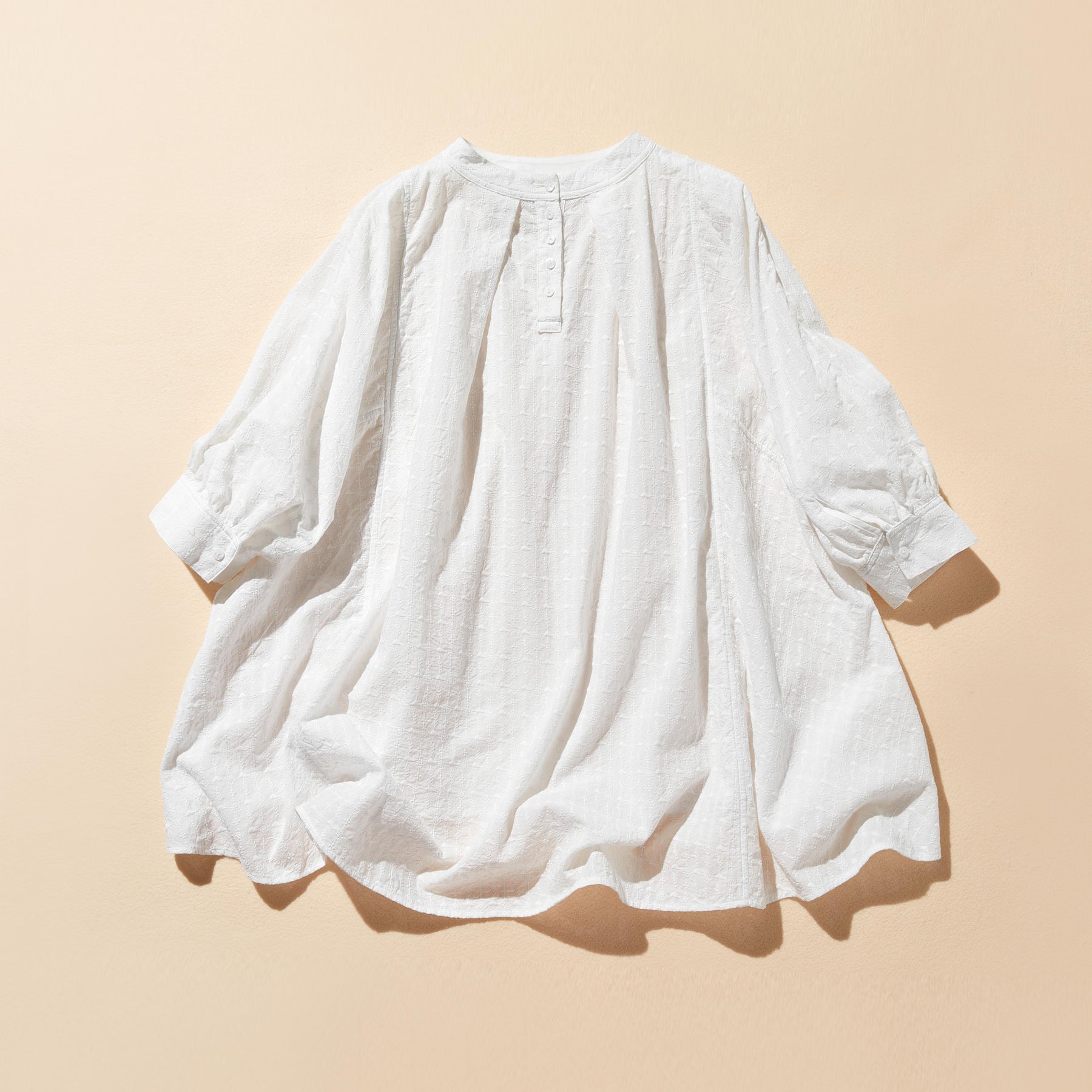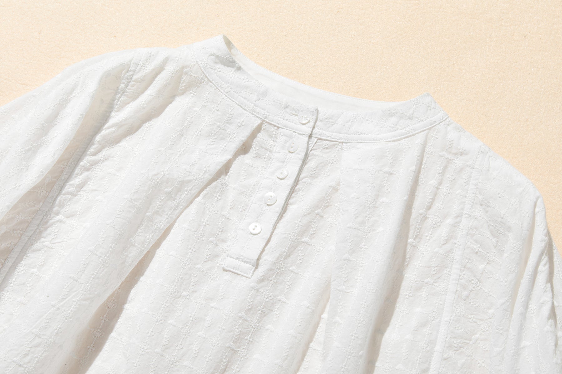ふんわり優美な刺繍が魅力のコットンプルオーバー 7分袖 コットン100% ホワイト 250806-1