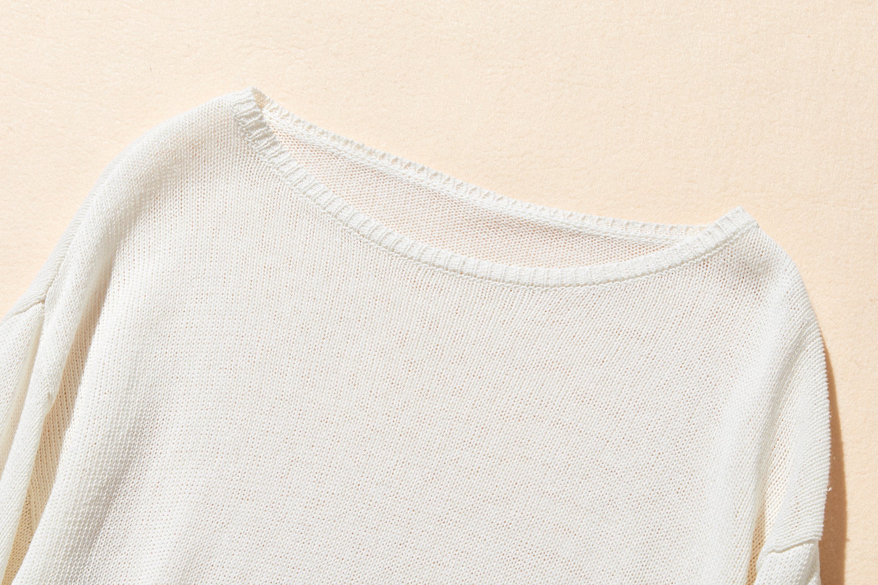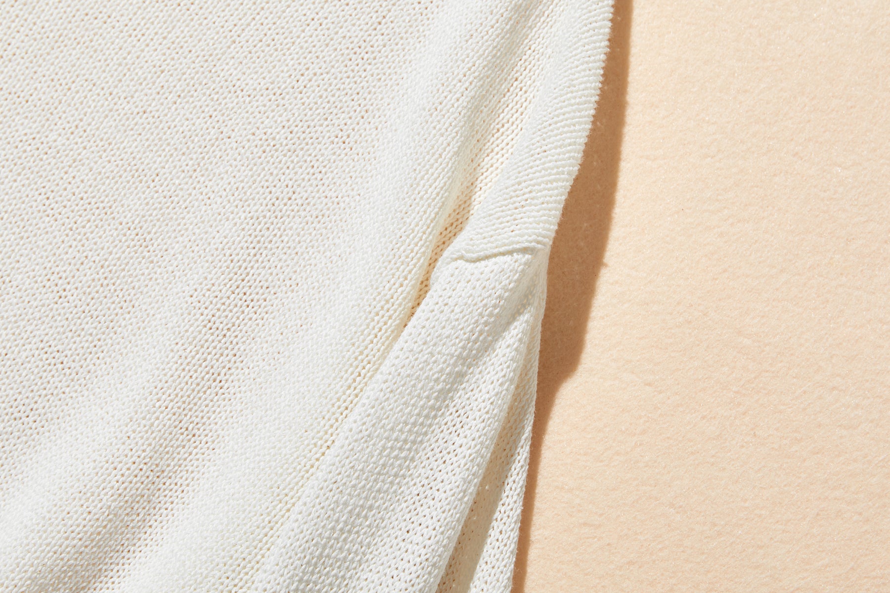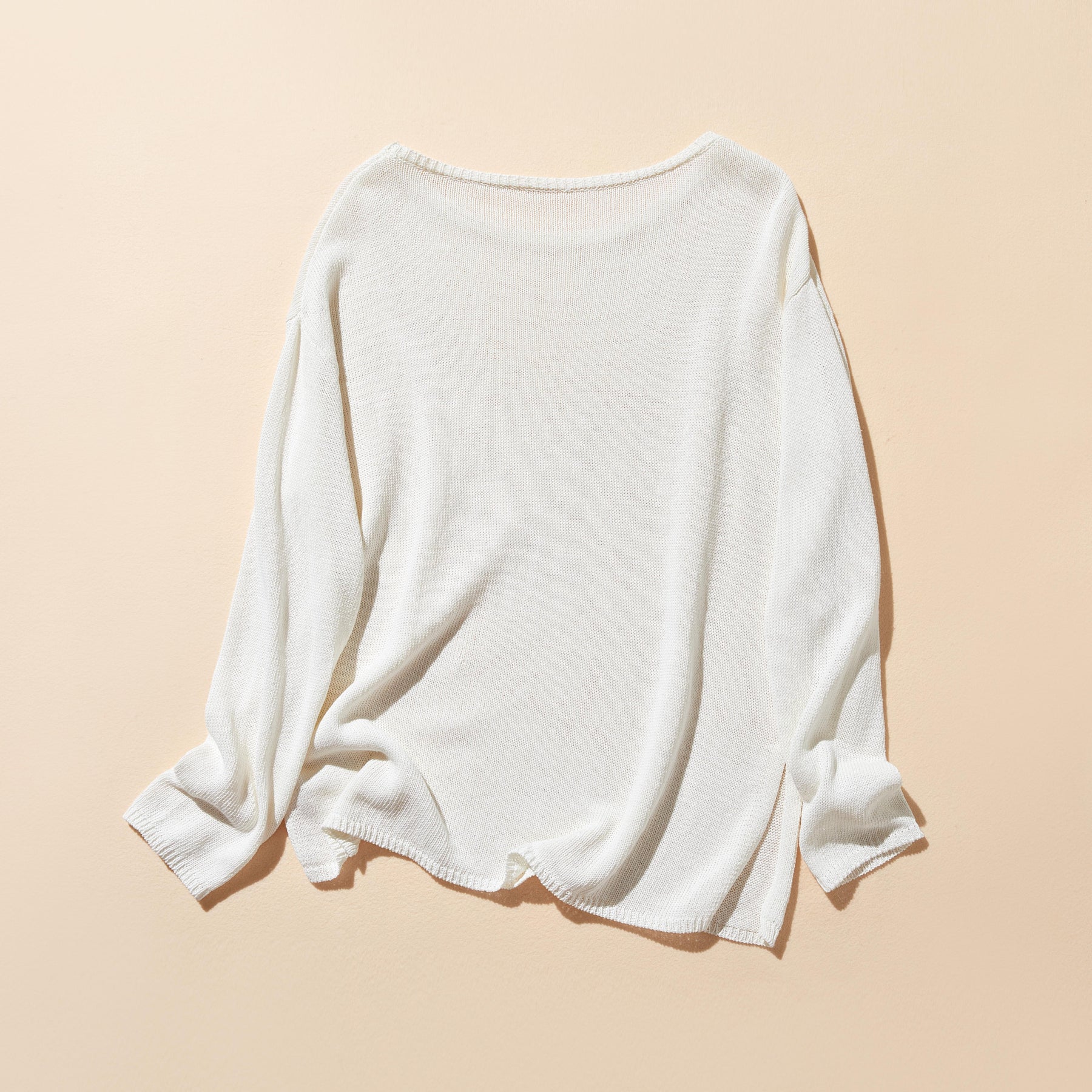 吸湿速乾! 大人カジュアルニットプルオーバー 和紙糸ニット オフィス対応 夏物ニット ホワイト250805-1