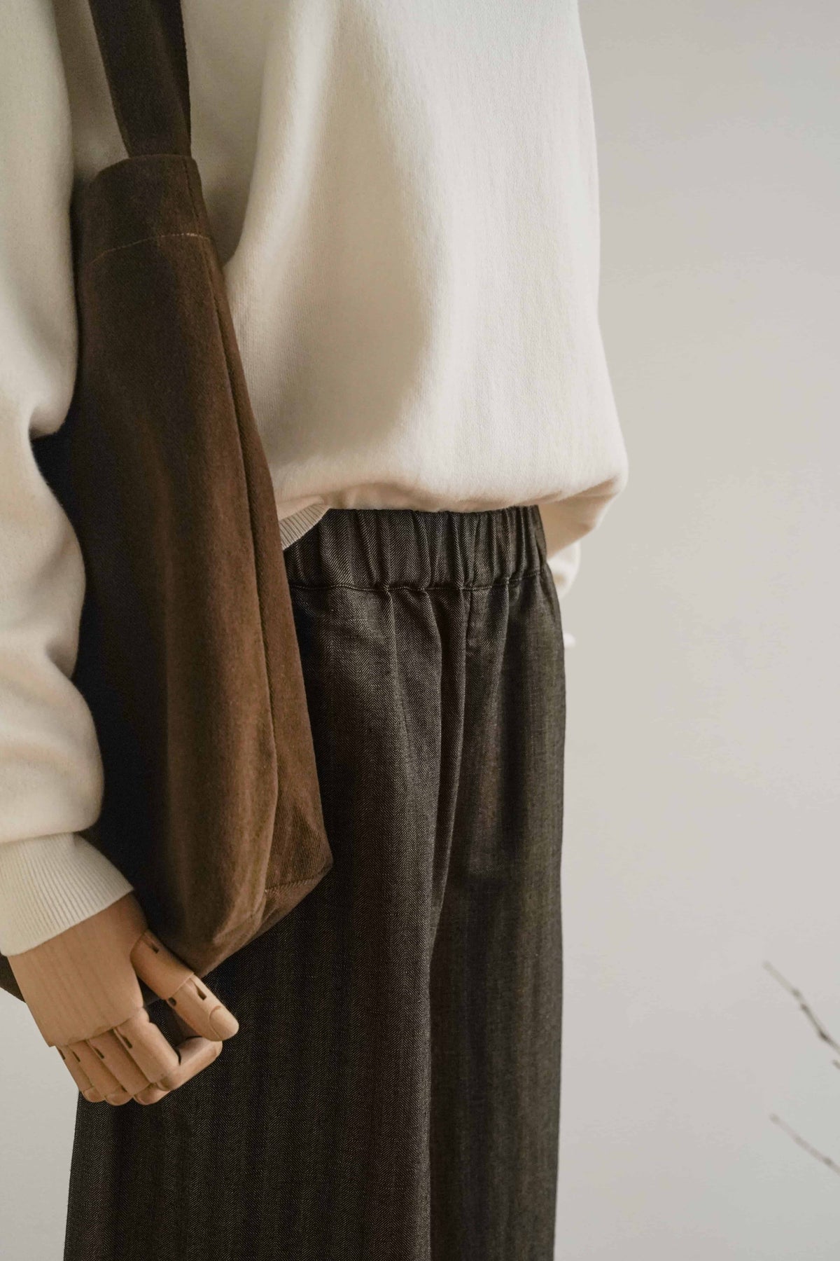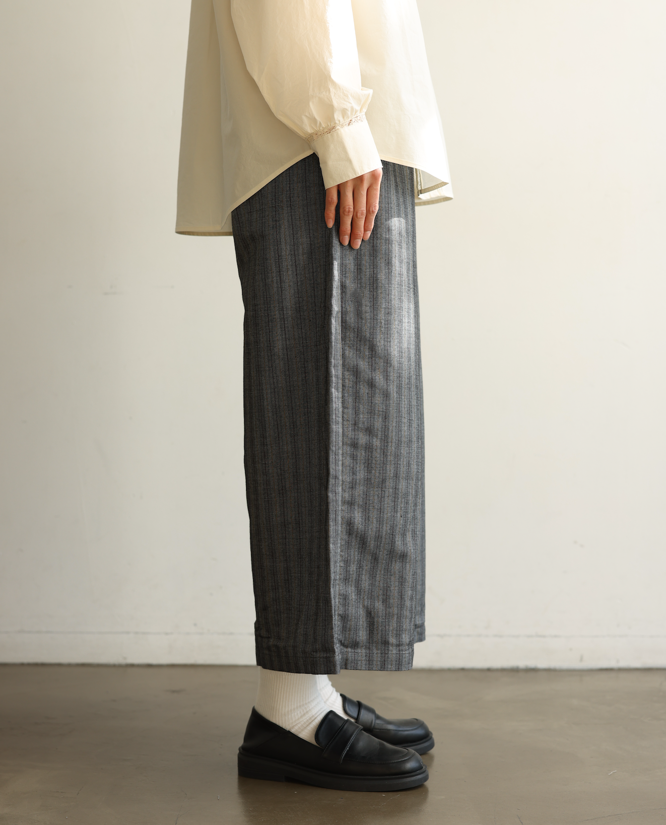 ★ニュアンスのある生地感が楽しめる、先染めストライプ生地を使用したワイドパンツ。