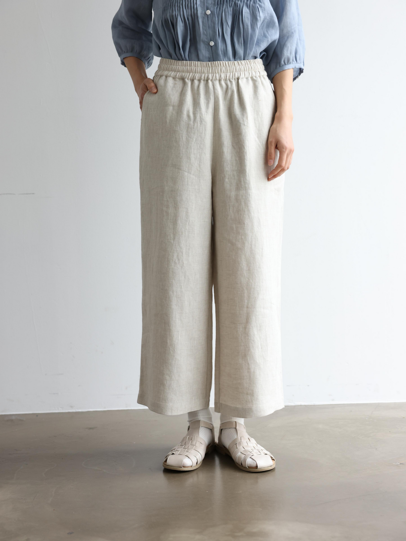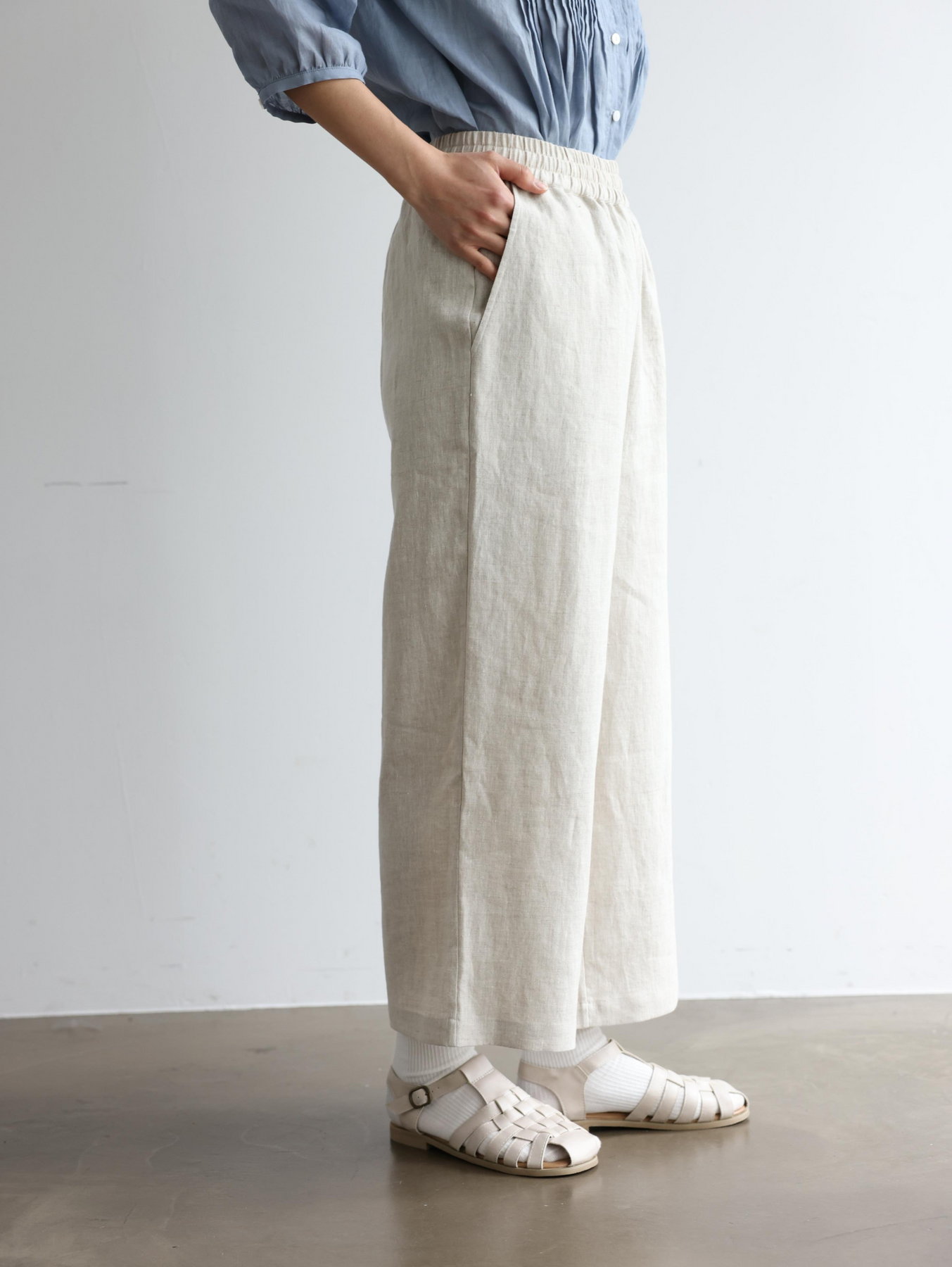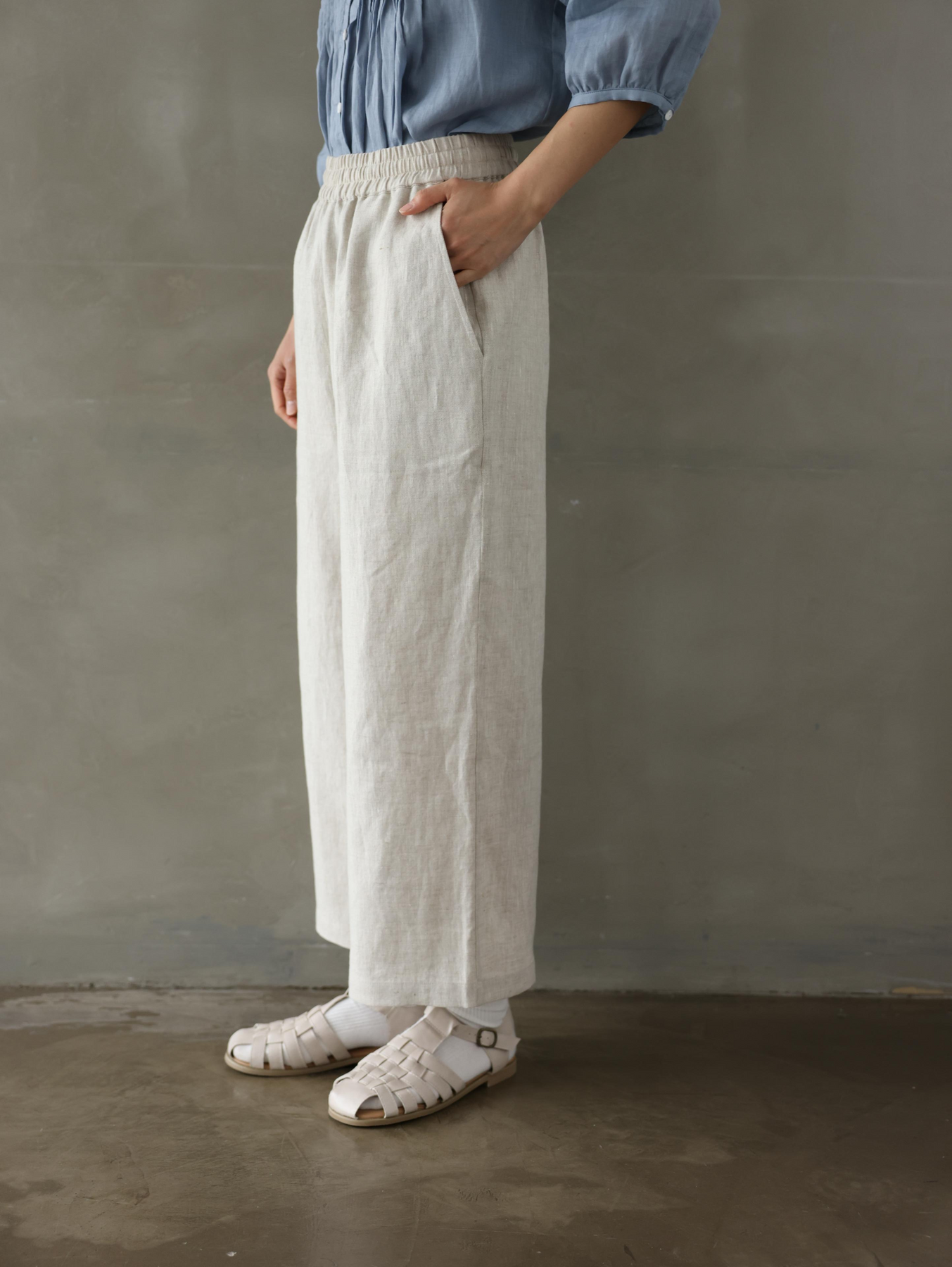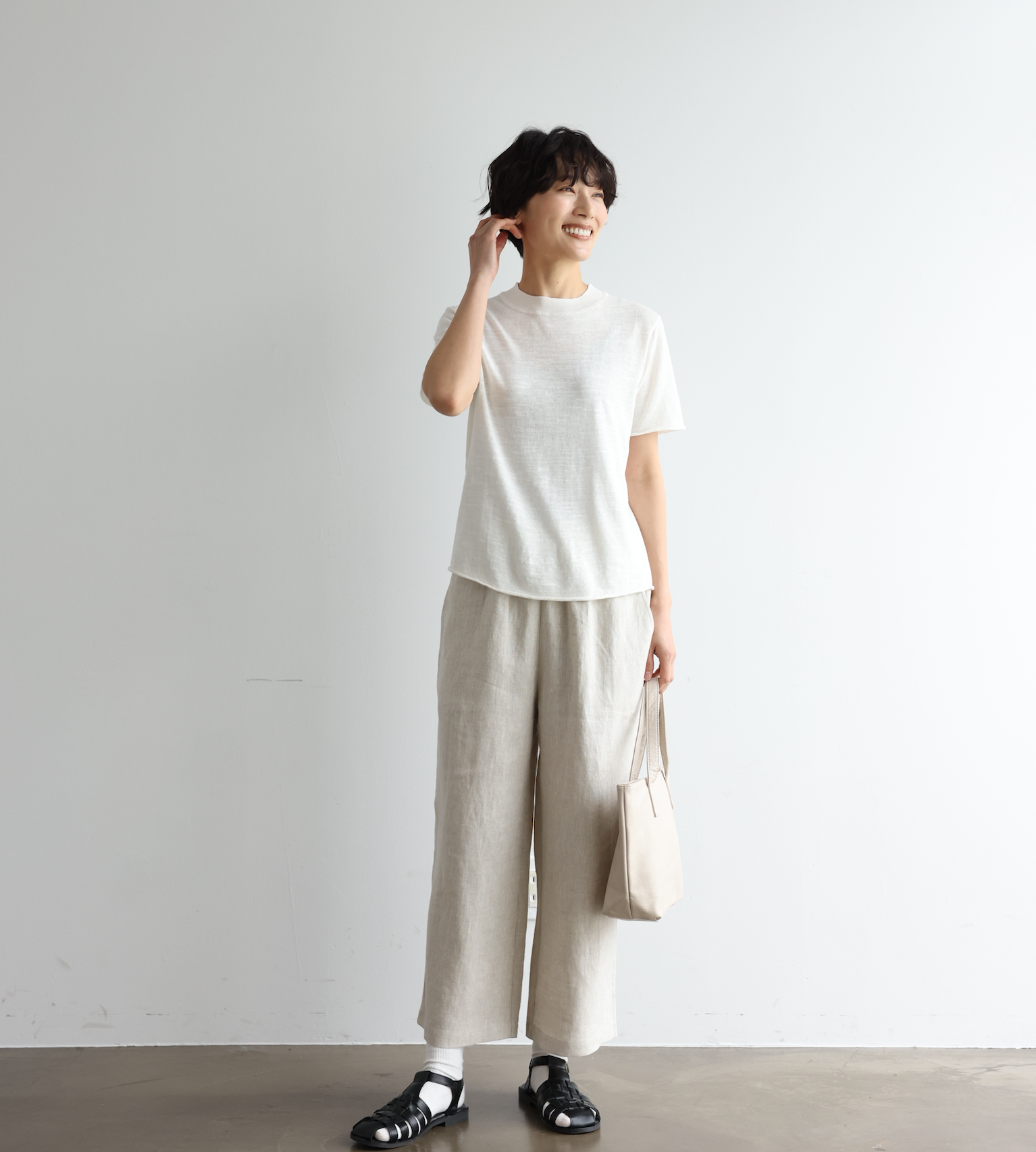大人のゆとりある着心地 ナチュラル風合いのワイドパンツ  生成色  250402-1