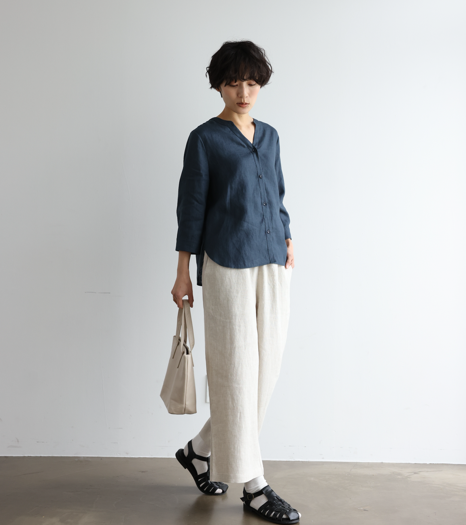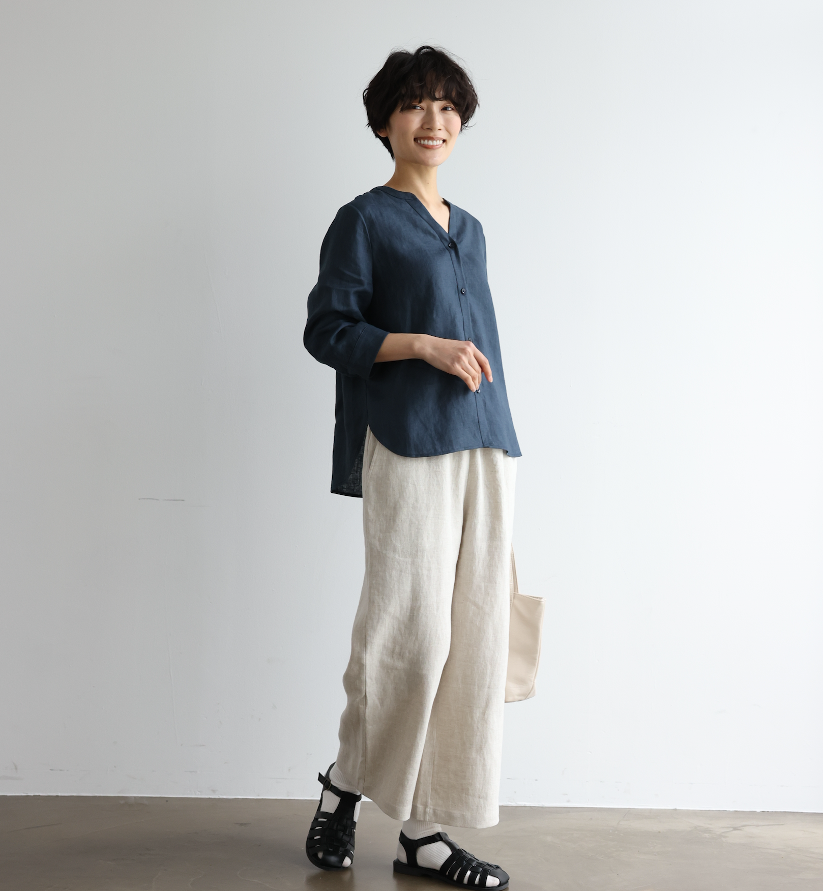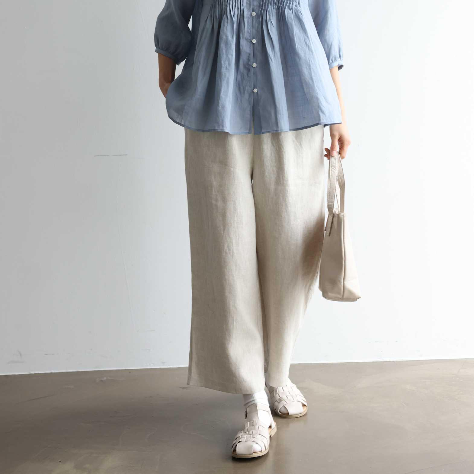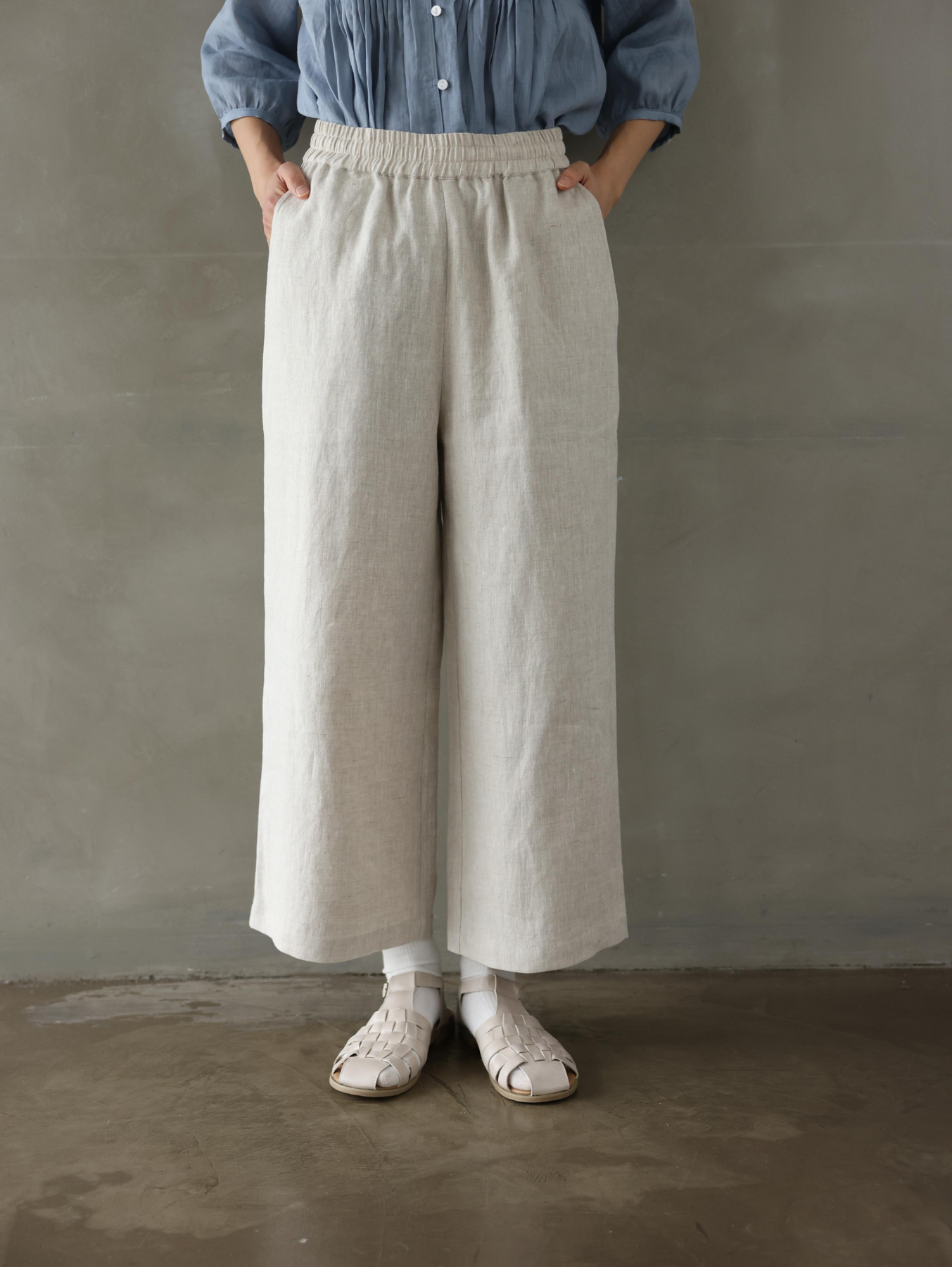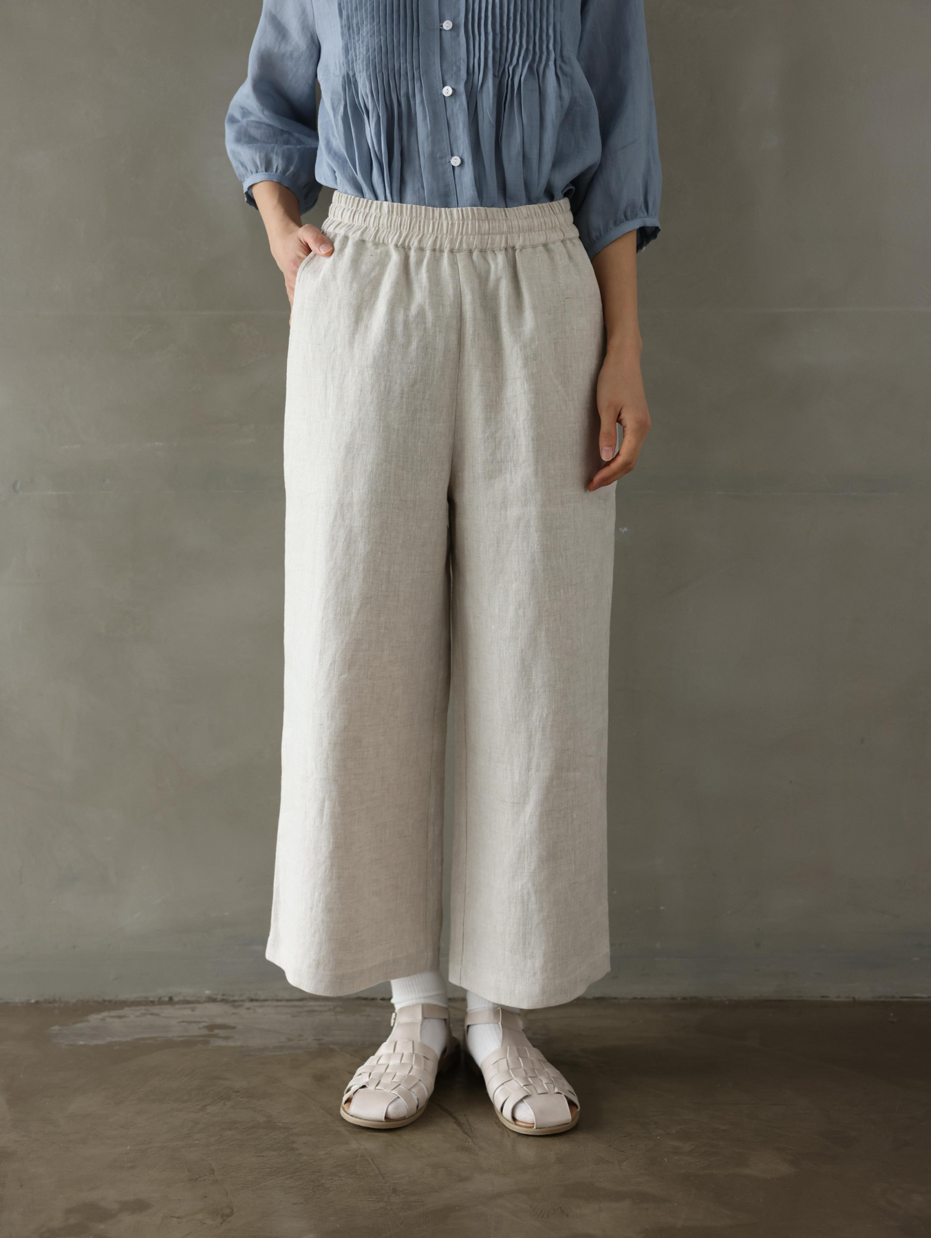 大人のゆとりある着心地 ナチュラル風合いのワイドパンツ  生成色  250402-1