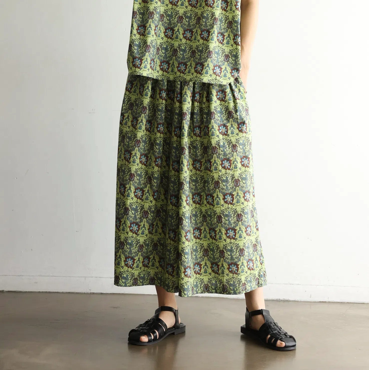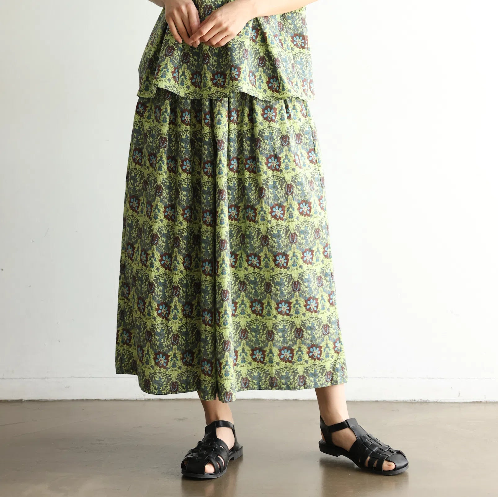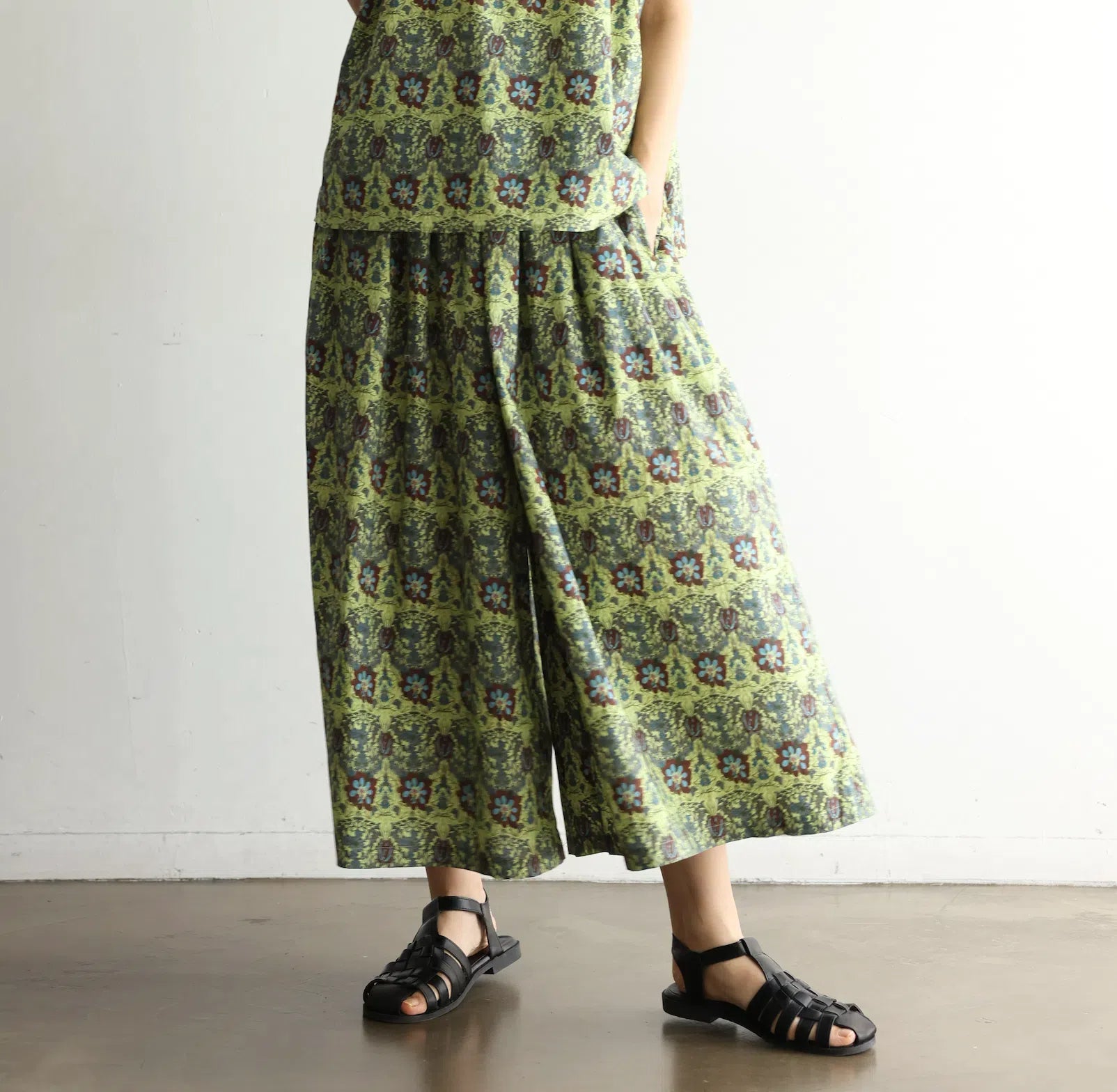 存在感放つ、総柄ワイドパンツ スカート風パンツ コットン100% 240710-1