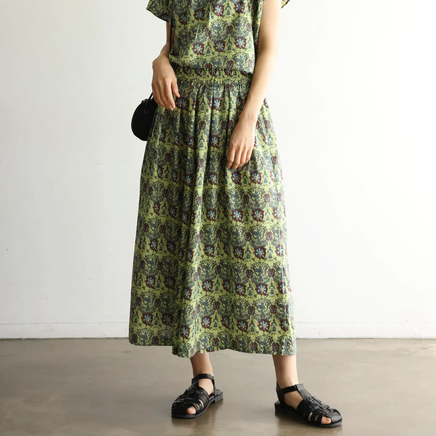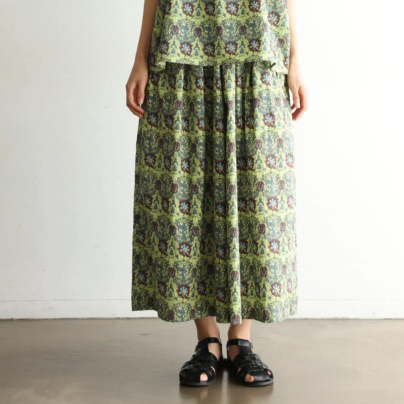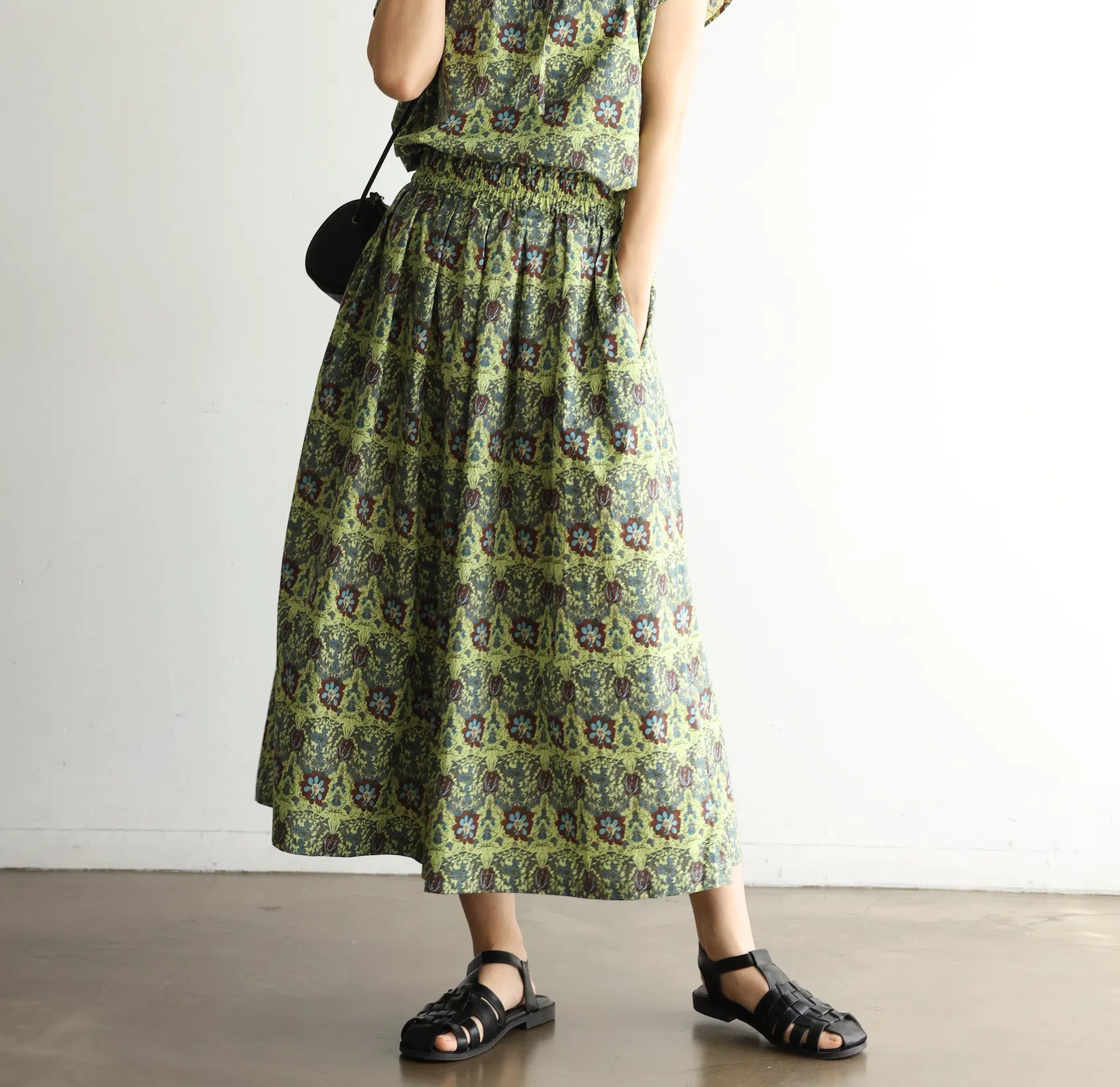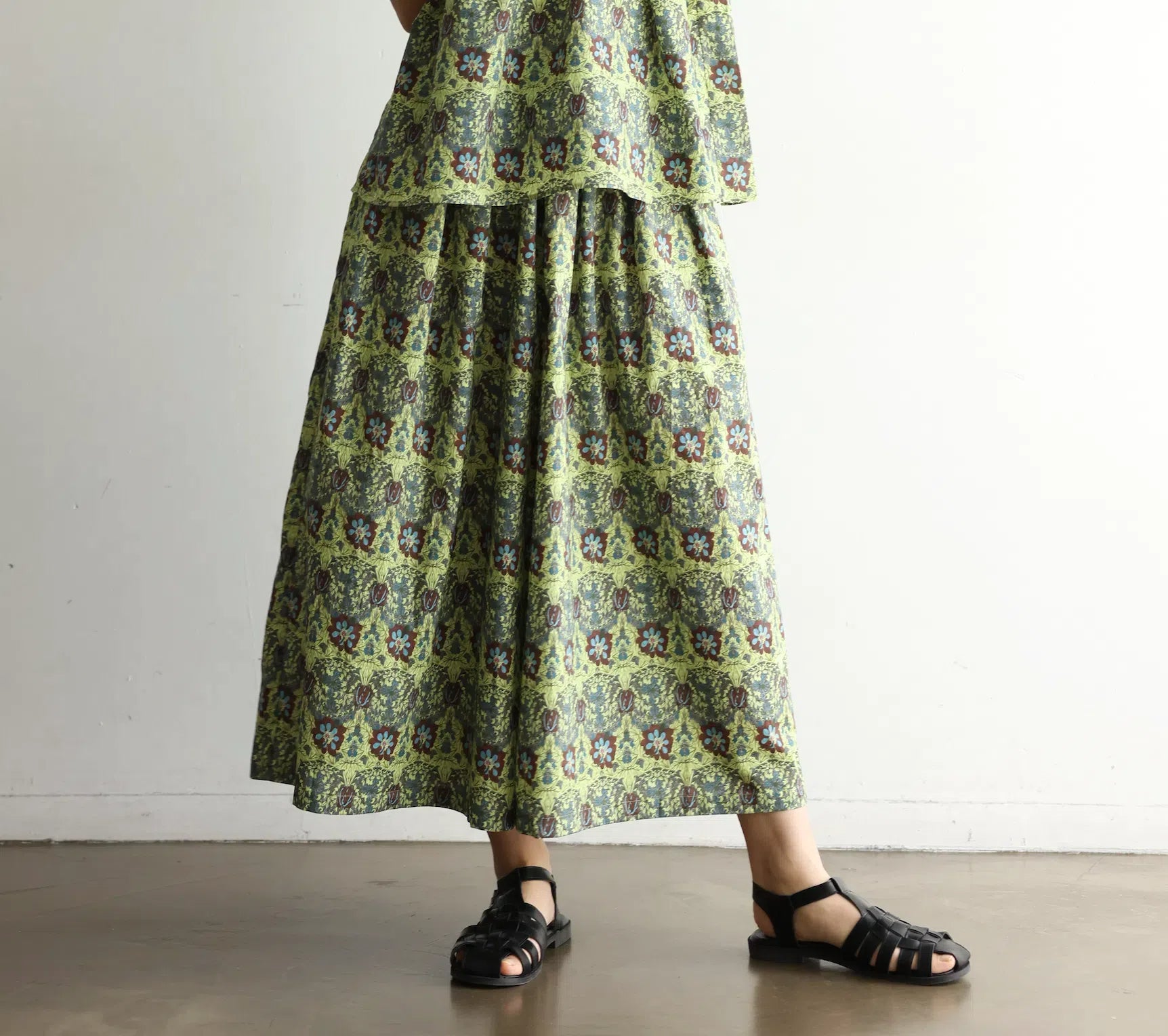 存在感放つ、総柄ワイドパンツ スカート風パンツ コットン100% 240710-1