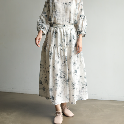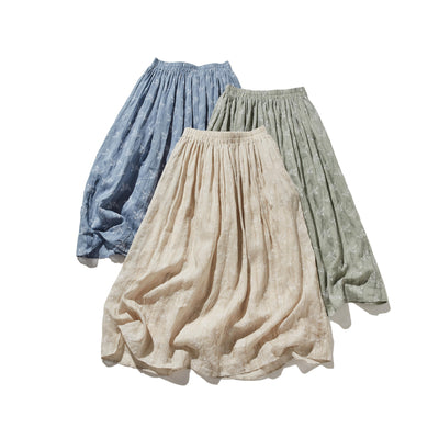 ナチュラルな大人可愛いを叶える 麻100% フラワーフレアスカート ギャザースカート 250706