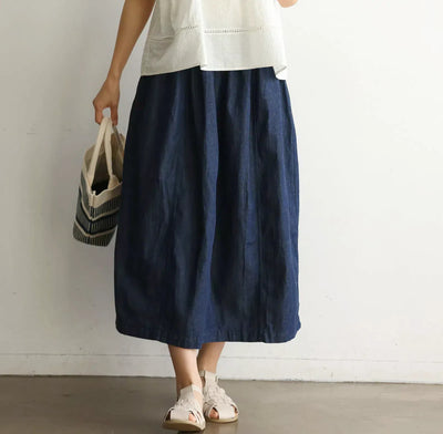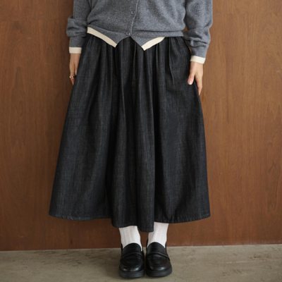 オールシーズン、お洒落な味方 コクーンスカート デニムスカート ロングスカート 240908-1