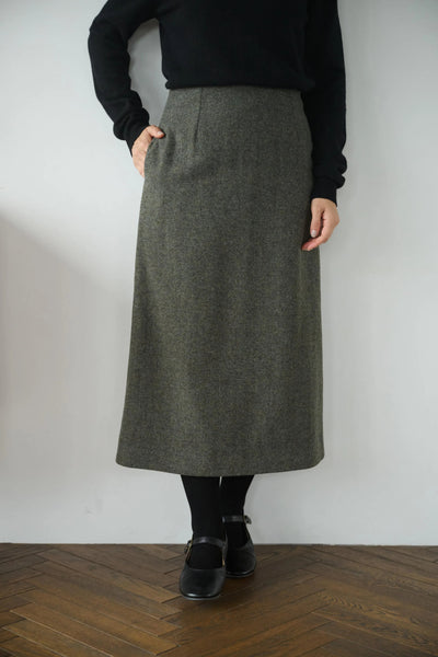 モードな雰囲気を高める ウール混 ロングスカート 231107-2