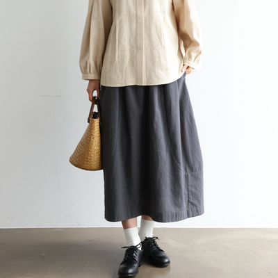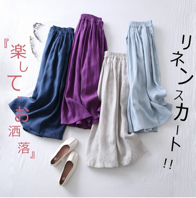 こだわりの着回しやすさと着やすさ リネン100% タックギャザースカート 四色登場 210401