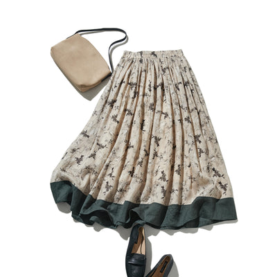 期間限定10%OFF★優しく揺れる、ゆるふわギャザースカート バラー柄 麻のロングスカート 裏地付き 230610-1