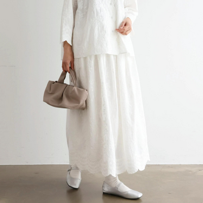 特別感のある ふんわり広がるフラワー刺繍ロングスカート 裏地付き ギャザースカート 250603