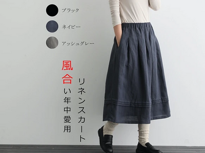 風合い年中愛用リネンスカート ロングスカート タック入りスカート 三色201206