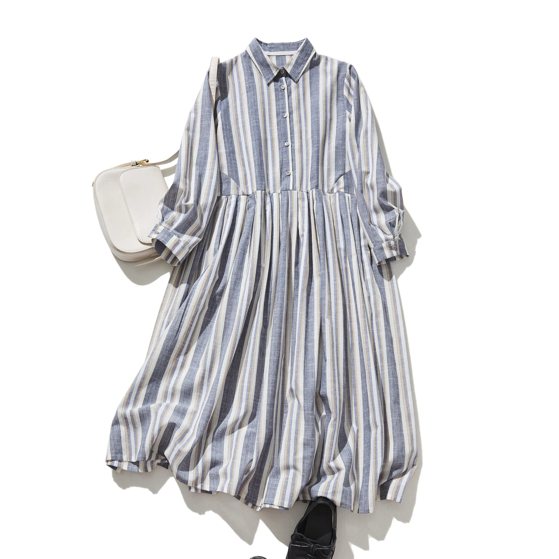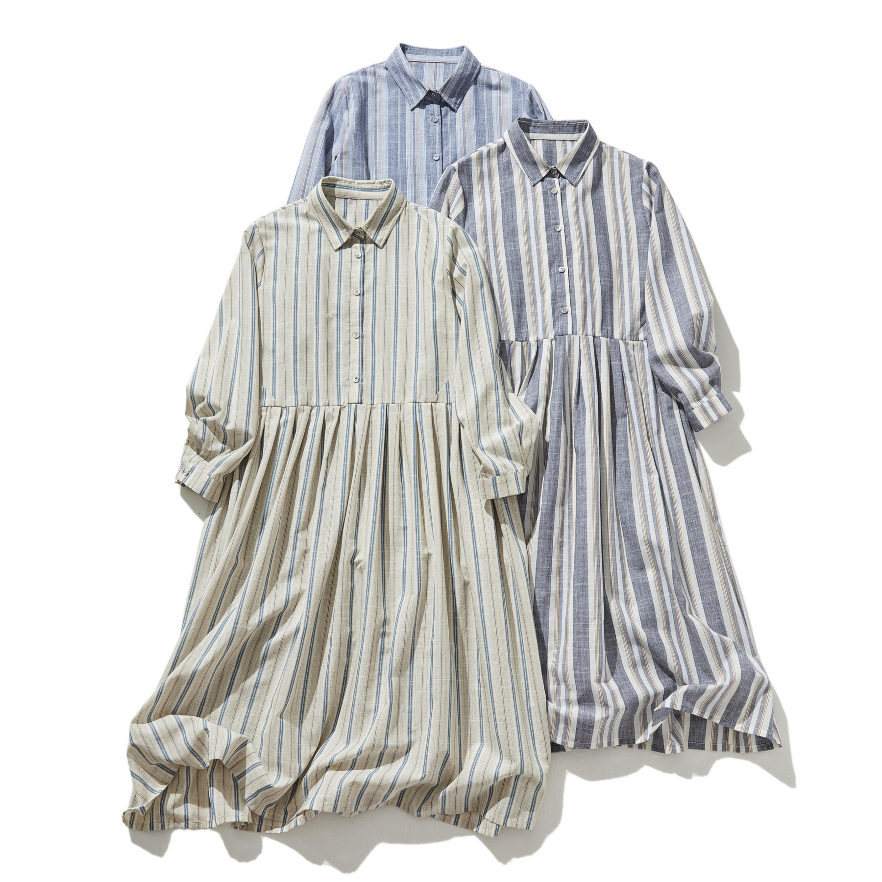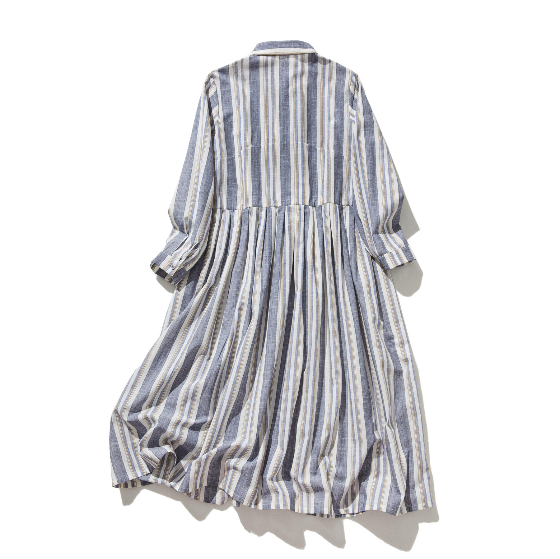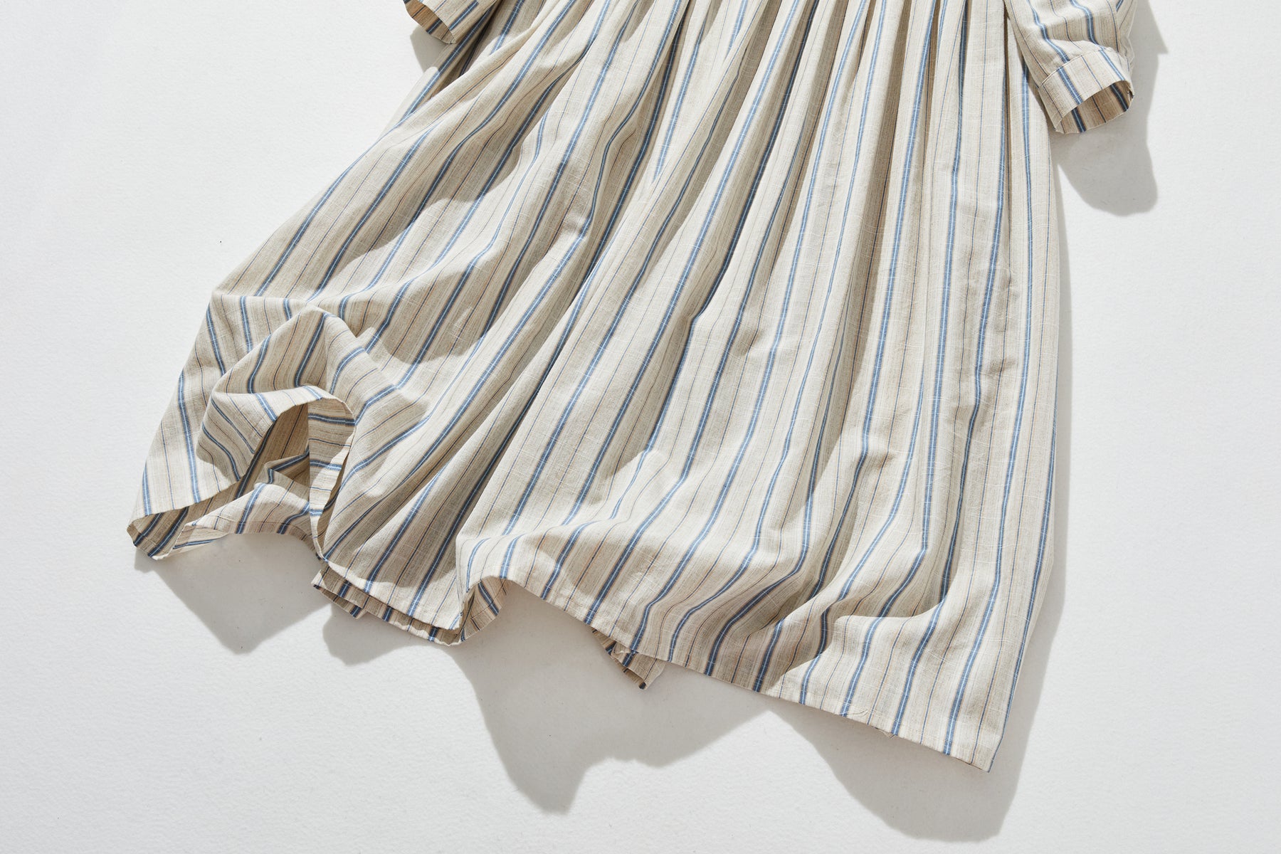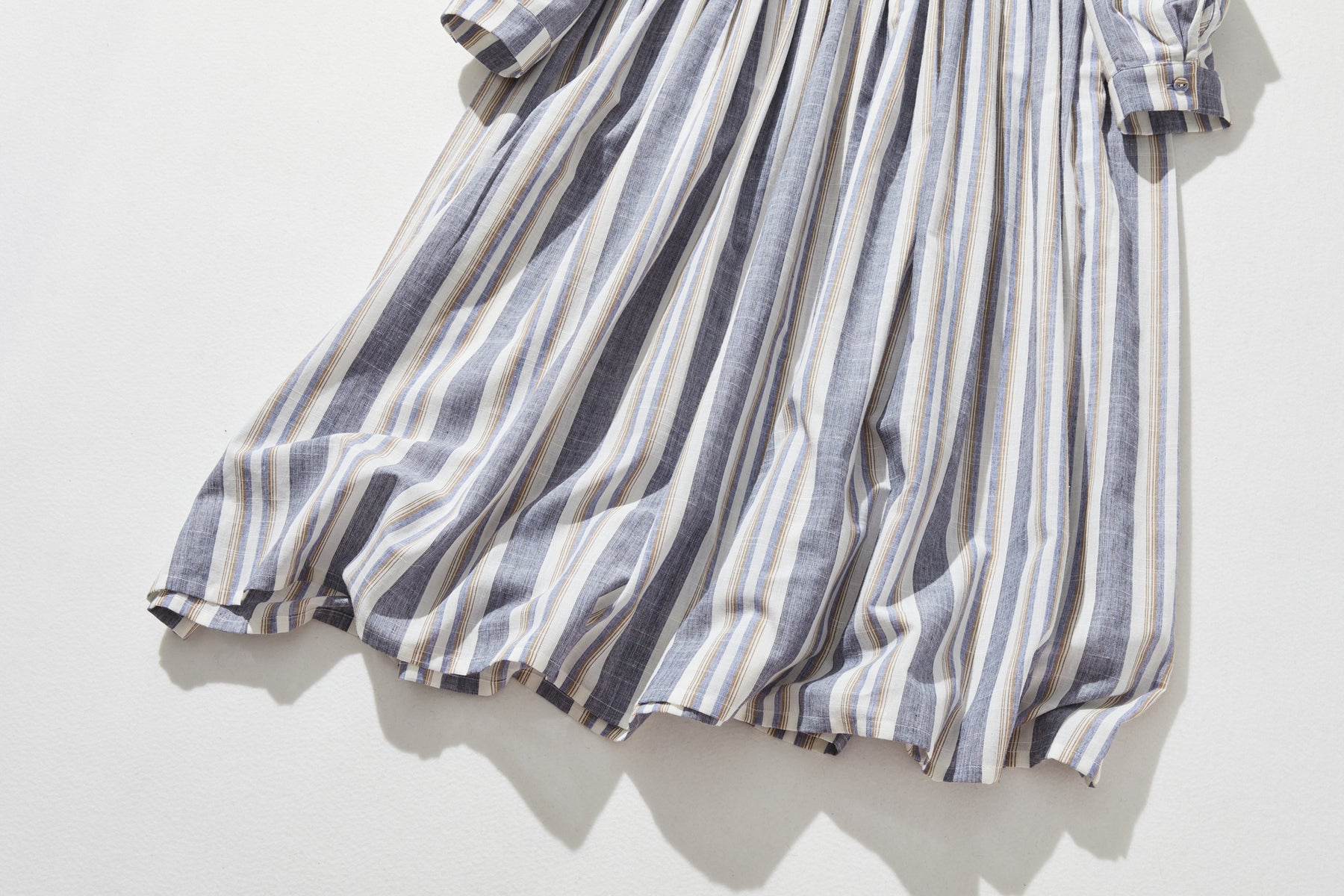 ナチュラル風合いのストライプワンピース コットン100%  241008
