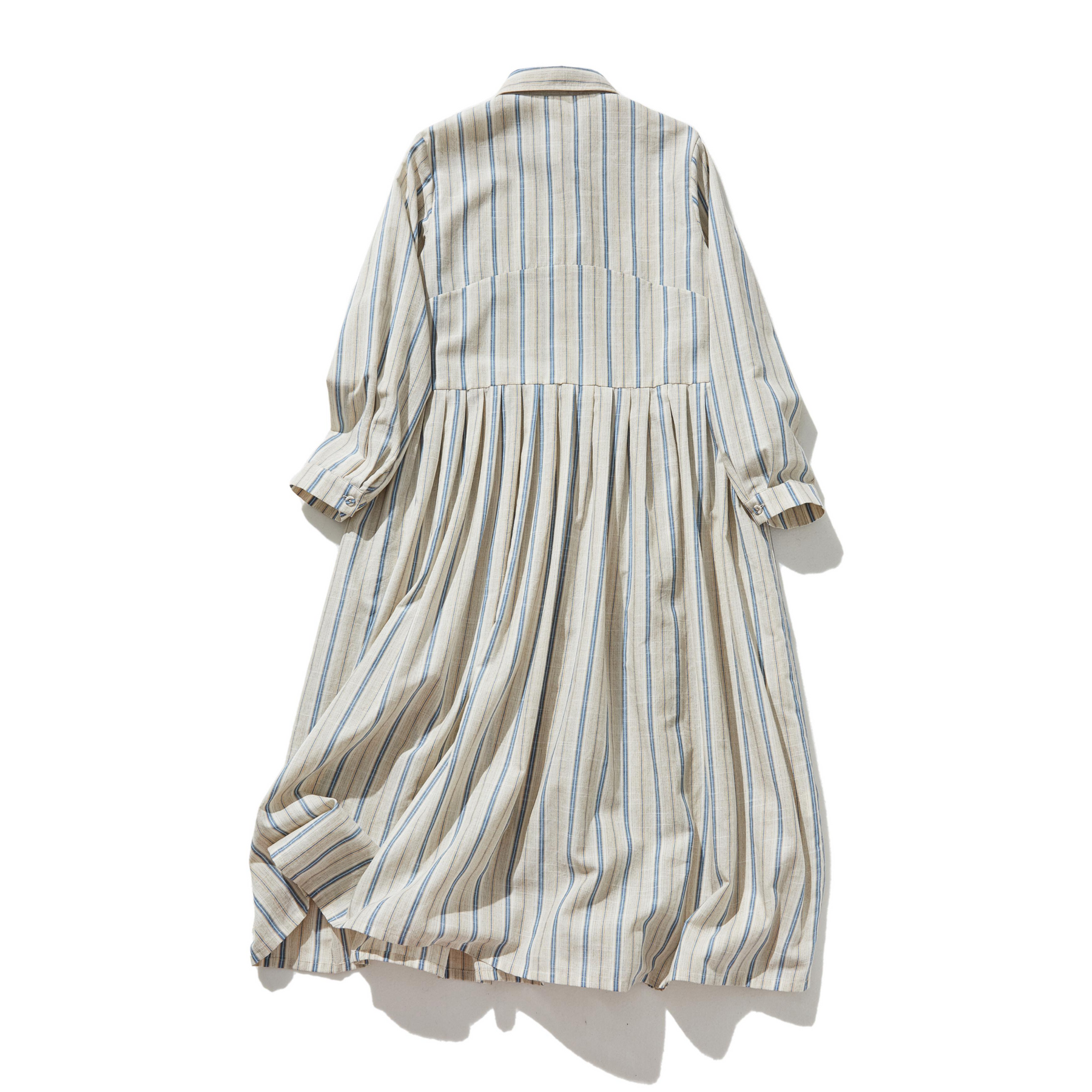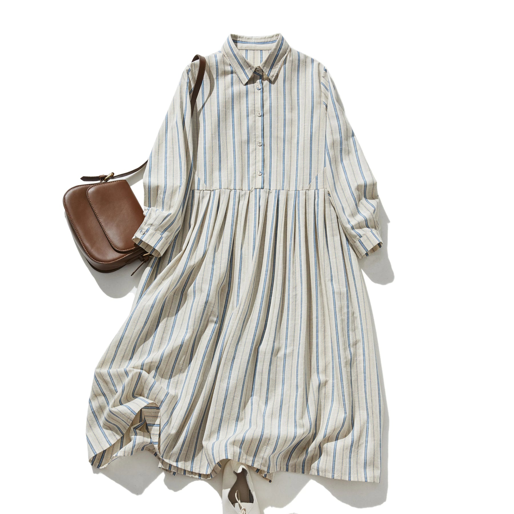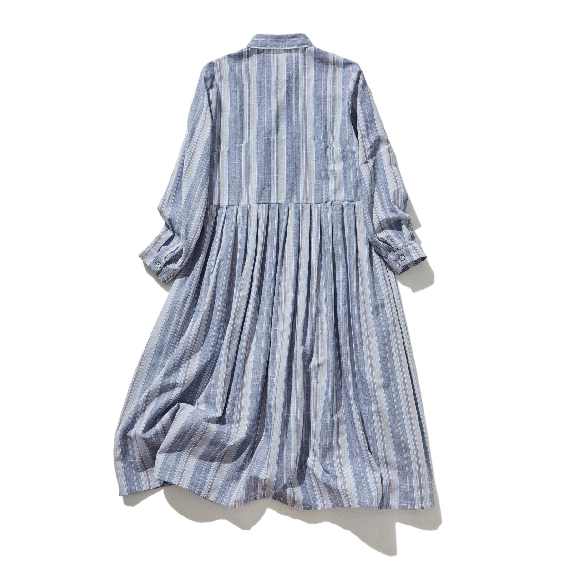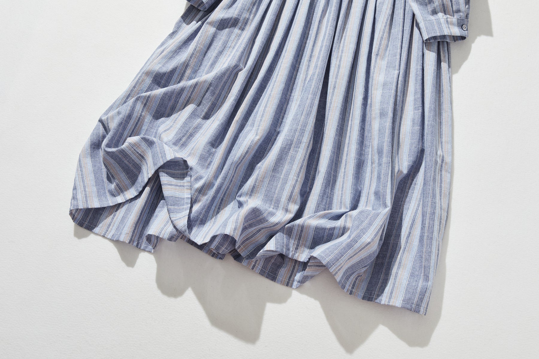 ナチュラル風合いのストライプワンピース コットン100%  241008