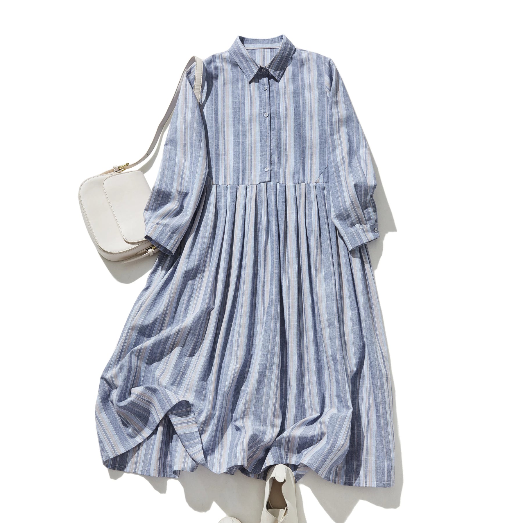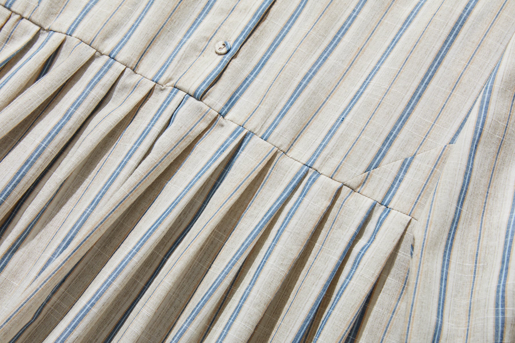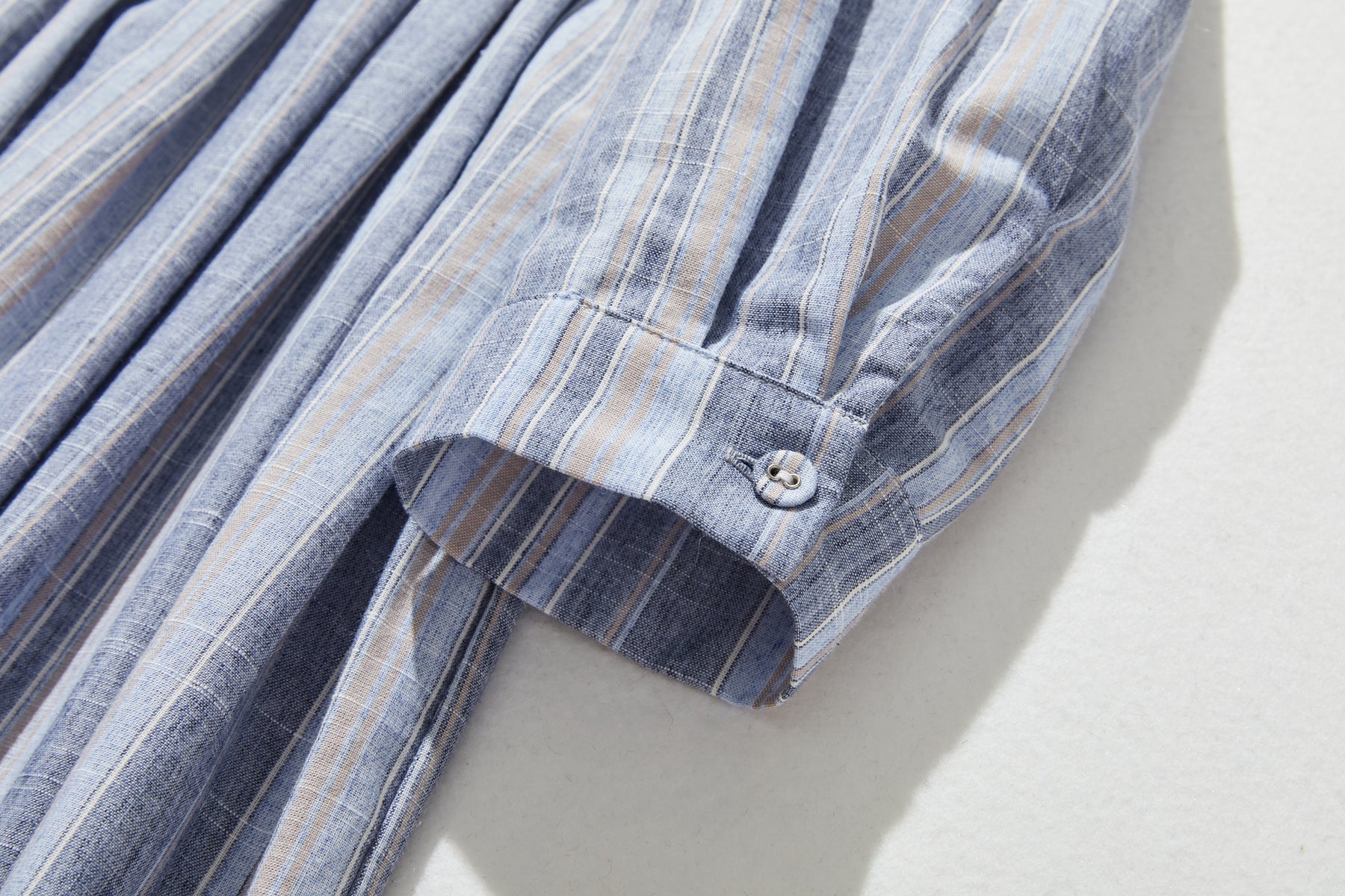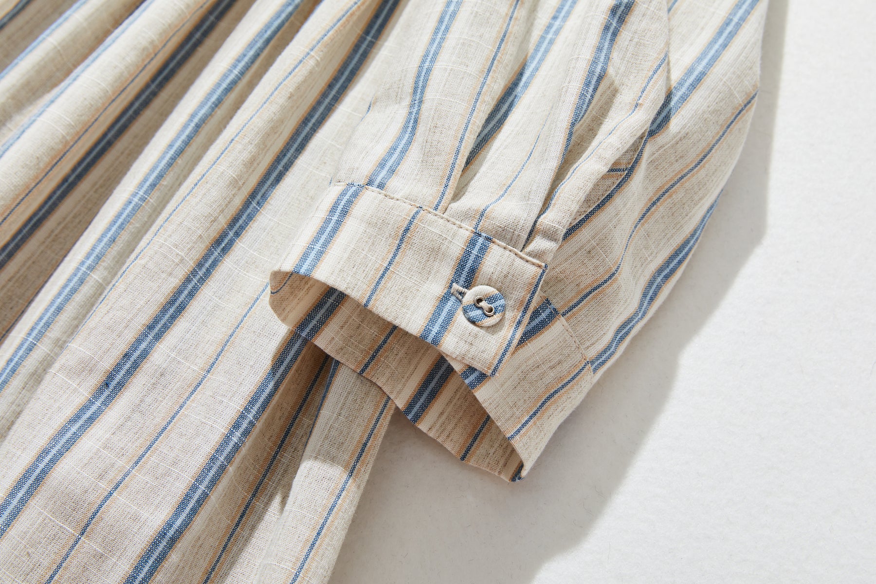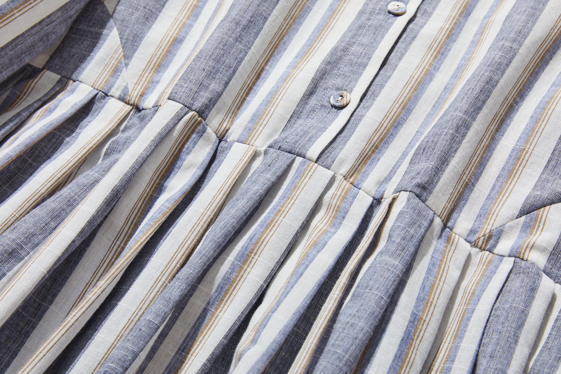 ナチュラル風合いのストライプワンピース コットン100%  241008