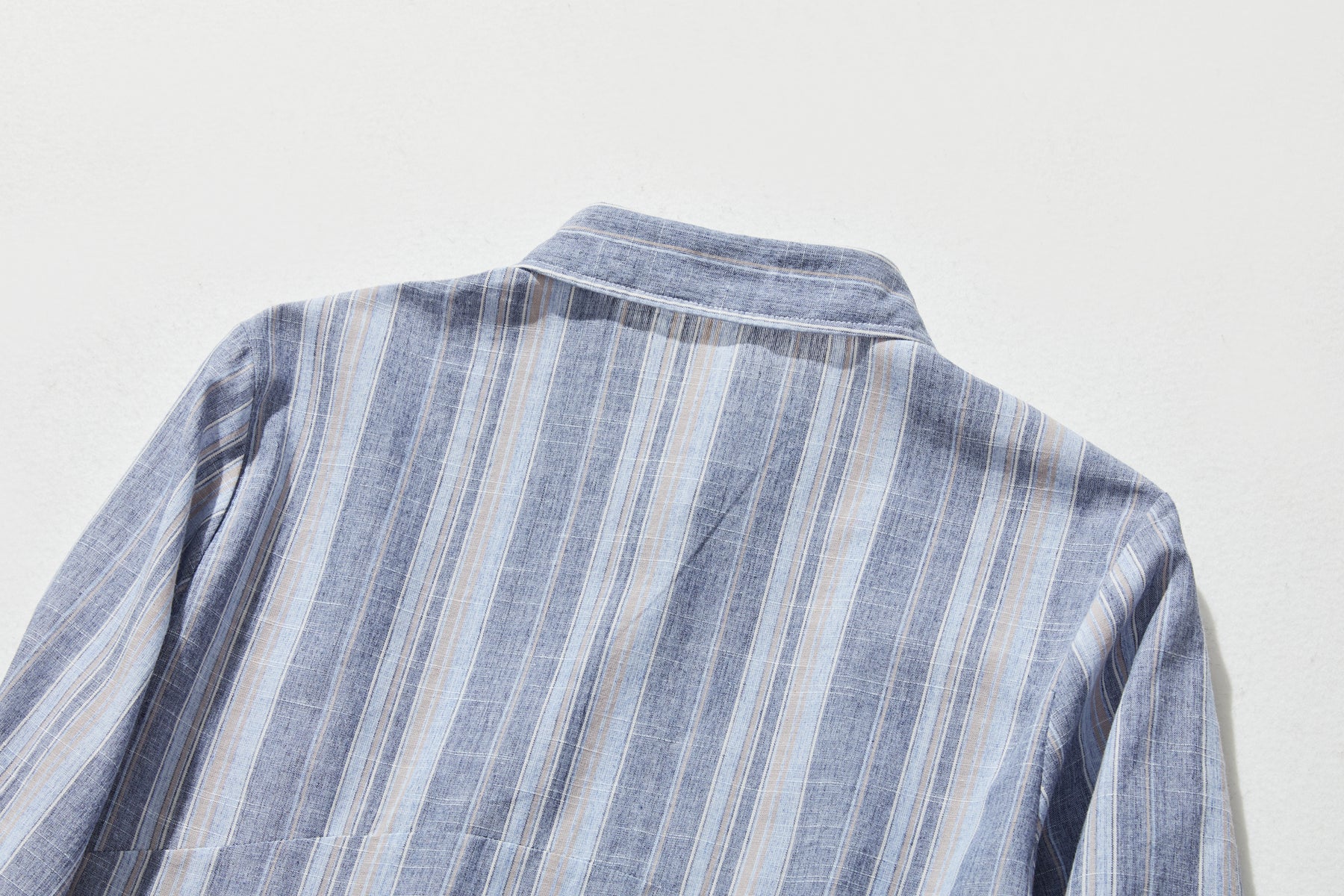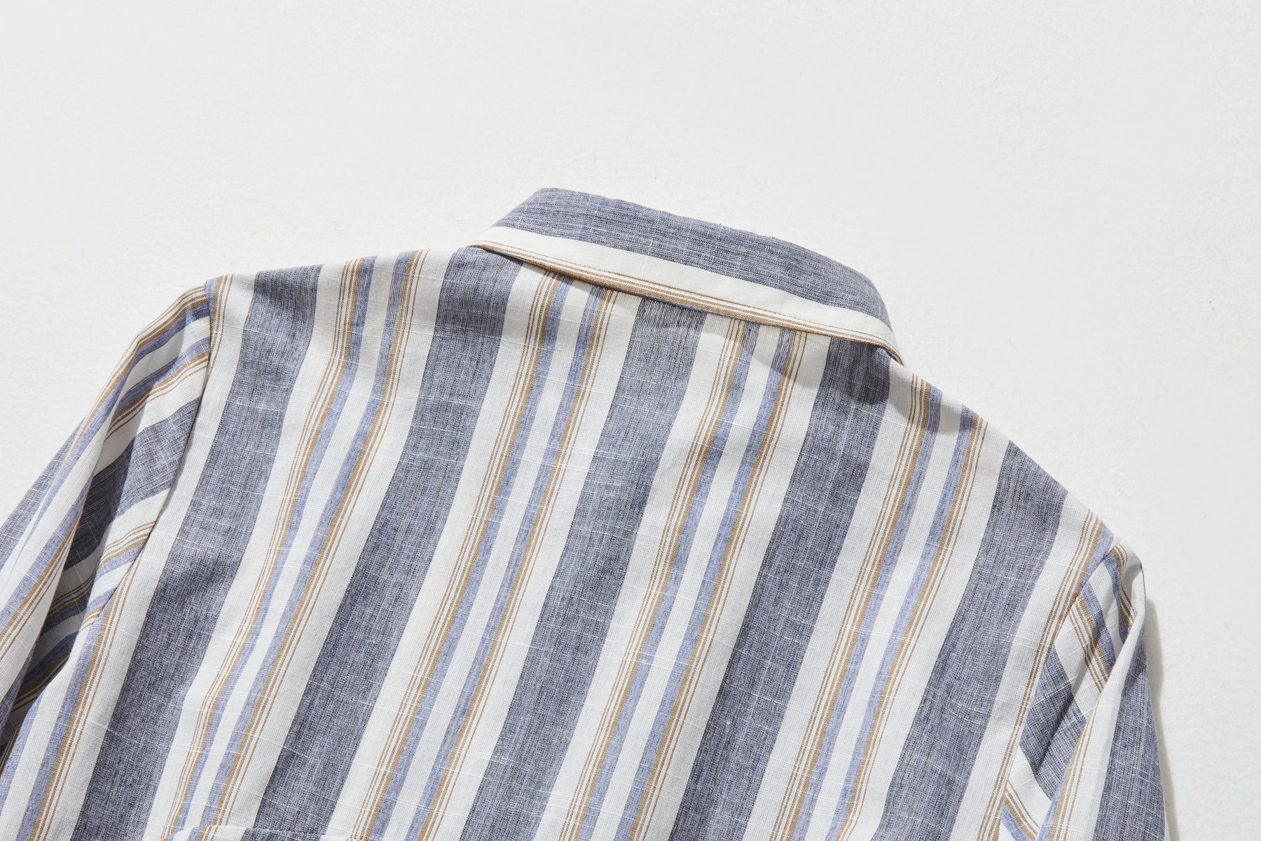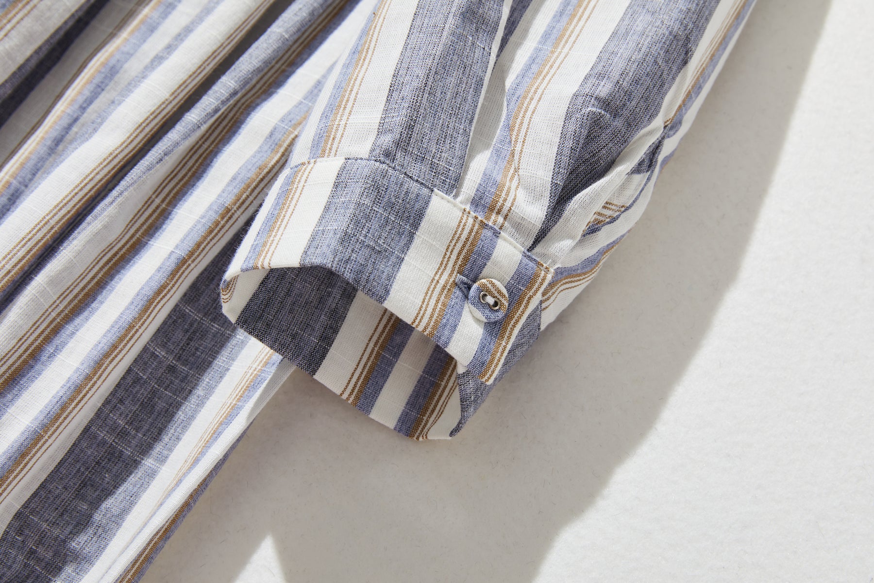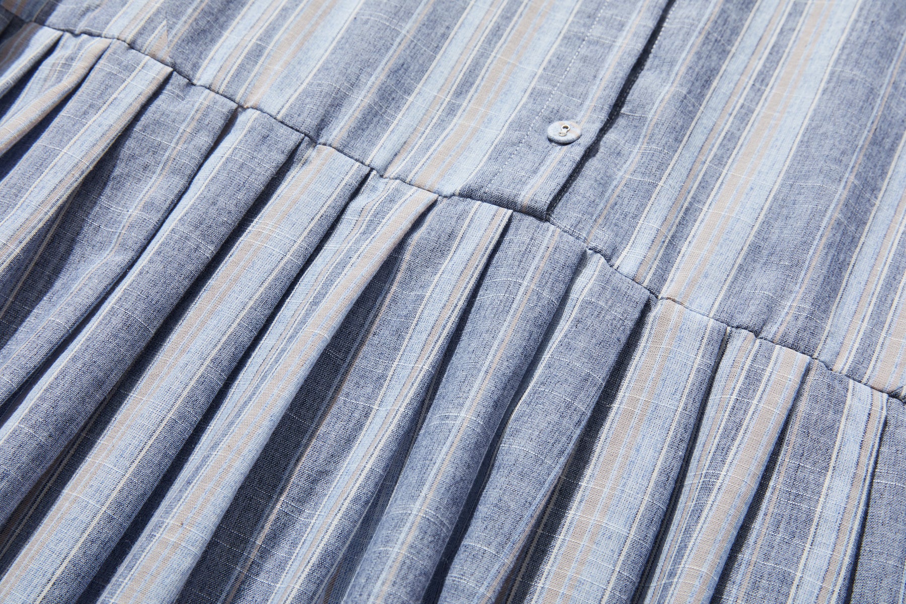 ナチュラル風合いのストライプワンピース コットン100%  241008