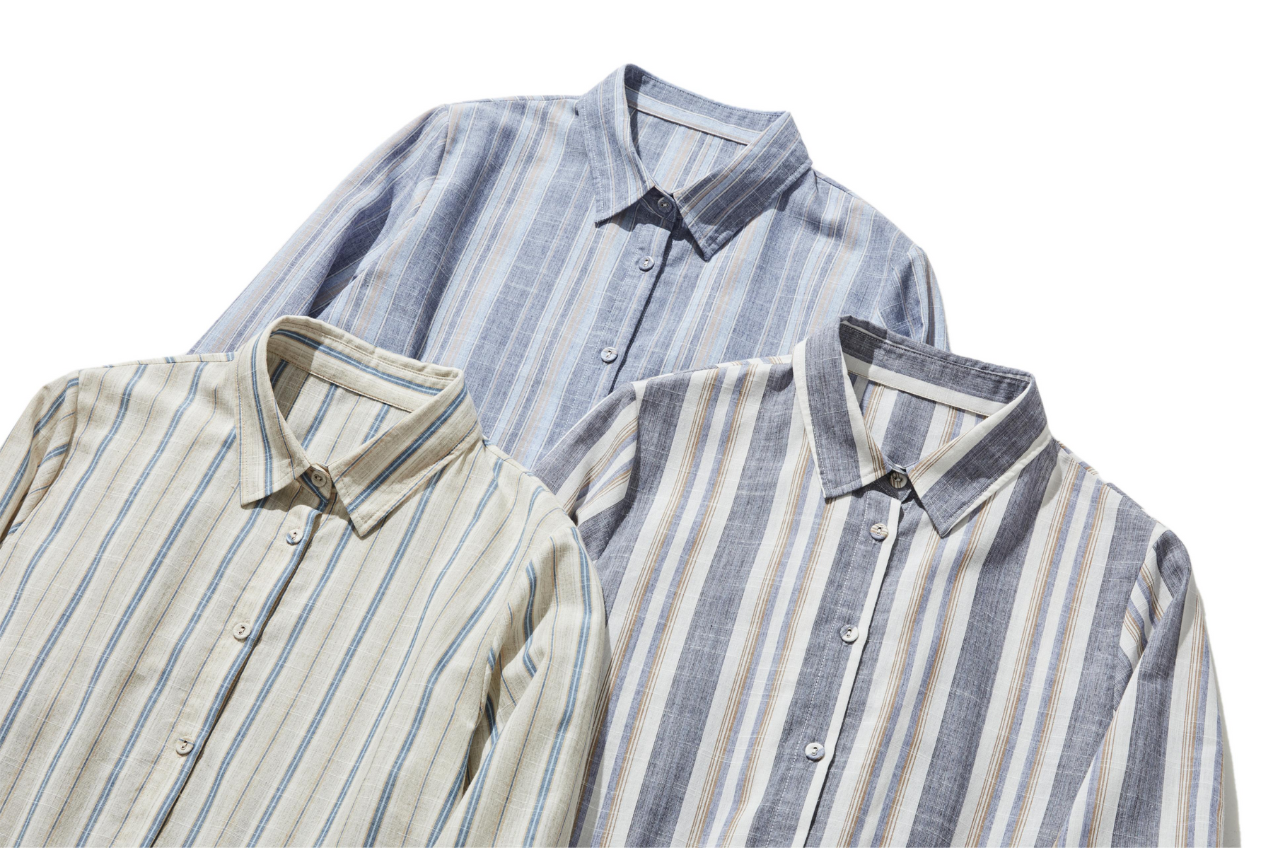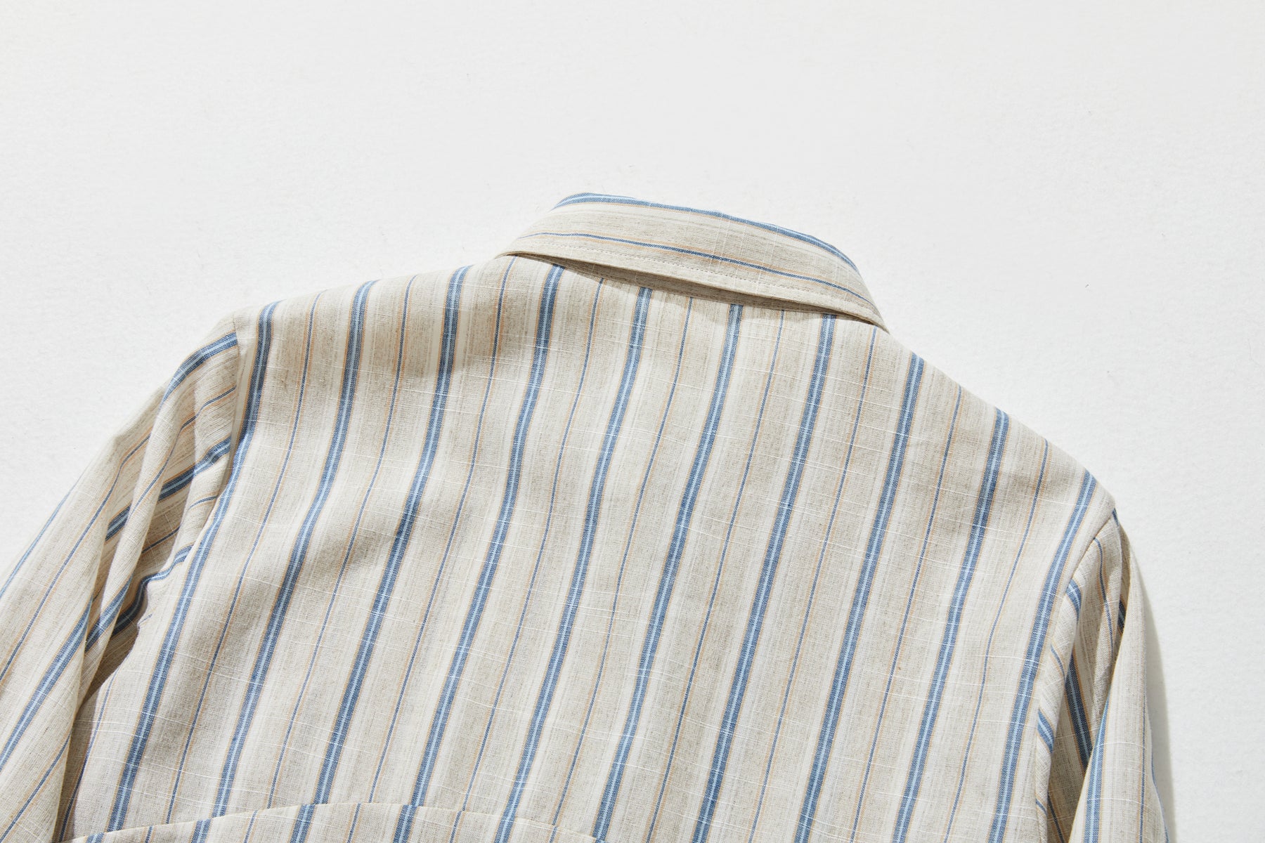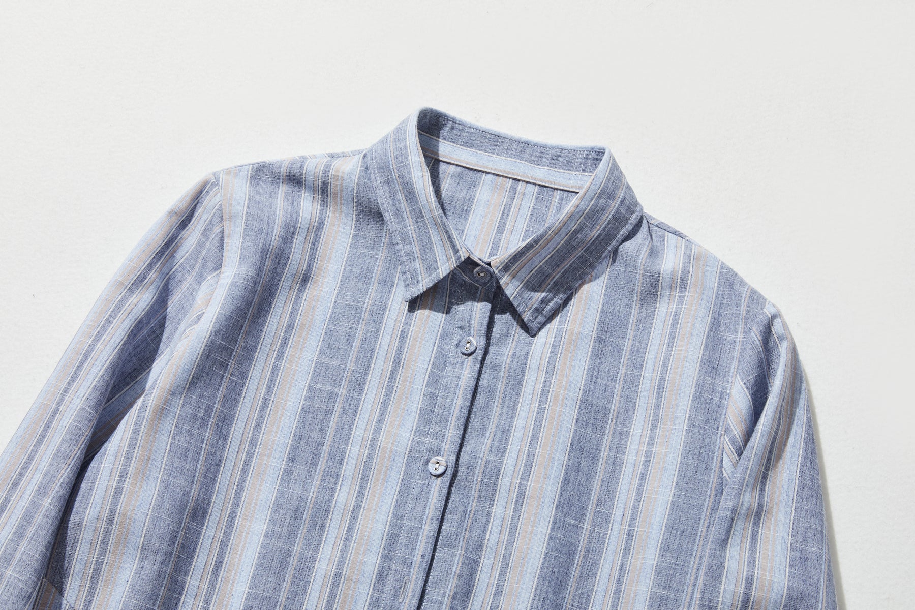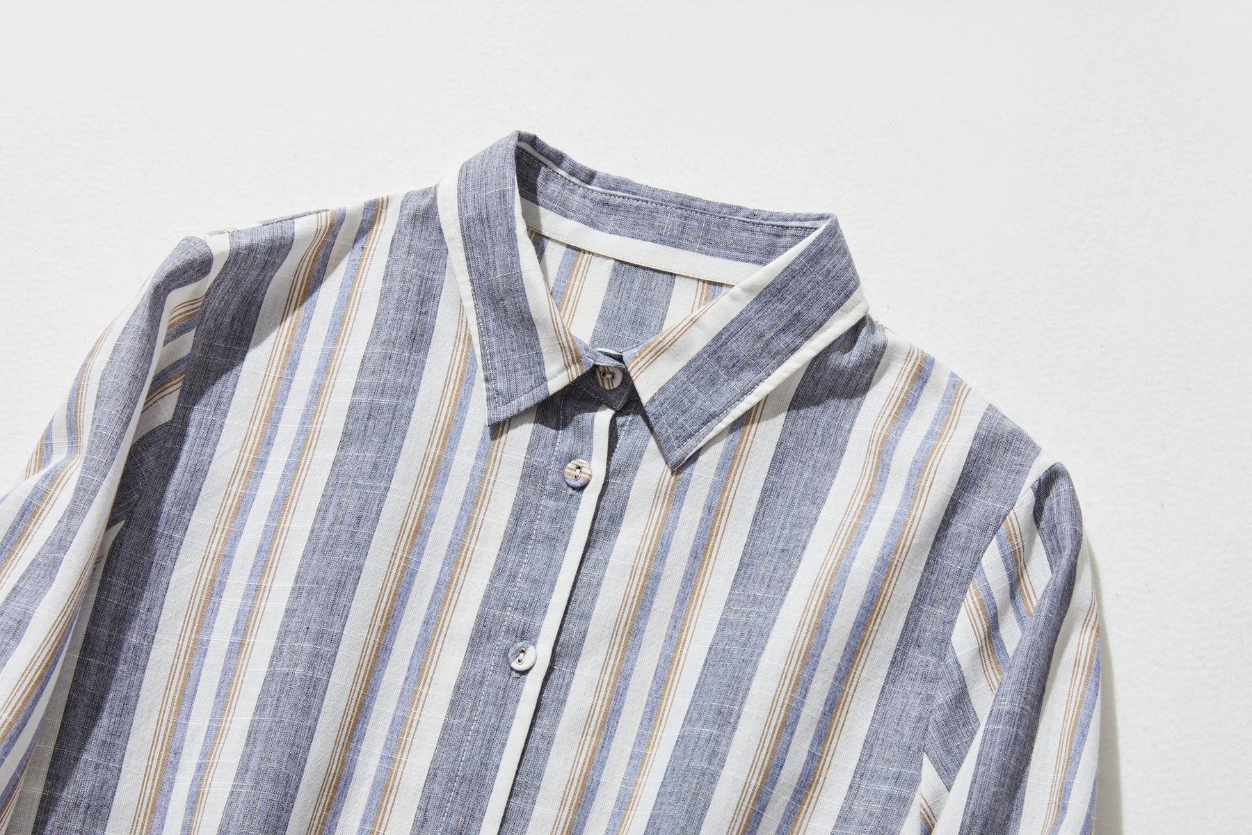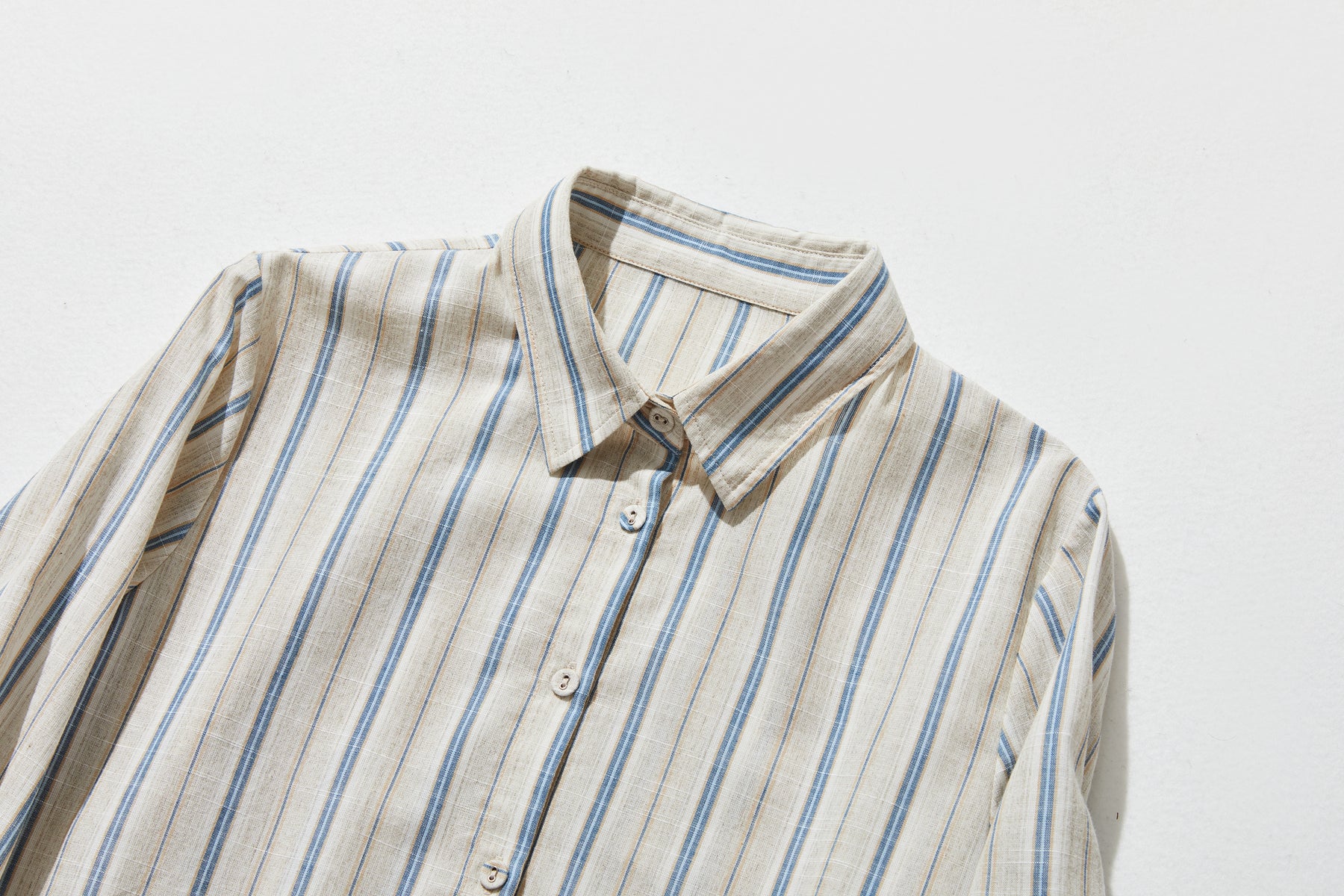 ナチュラル風合いのストライプワンピース コットン100%  241008