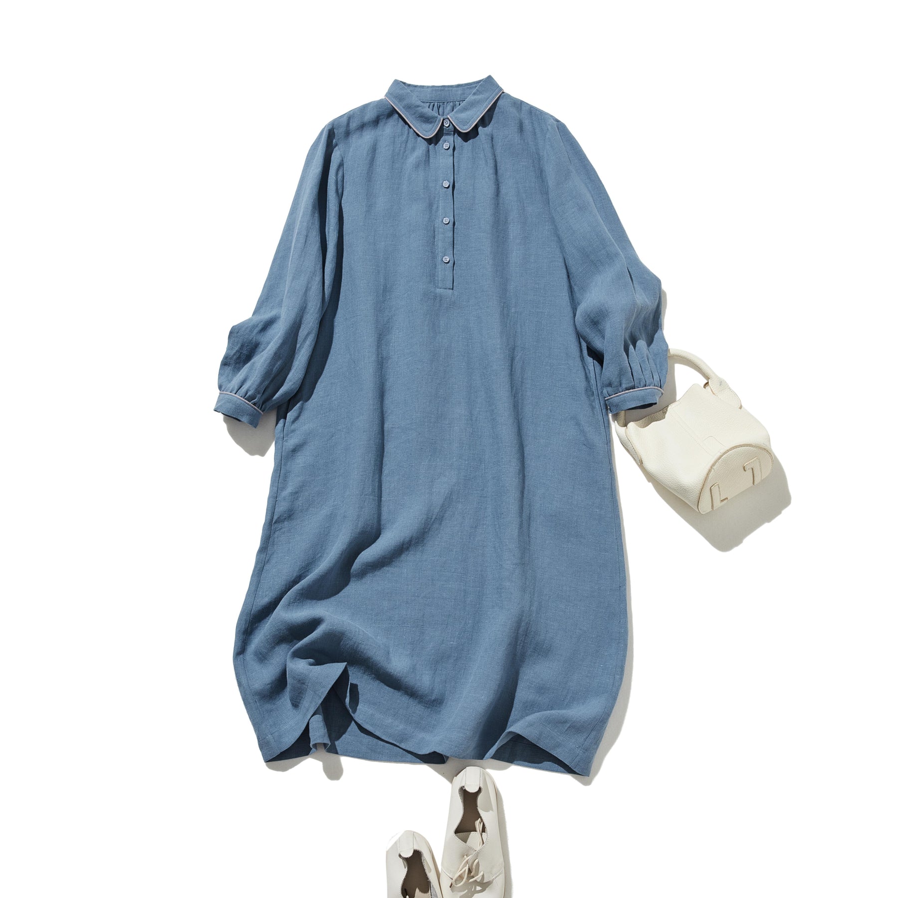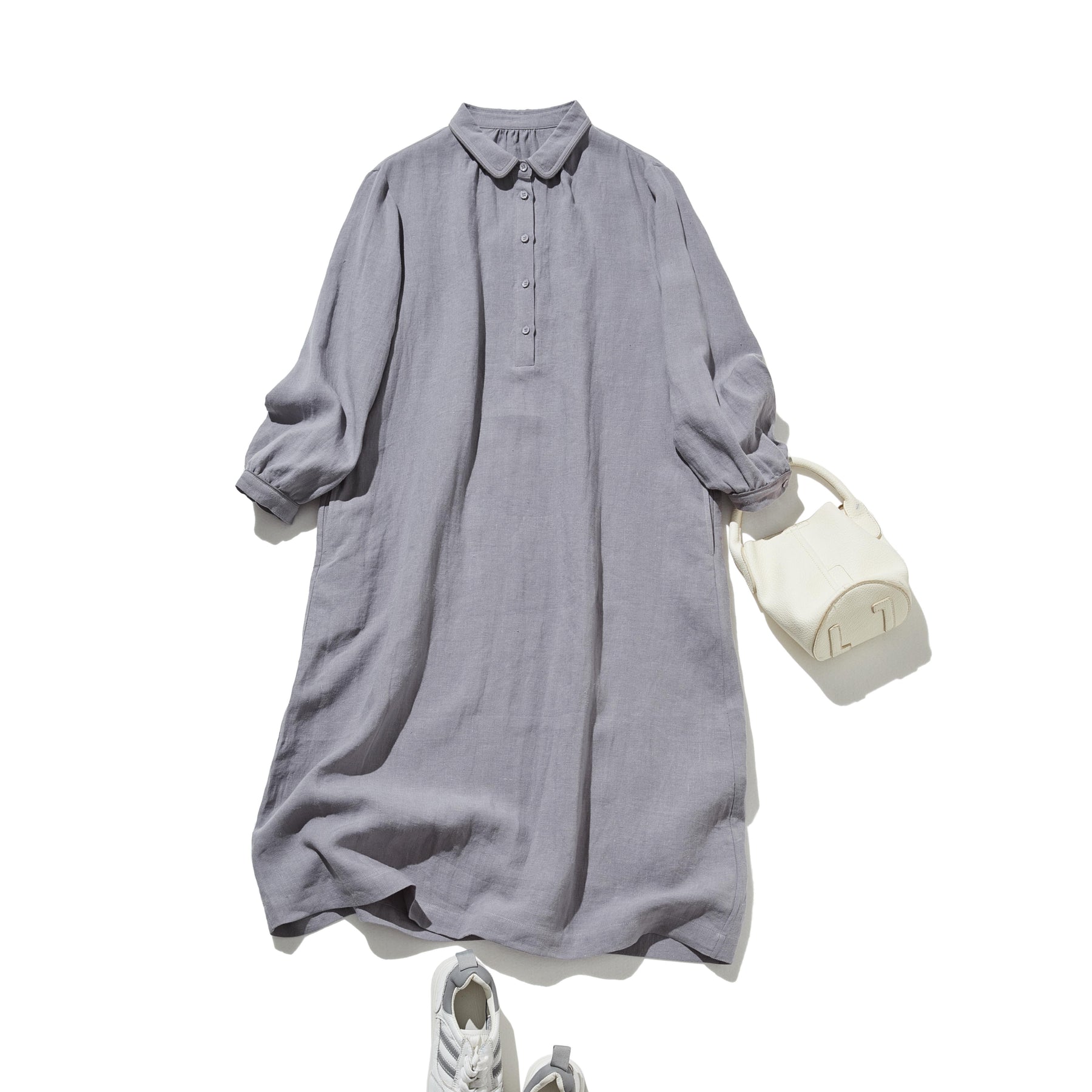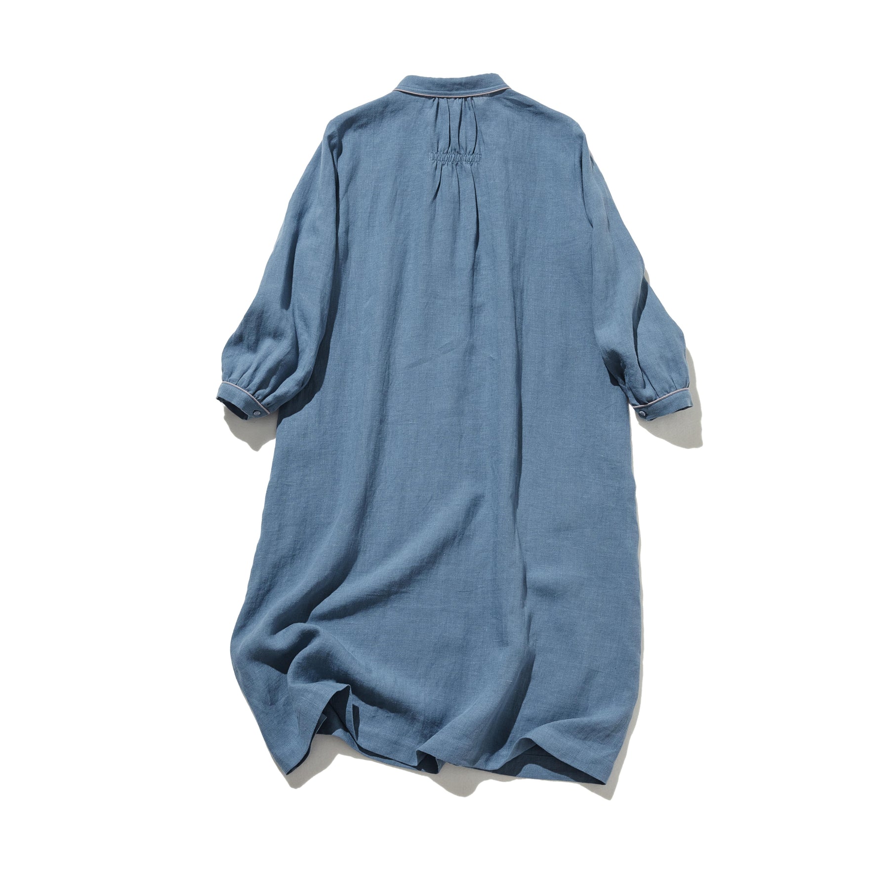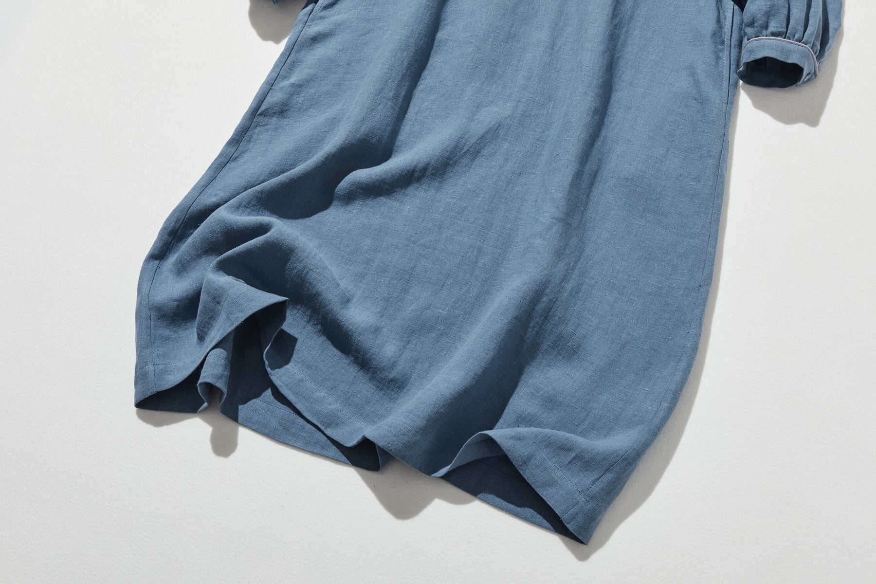 上品なアクセントが映える、フレンチリネンのAラインワンピース リネンワンピース 250916