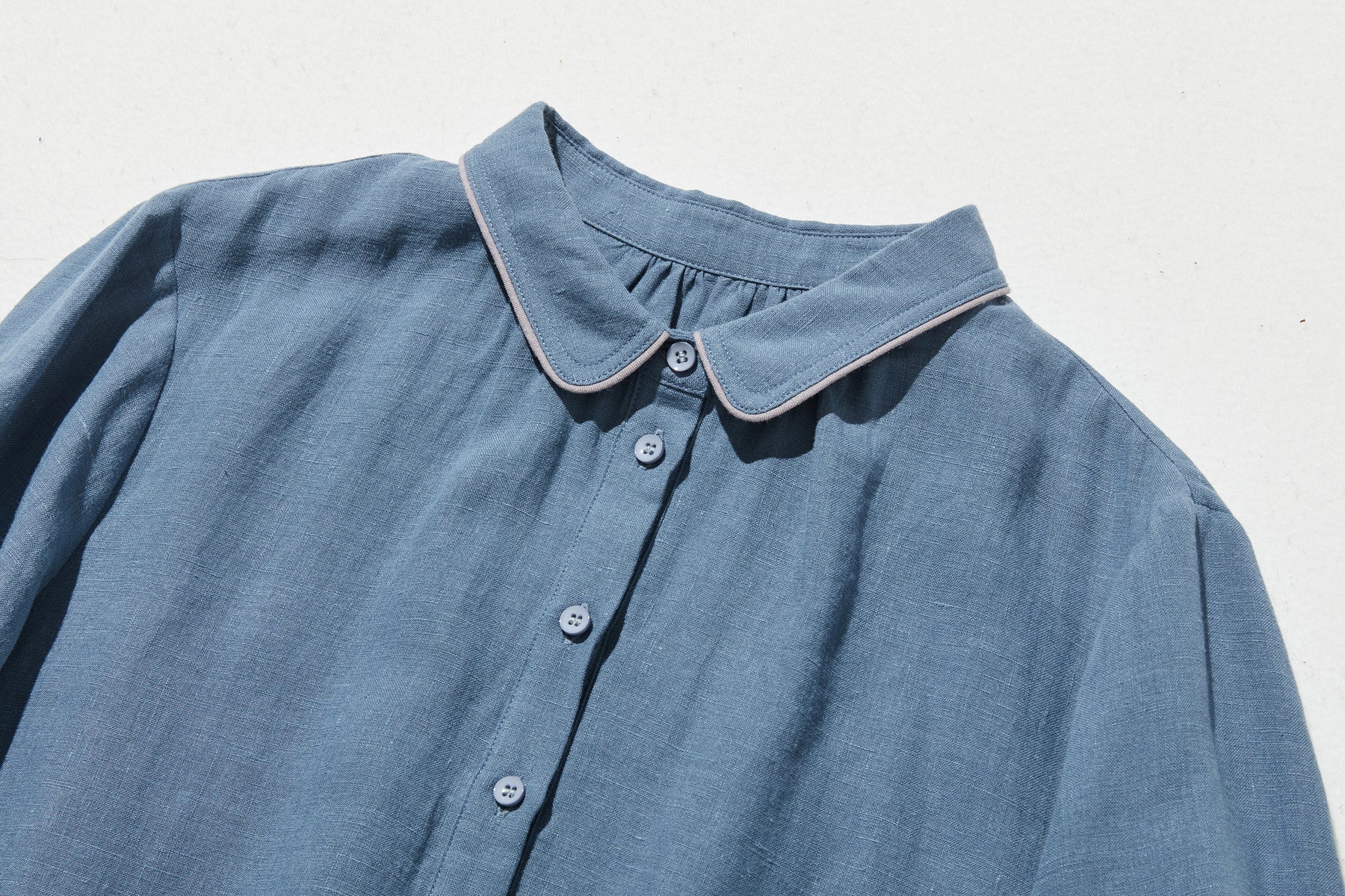 ★角を丸くした繊細な襟元と、品の良い小さなボタンが、全体の上品な雰囲気を引き立てます。