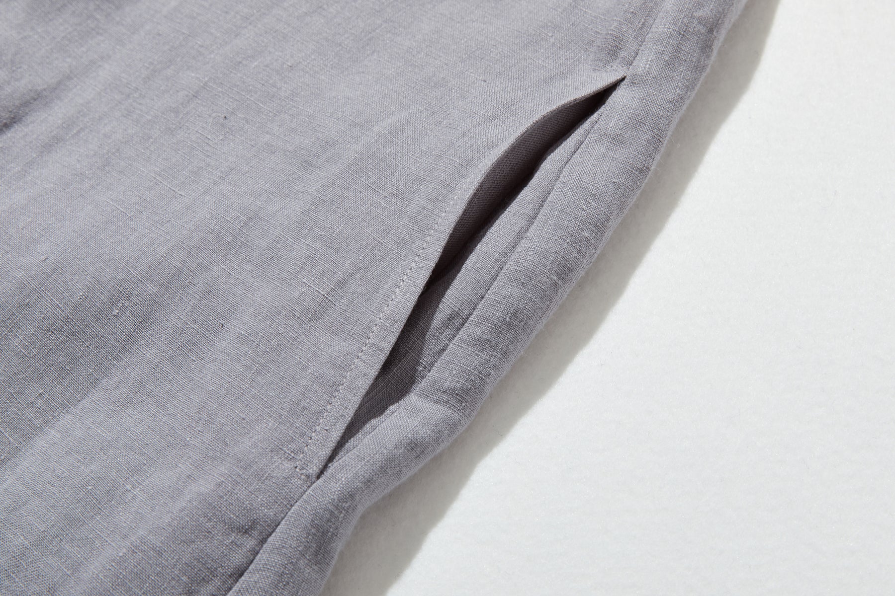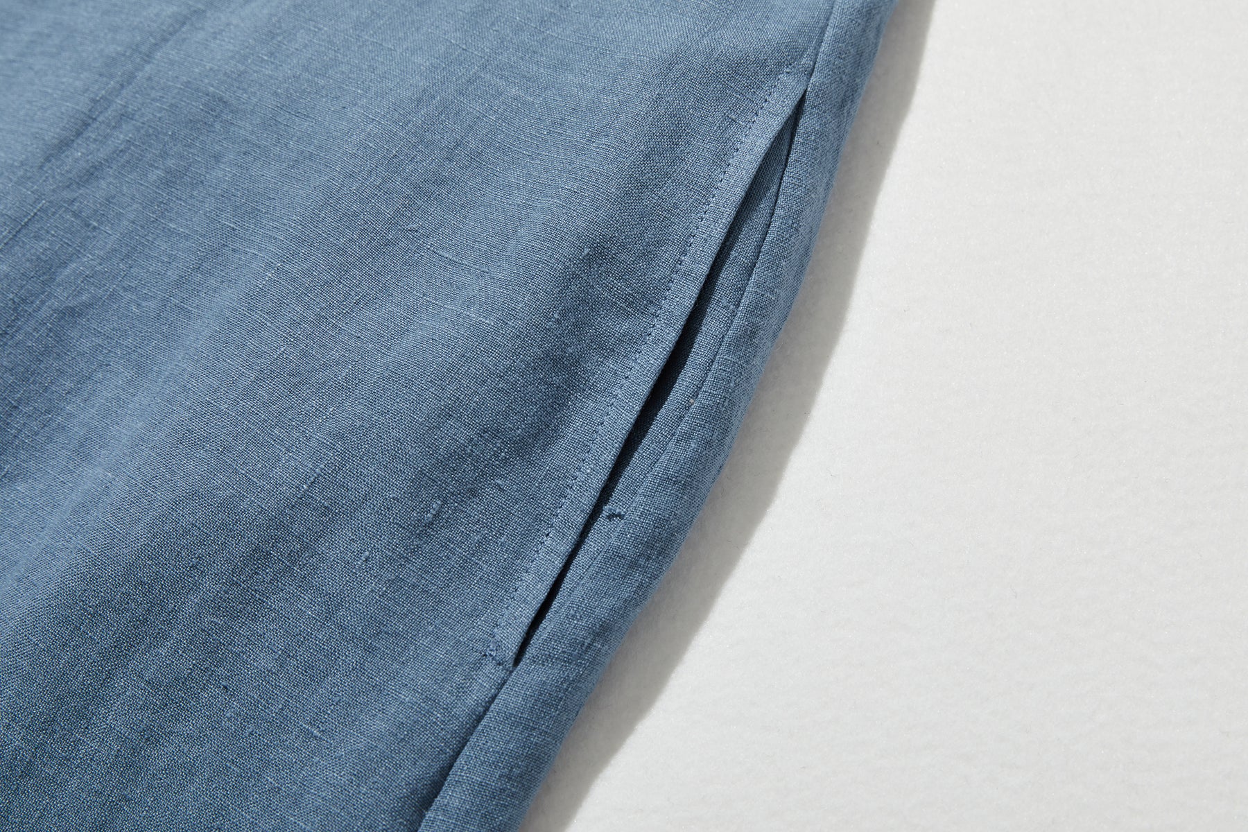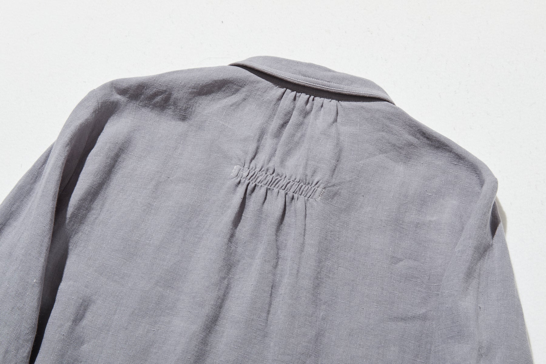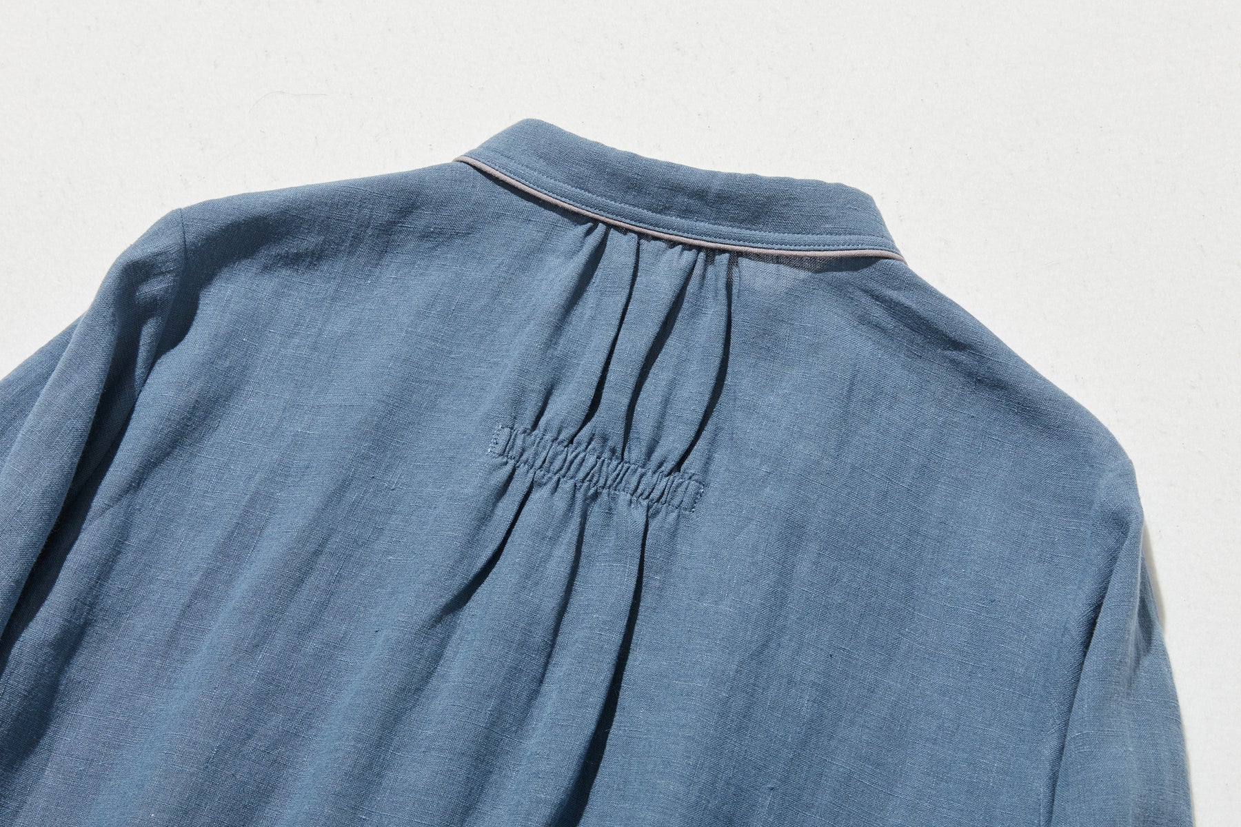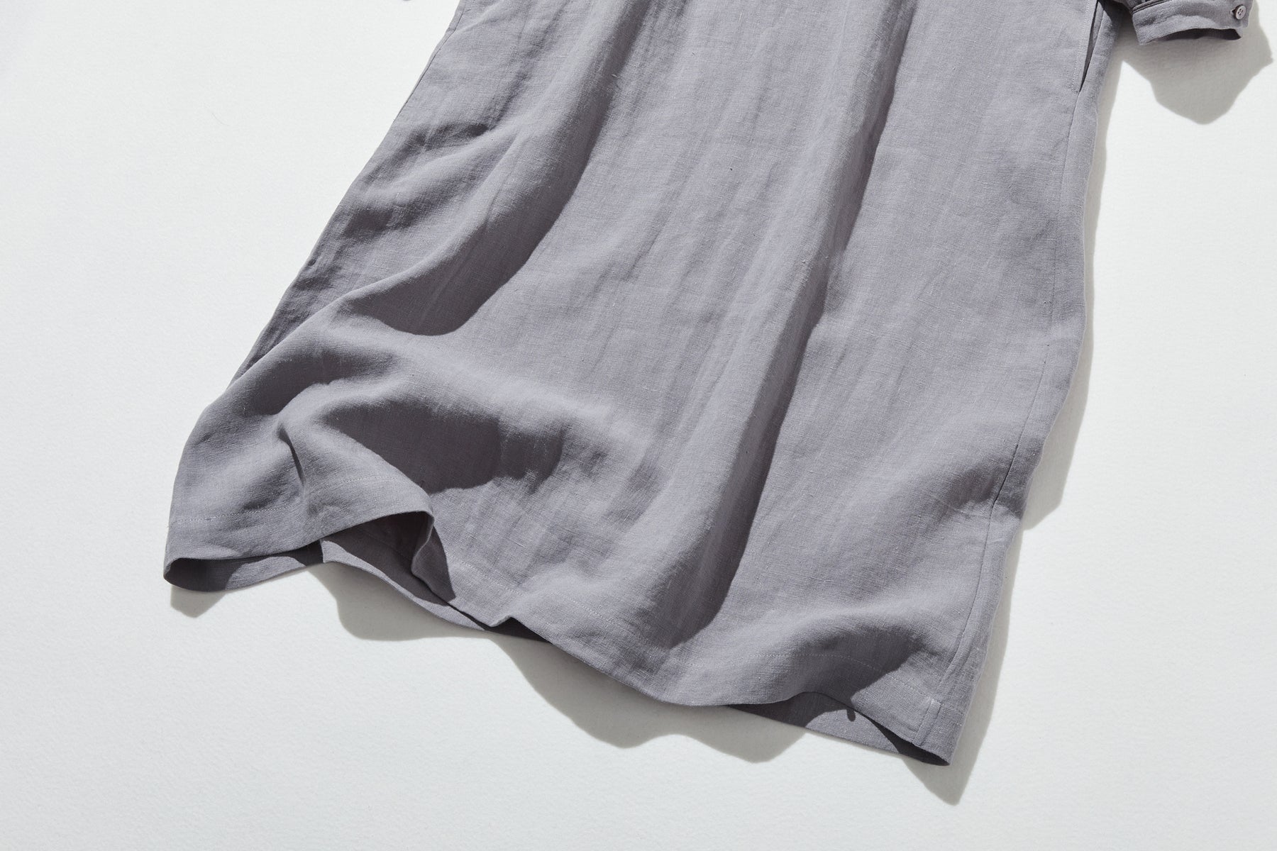 素材には、風合いと耐久性に優れた「フレンチリネン」を採用。通気性が良く、春夏はサラリと快適に、秋冬はインナーと重ねてもまとわりにくい、通年を通して活躍する心地よさが魅力です。