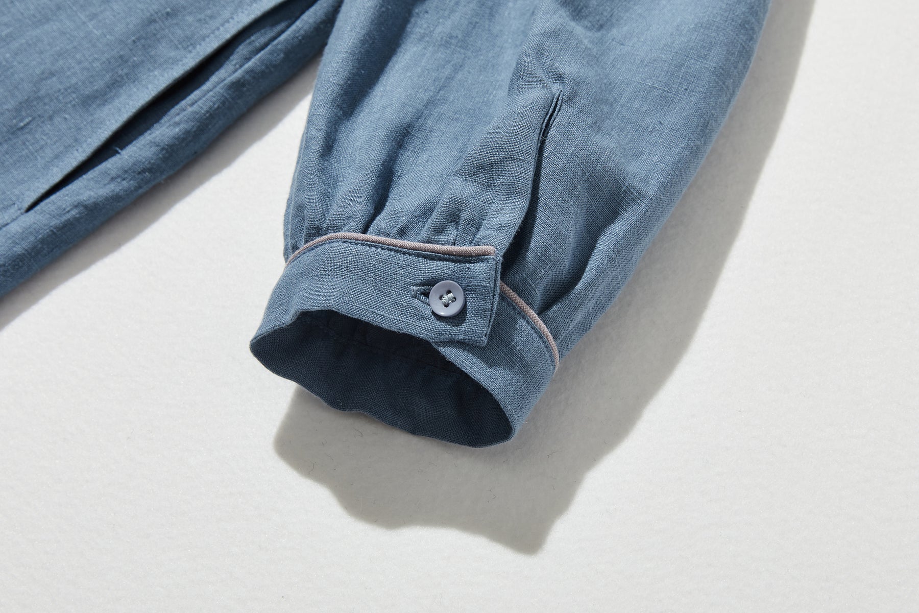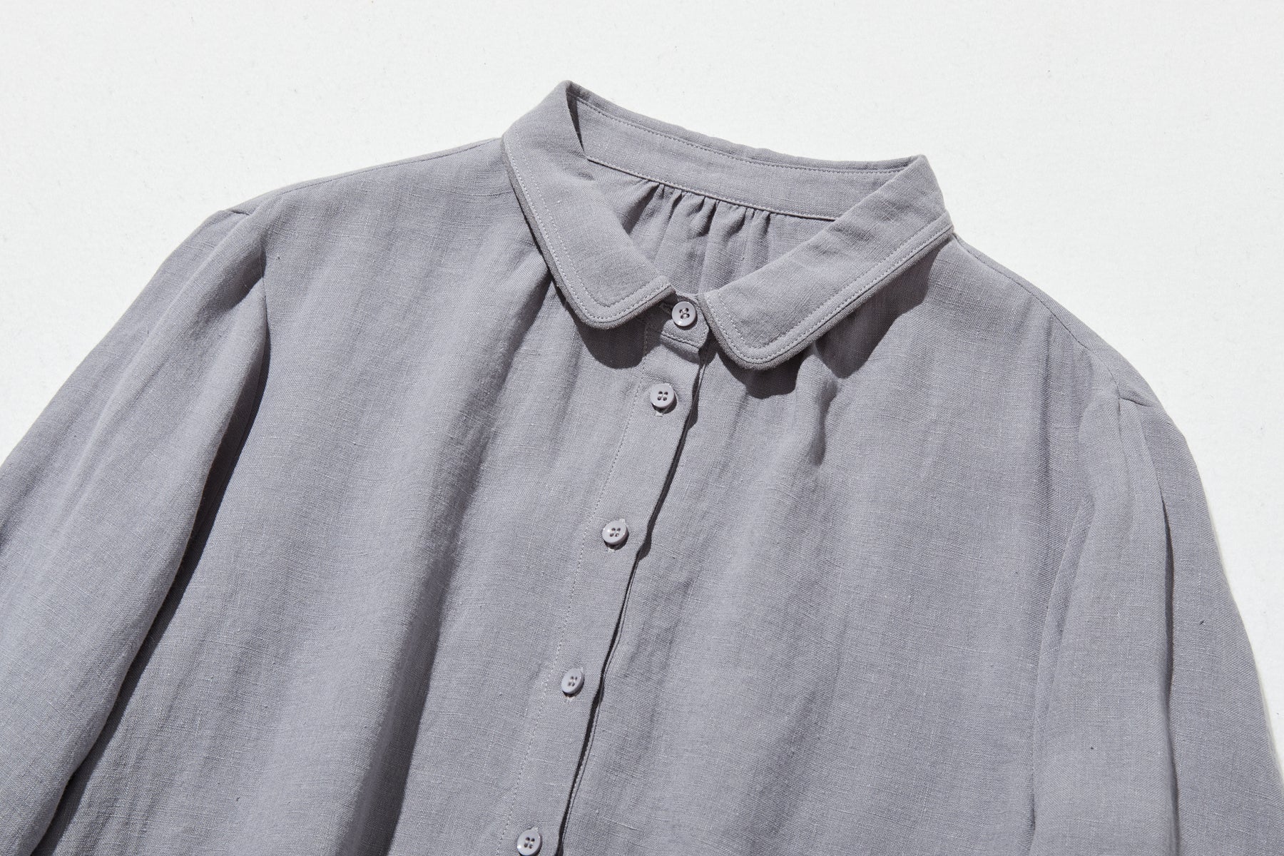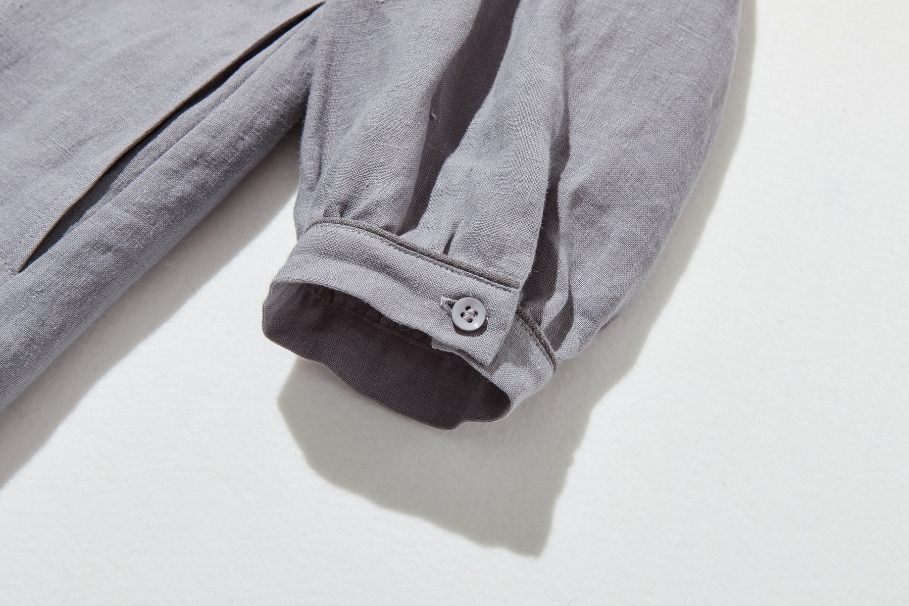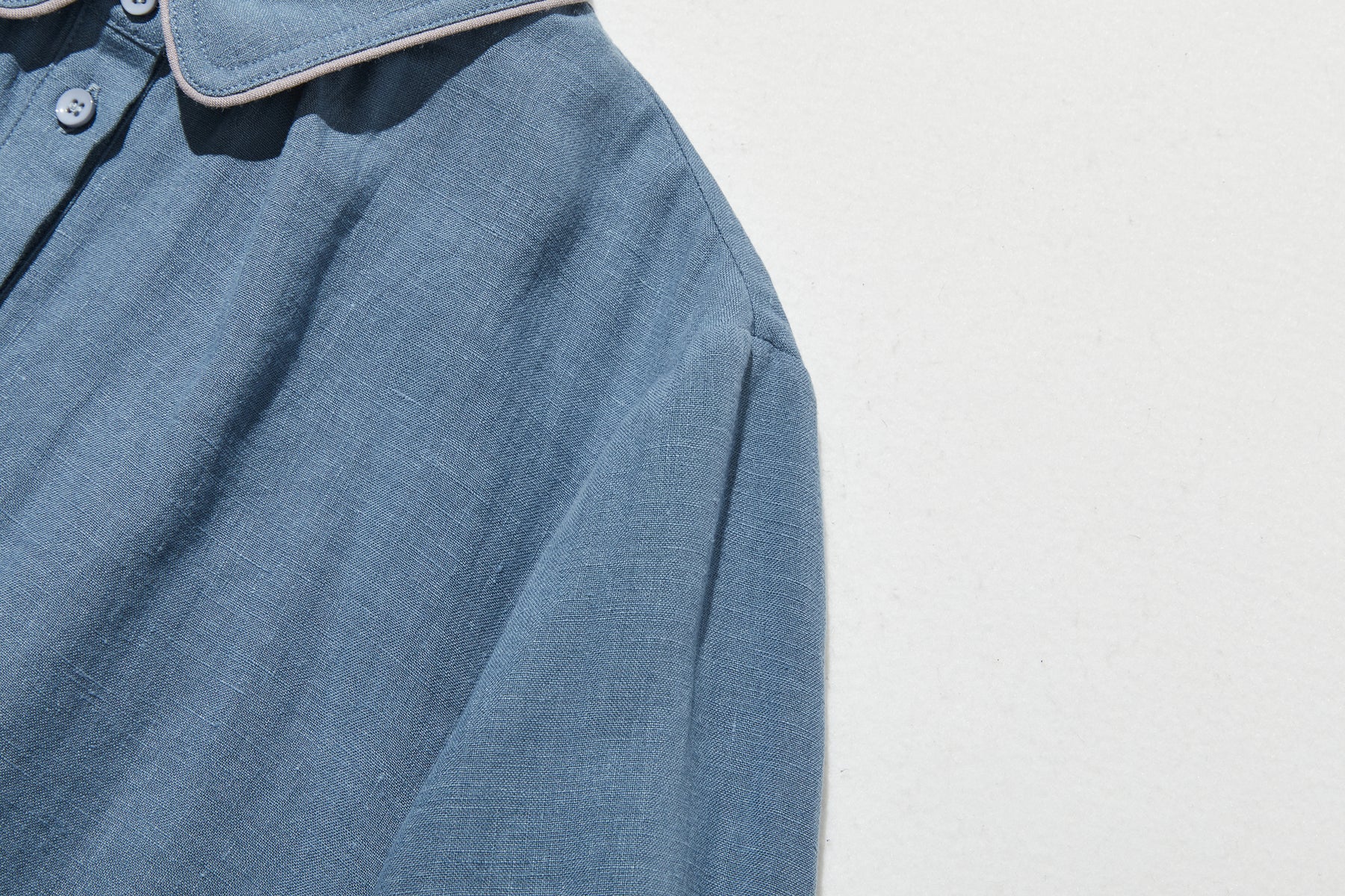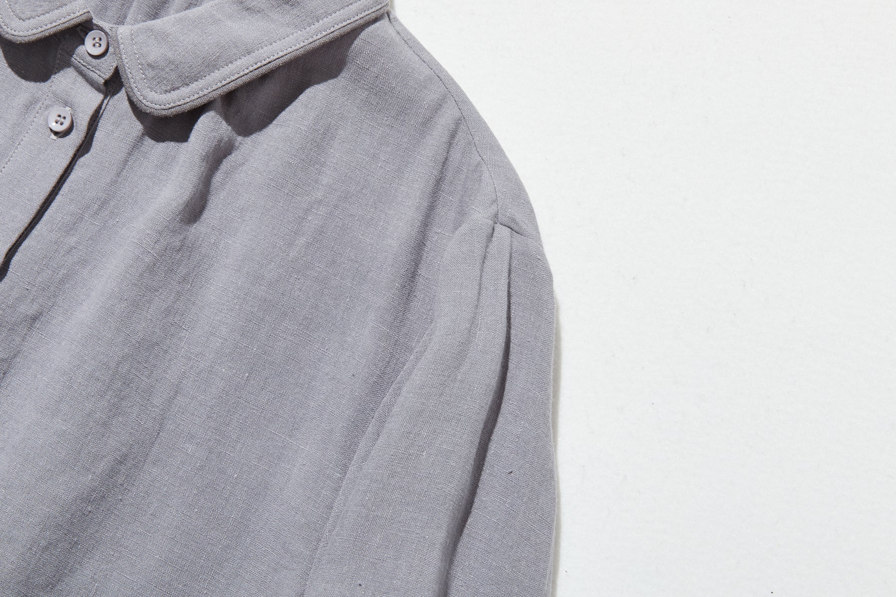 素材には、風合いと耐久性に優れた「フレンチリネン」を採用。通気性が良く、春夏はサラリと快適に、秋冬はインナーと重ねてもまとわりにくい、通年を通して活躍する心地よさが魅力です。