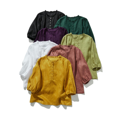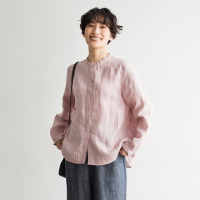 さり気ない大人の可愛さを感じられるリネンブラウス フリルネック リネン100% 240323