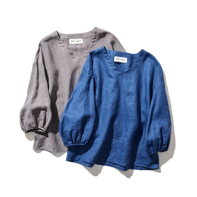 美しいシルエットのデザインプルオーバー トップス リネン100% 9分袖 230403