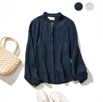 さらりと着心地良い 夏の定番シャツブラウス フリル袖 麻100% 220513