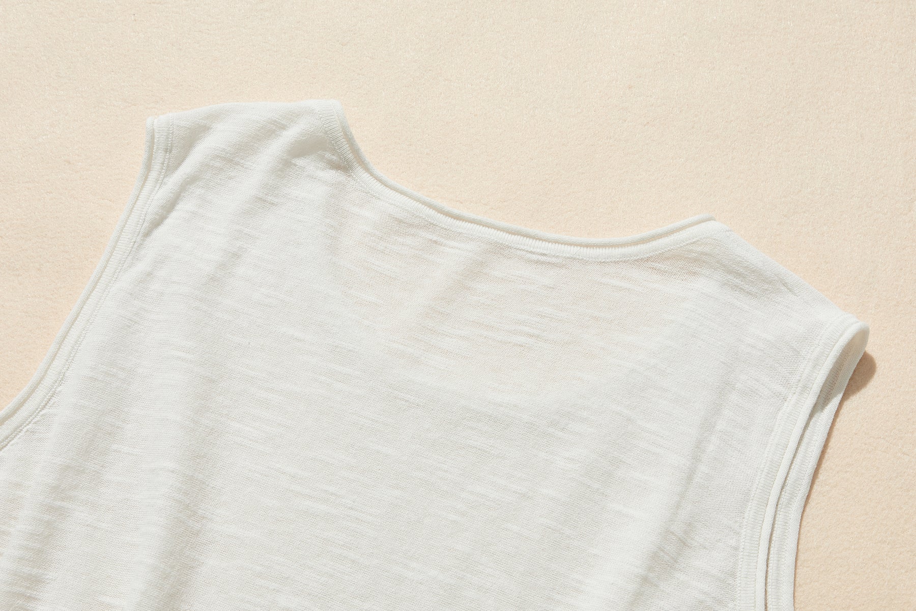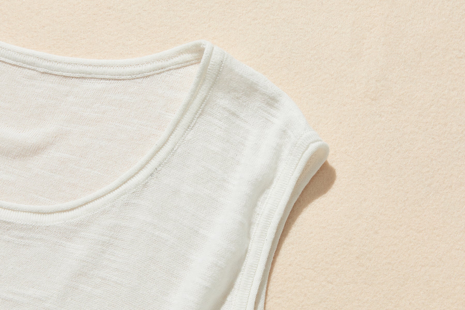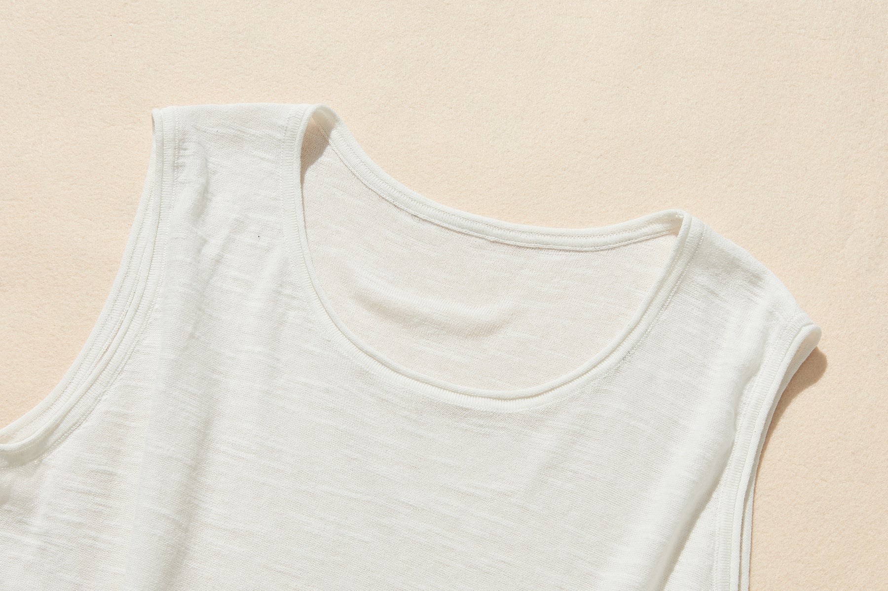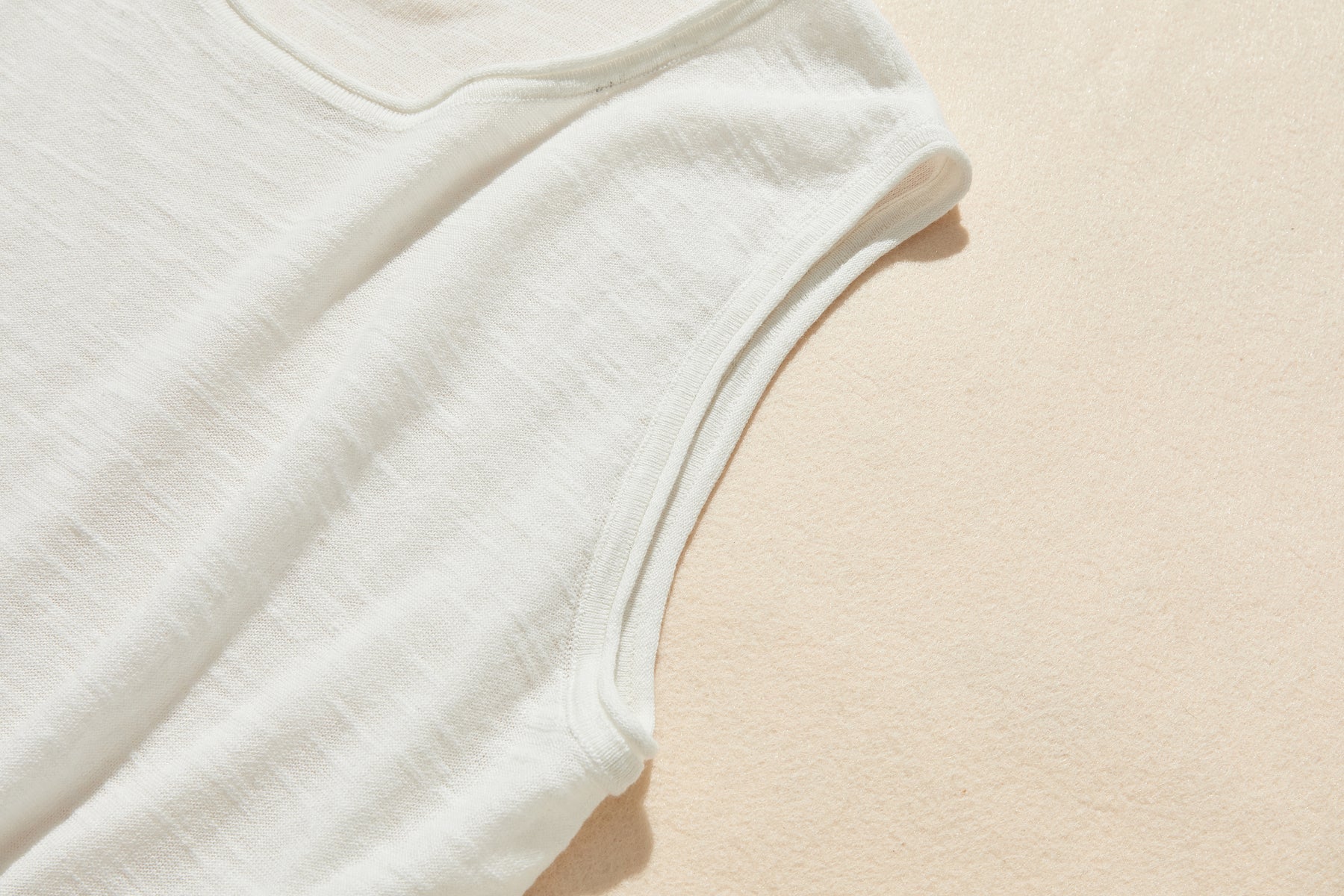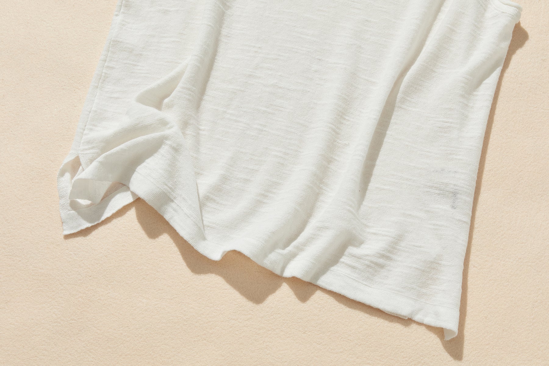 毎日、心地よく着られる実力派タンクトップ コットンリネントップス 240702★素肌に触れて心地良い、ソフトで伸びやかなコットンリネン 。★厚すぎず薄すぎず、インナーユースでも着ぶくれしにくい厚み★ゆったりと着られる、締めつけの少ないシルエット★やや裾広がりでウエストまわりのもたつきを回避★さらりとした着心地で、インナーやアウターと合わせることでレイヤードスタイルも楽しめます。素材:コットン45% リネン55%サイズ:身丈61cmバスト98cm裾104cmアームホール46cm首回り62cm透け感:若干あり裏地:なしポケット:なし伸縮性:あり光沢感:なしシーズン:春、夏、秋