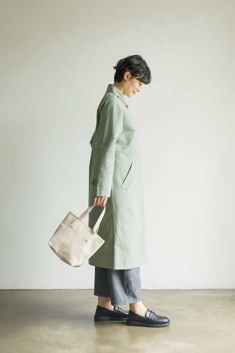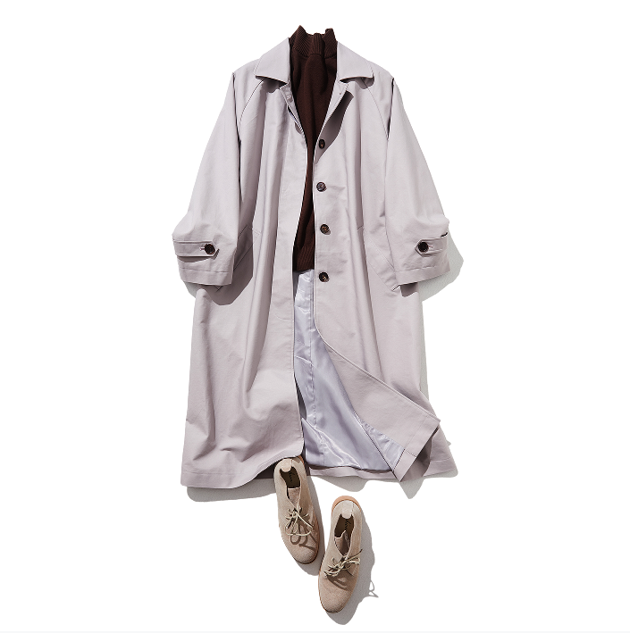 しっかりと丈夫なコットンのツイル素材で仕立てたスプリングコートです。ゆとりのあるボックスシルエットなのでニット等も着込むことができ、まだまだ寒さの残る春先から活躍してくれます。ひざがすっぽり隠れる丈ですが、ゆっとりのあるデザインであり歩きやすいのが嬉しいポイントです。素材:コットン100%裏地ポリエステル100%サイズ:着丈109cmバスト106cm桁丈78cm透け感:なし裏地:ありポケット:あり伸縮性:なし光沢感:ありシーズン:春、秋